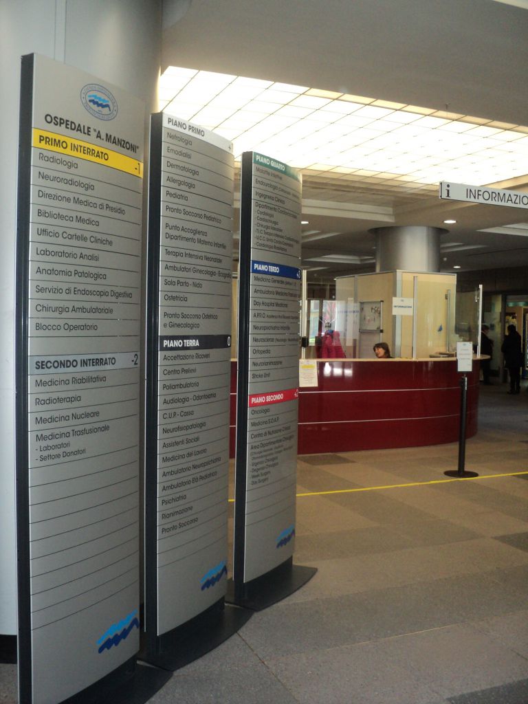 LECCO – Recentemente messo a punto e realizzato, all’Ospedale Manzoni di Lecco, il nuovo sistema di orientamento basato su una serie di installazioni cartellonistiche allestite sia all’interno che all’esterno del nosocomio.