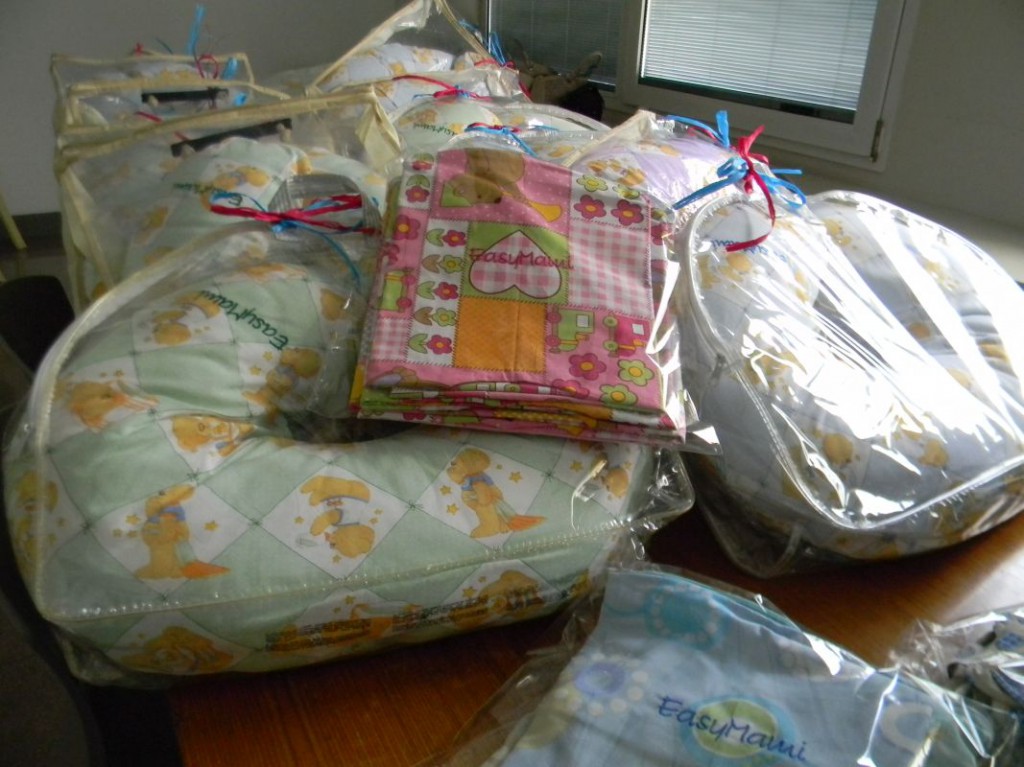 Le mamme di Easymami prima hanno recuperato dei cuscinotti per l’allattamento sia tramite donazioni che attraverso l’acquisto, poi hanno scelto delle stoffe colorate e con un gruppo di sarte volontarie hanno creato i rivestimenti per i cuscinotti ricamandoci sopra il logo dell’associazione.