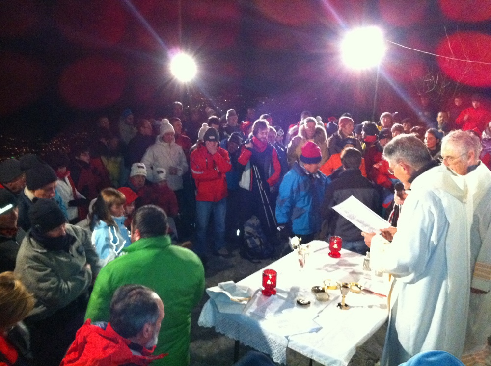 E mentre alla sede degli Alpini Gruppo Medale di Rancio e Laorca veniva servita la trippa accompagnata dalle note della banda, gli escursionisti torce elettriche alla mano o “appiccicate” sulla fronte si sono inerpicati fino alla cappelletta bianca del San Martino dove alle 22 monsignor Franco Cecchin ha celebrato la messa, al termine della quale ha voluto augurare a tutti i lecchesi, presenti e non, un buon Natale.