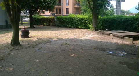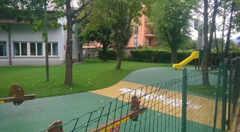 Un volto completamente nuovo per il giardino: il terriccio e le vecchie panche sono state sostituite da un nuovo tappeto ed una nuova pavimentazione, e sono stati installati alcuni giochi per i bambini.