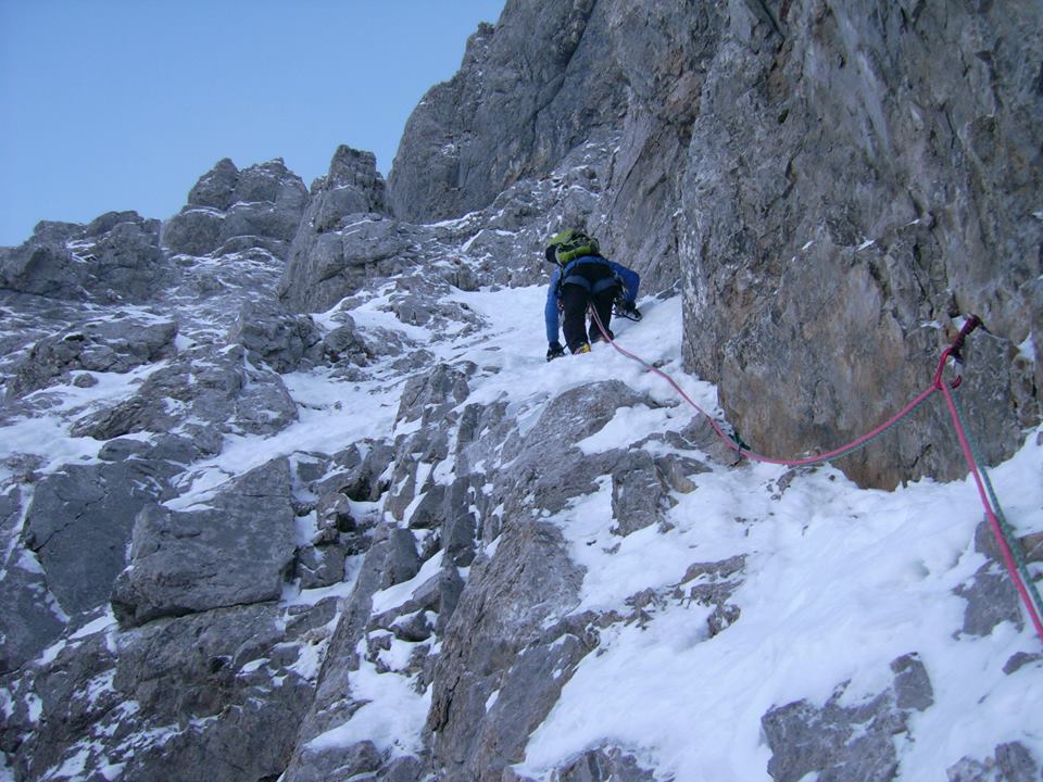 Domenica 3 dicembre, assieme al compagno di cordata Valentino Cividini, il sogno è diventato realtà: “E’ una via che si forma solamente in questo periodo dell’anno, ci vogliono condizioni meteo un po’ anomale – ha detto -. Quindici giorni fa abbiamo notato che si era formata ma non avevamo materiale sufficiente”. I due alpinisti sono stati costretti a rimandare con il rischio che le condizioni meteo mutassero e invece: “Il freddo ha tenuto e la via è rimasta in buone condizioni. La prima parte è tutta su ghiaccio. Verso l’uscita, però, il ghiaccio mancava perciò ci siamo dovuti spostare un po’ a sinistra su roccia, con difficoltà su misto non banali, per poi rientrare sopra. Anche sulla parte alta il vento di questi giorni si è portato via tutta la neve lasciando scoperte alcune placche insidiose, perciò siamo stati obbligati a seguire un’uscita più sicura e veloce sulla parte destra”.