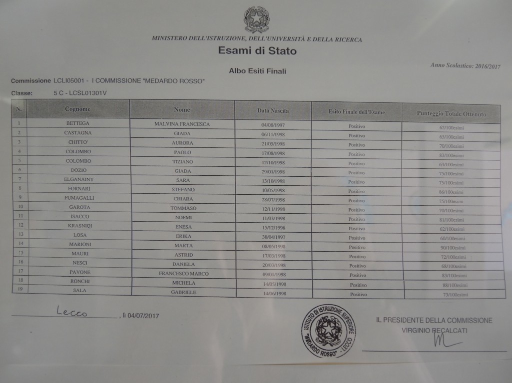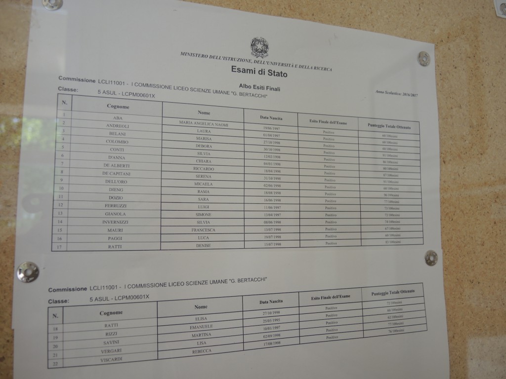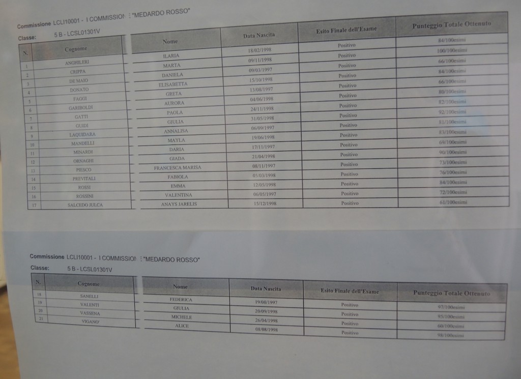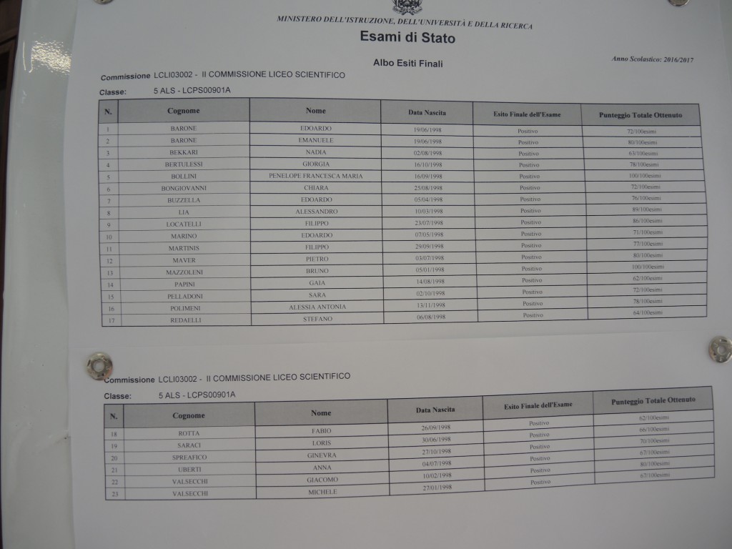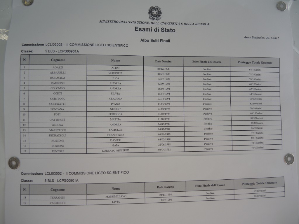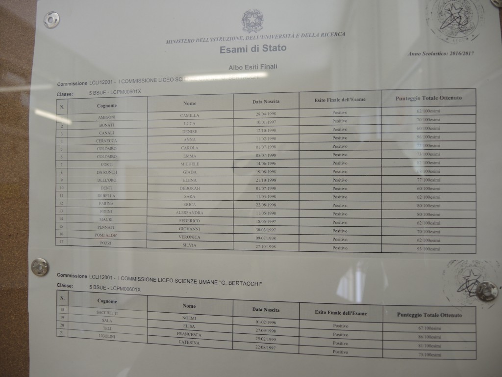 Pubblichiamo di seguito gli esiti della Maturità nei licei lecchesi (all’appello mancano alcune classi del Liceo Artistico Medardo Rosso, del Bovara e del Parini che dovrebbero essere esposti tra oggi e domani, giovedì).