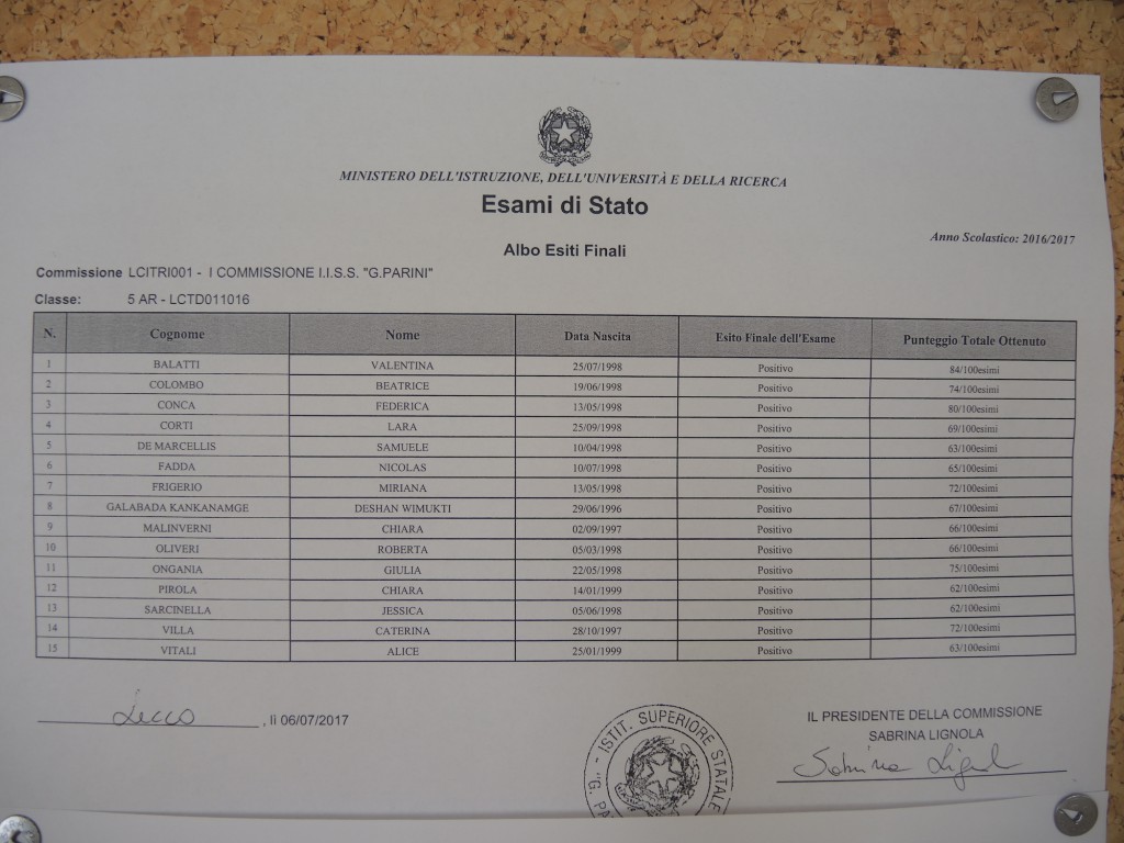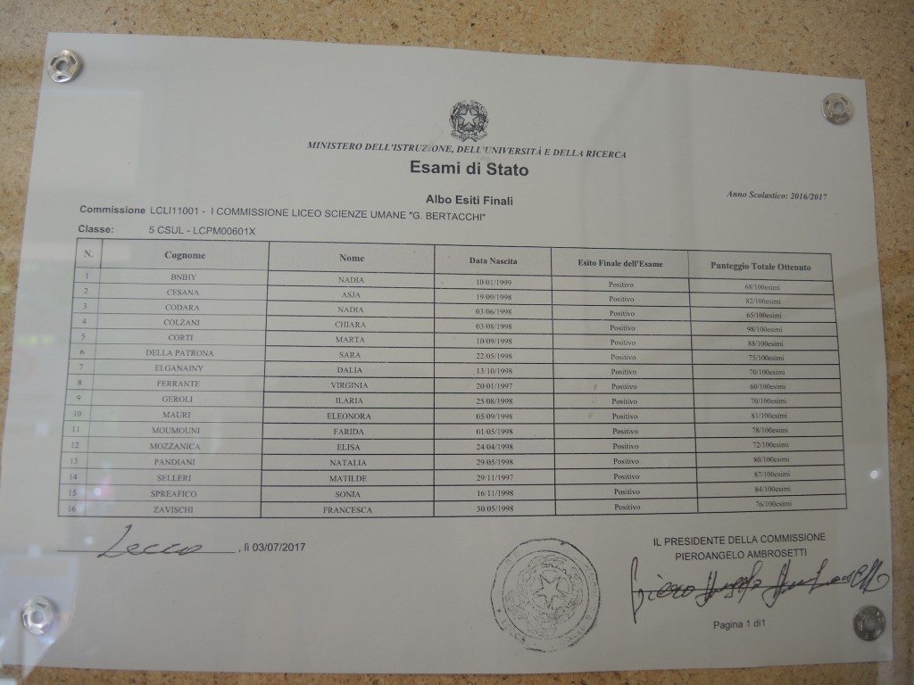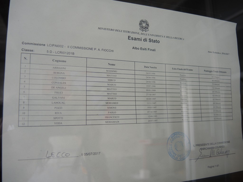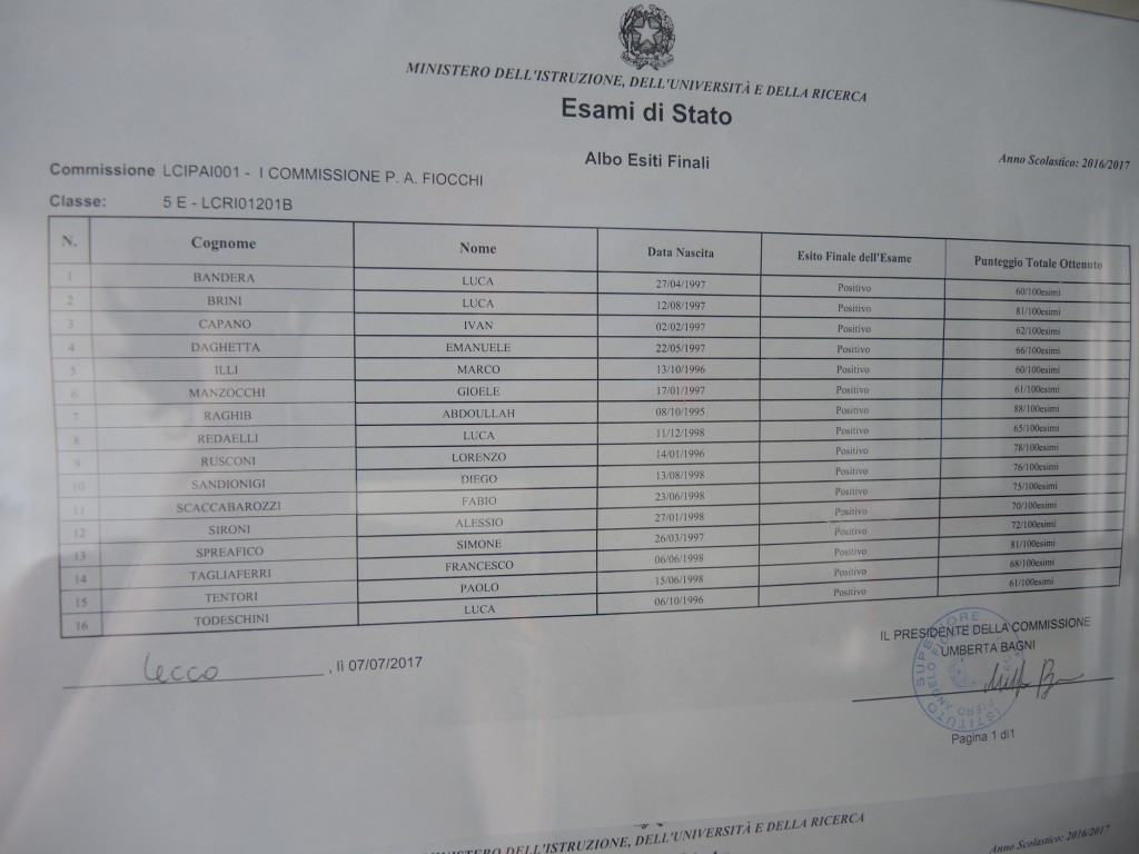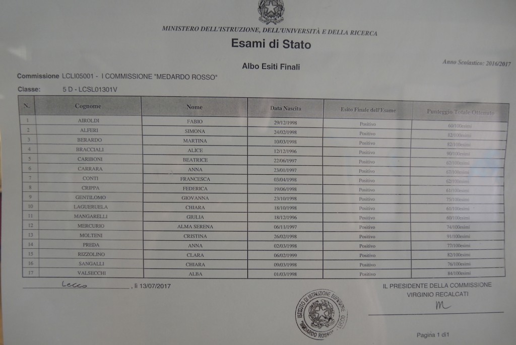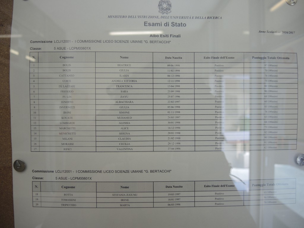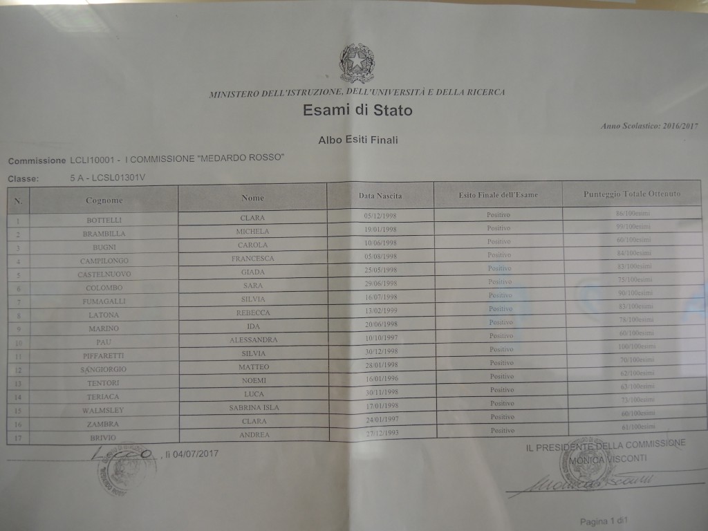 Pubblichiamo di seguito gli esiti della Maturità nei licei lecchesi (all’appello mancano alcune classi del Liceo Artistico Medardo Rosso, del Bovara e del Parini che dovrebbero essere esposti tra oggi e domani, giovedì).