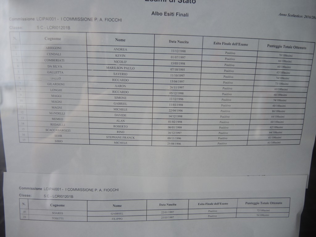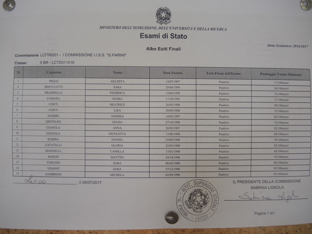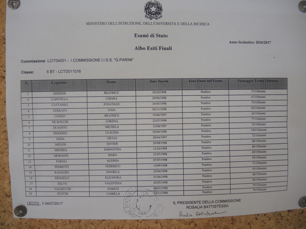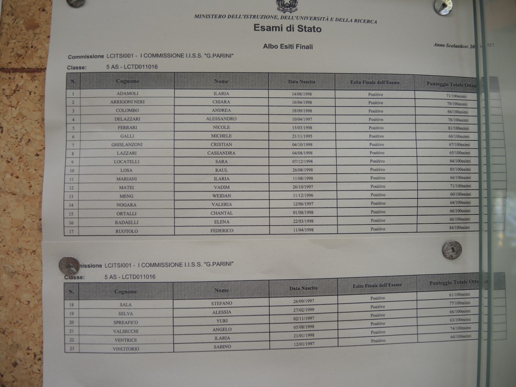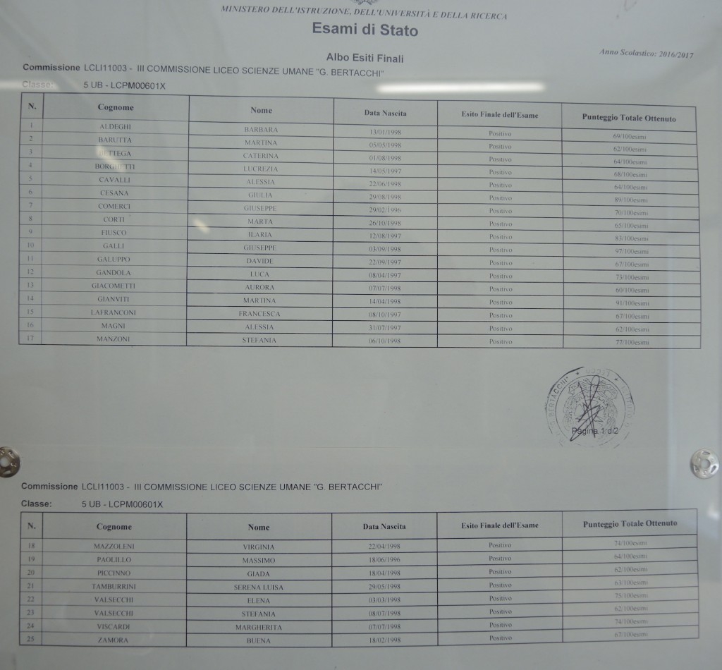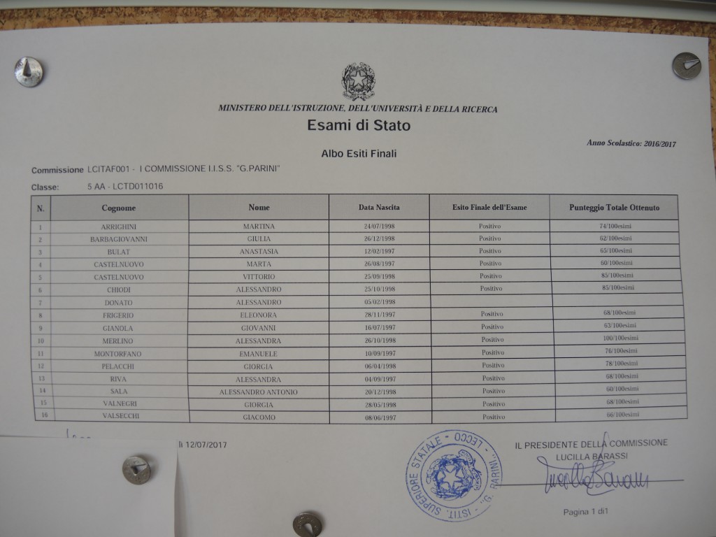 Pubblichiamo di seguito gli esiti della Maturità nei licei lecchesi (all’appello mancano alcune classi del Liceo Artistico Medardo Rosso, del Bovara e del Parini che dovrebbero essere esposti tra oggi e domani, giovedì).