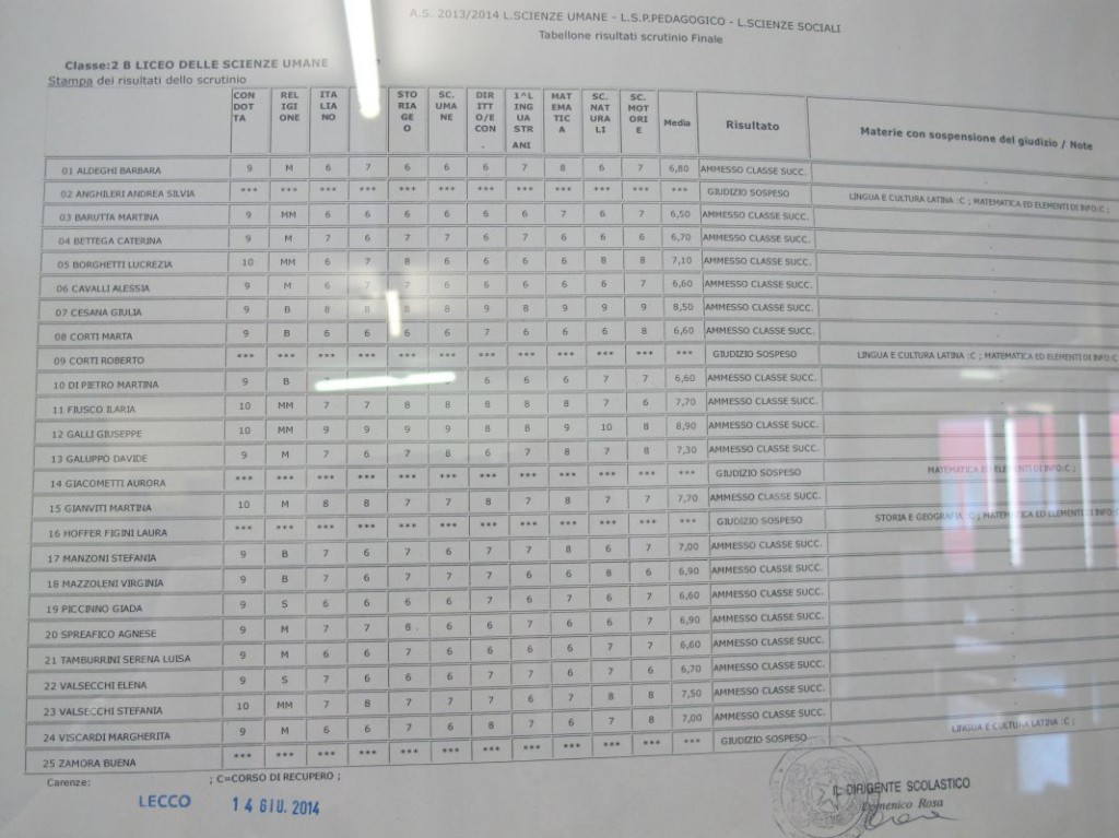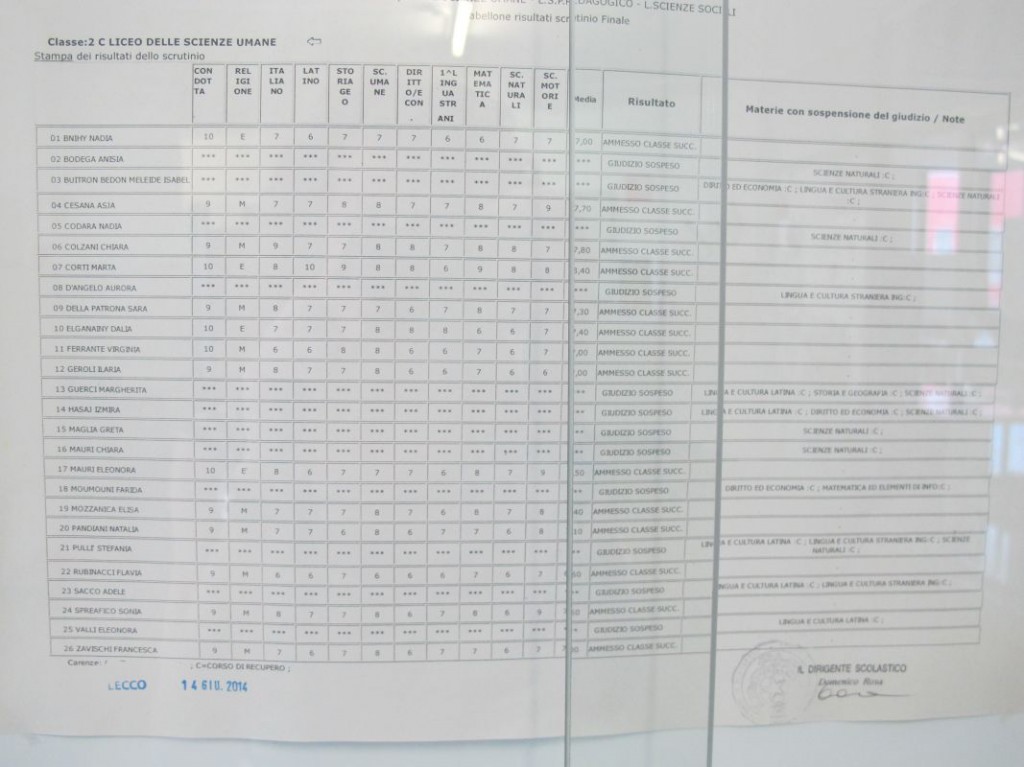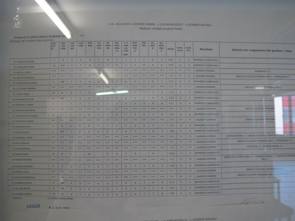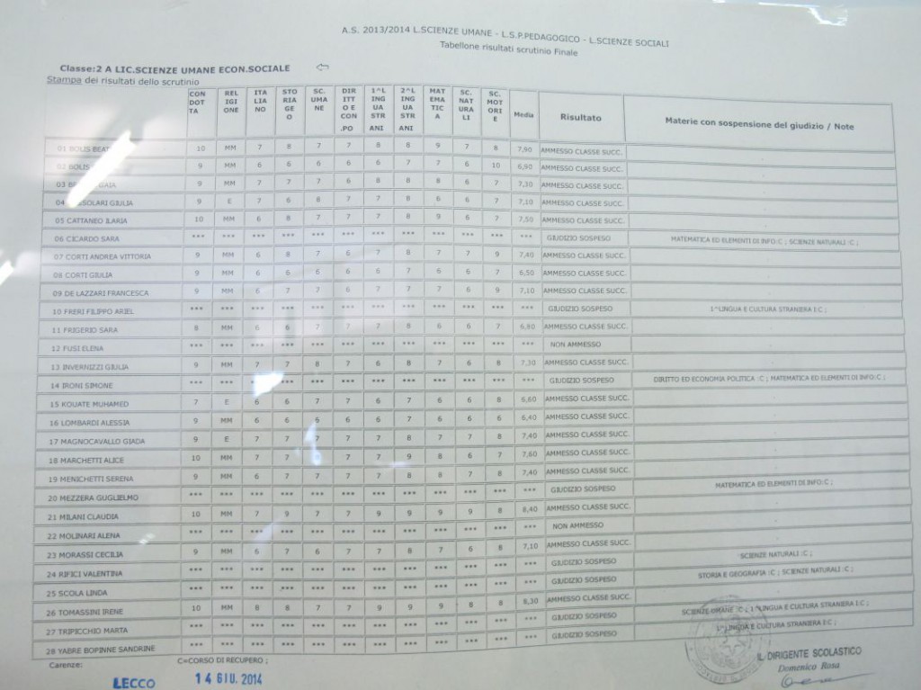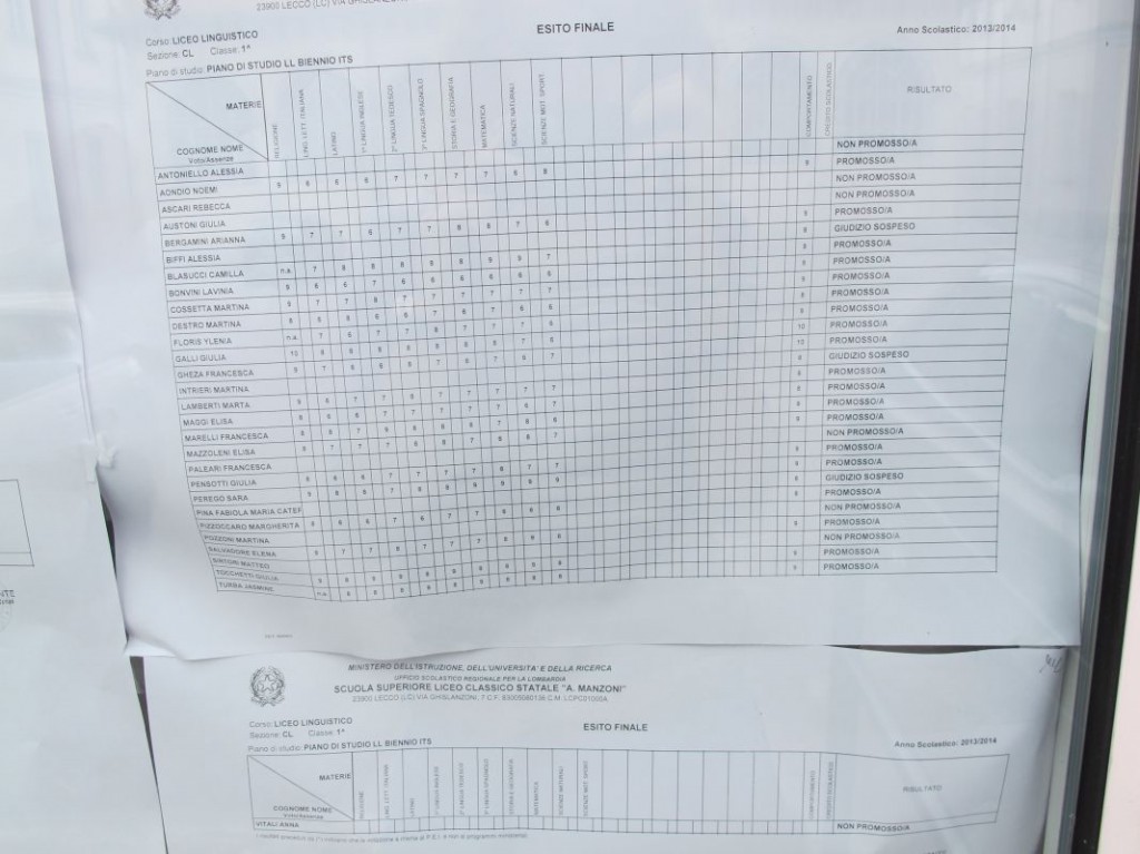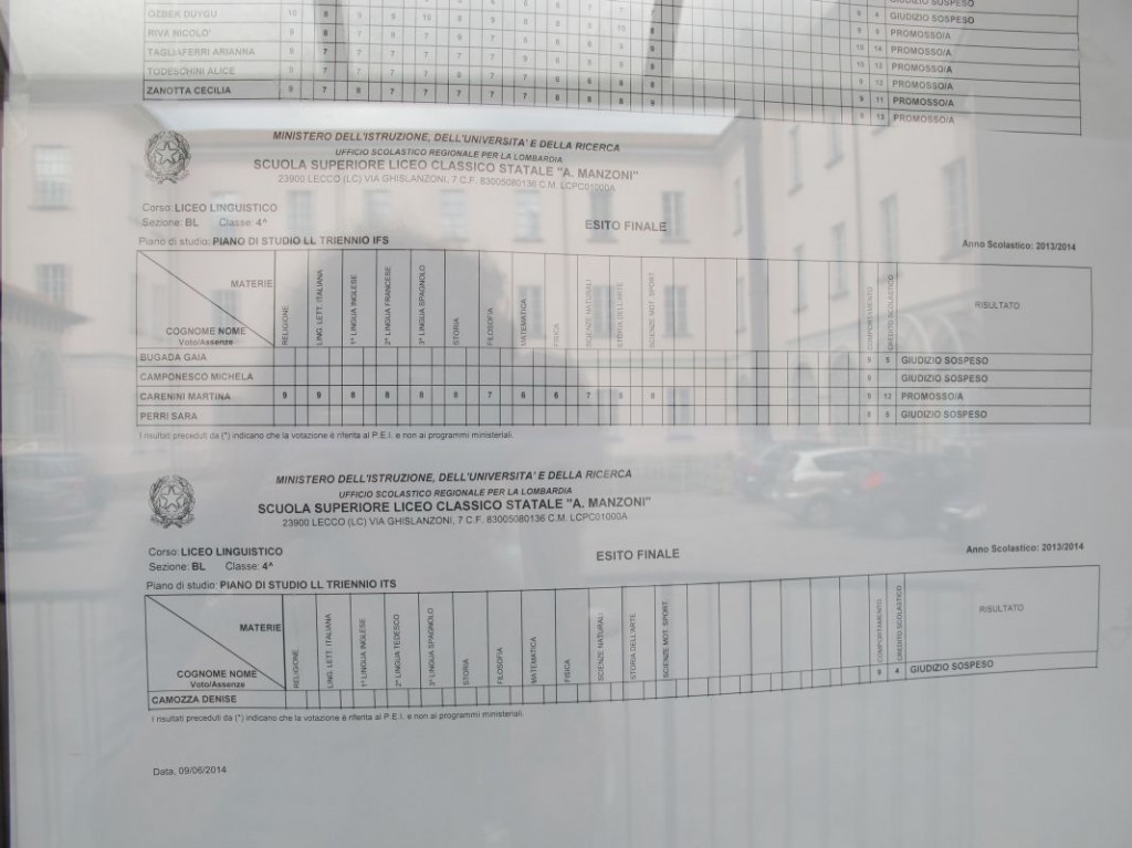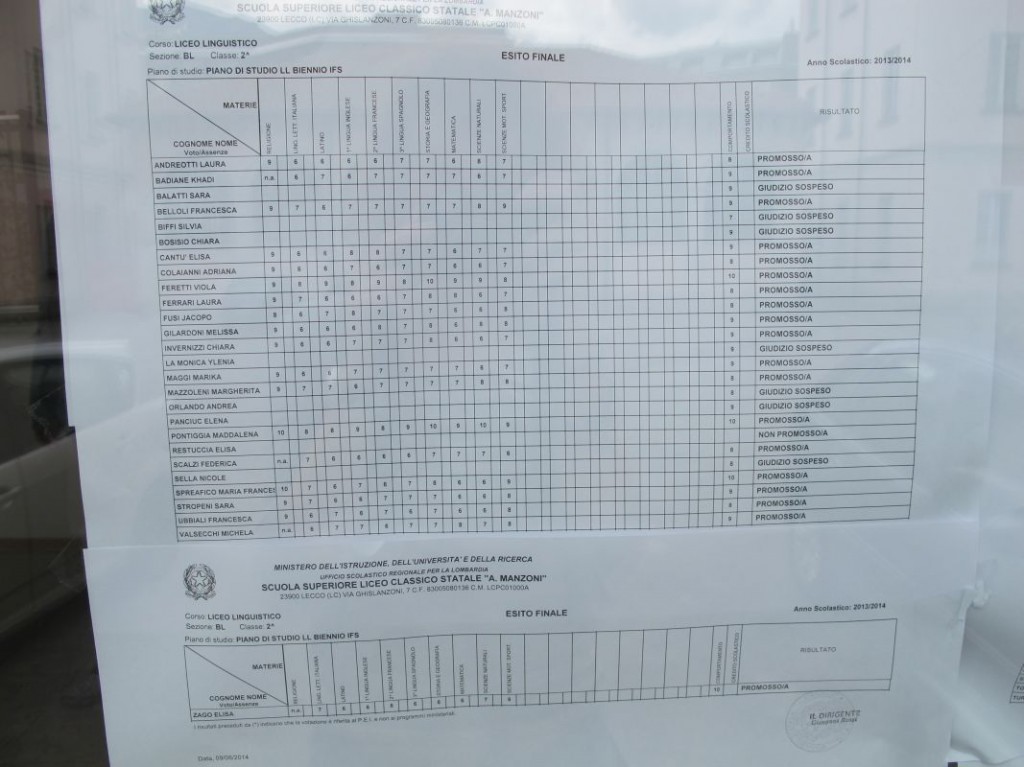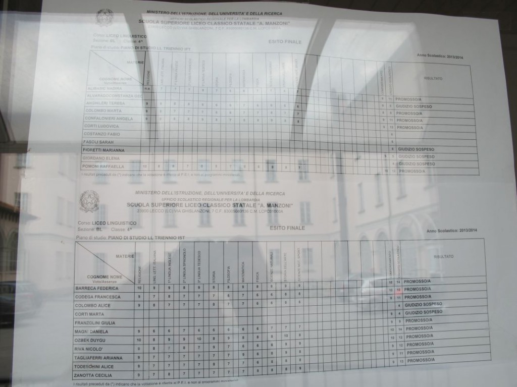 Speciale scuole 2014: i tabelloni del Linguistico e del Bertacchi