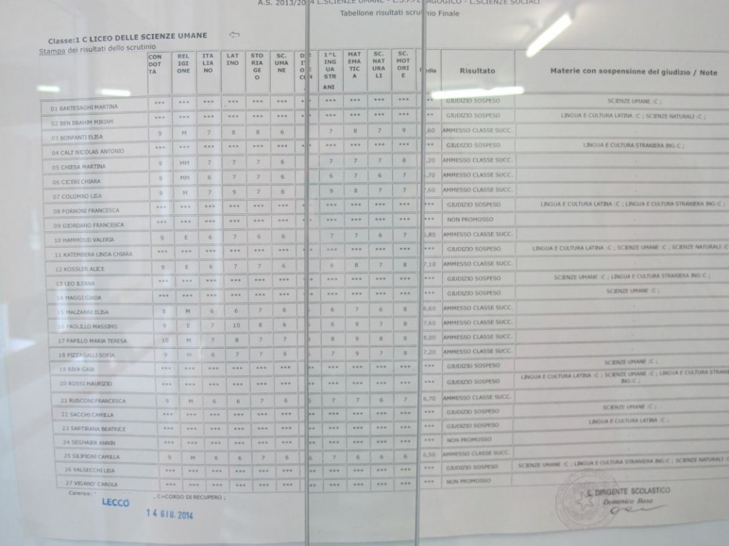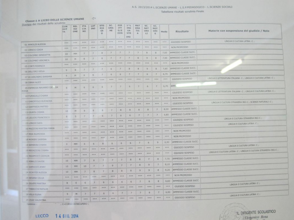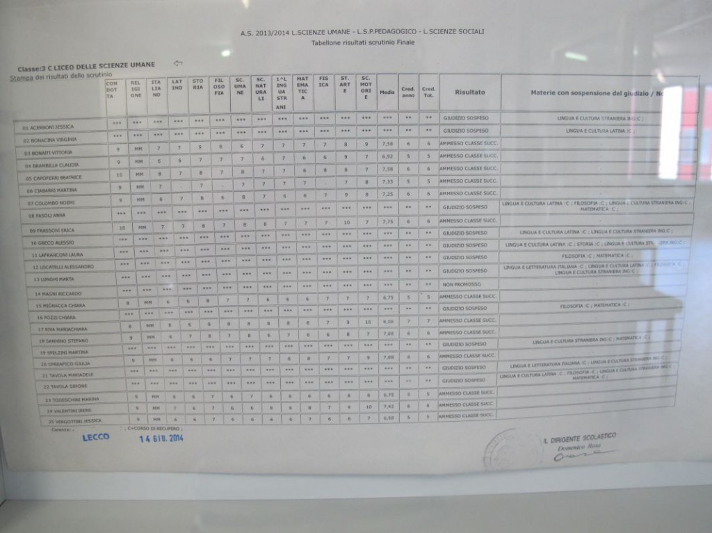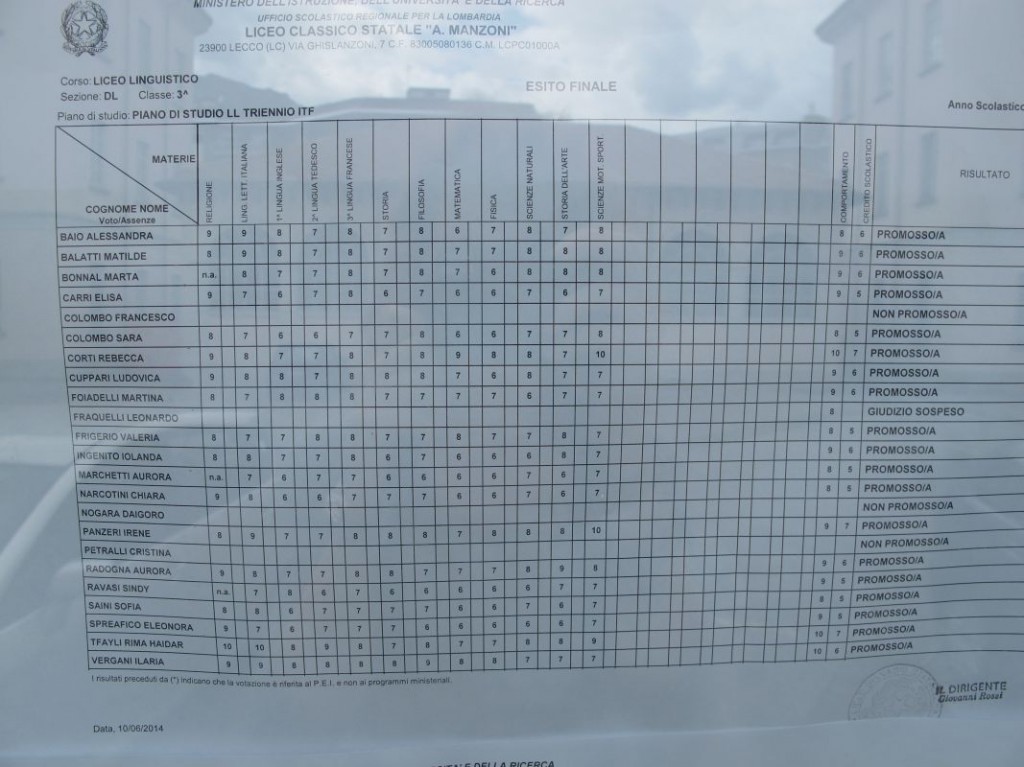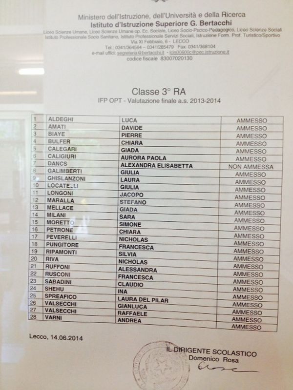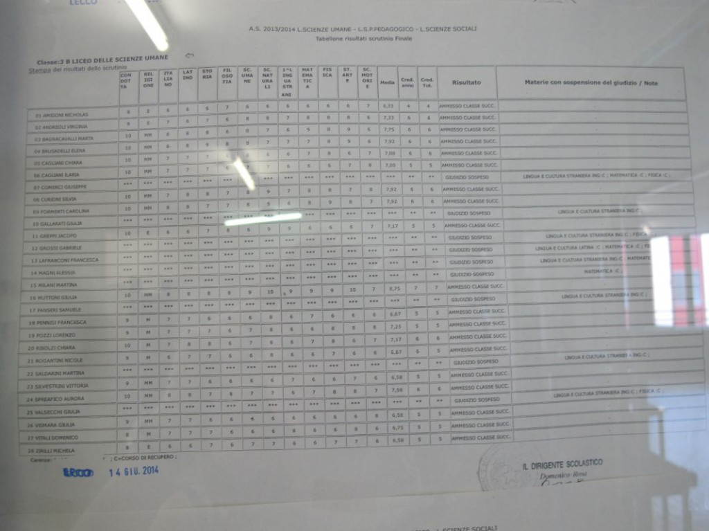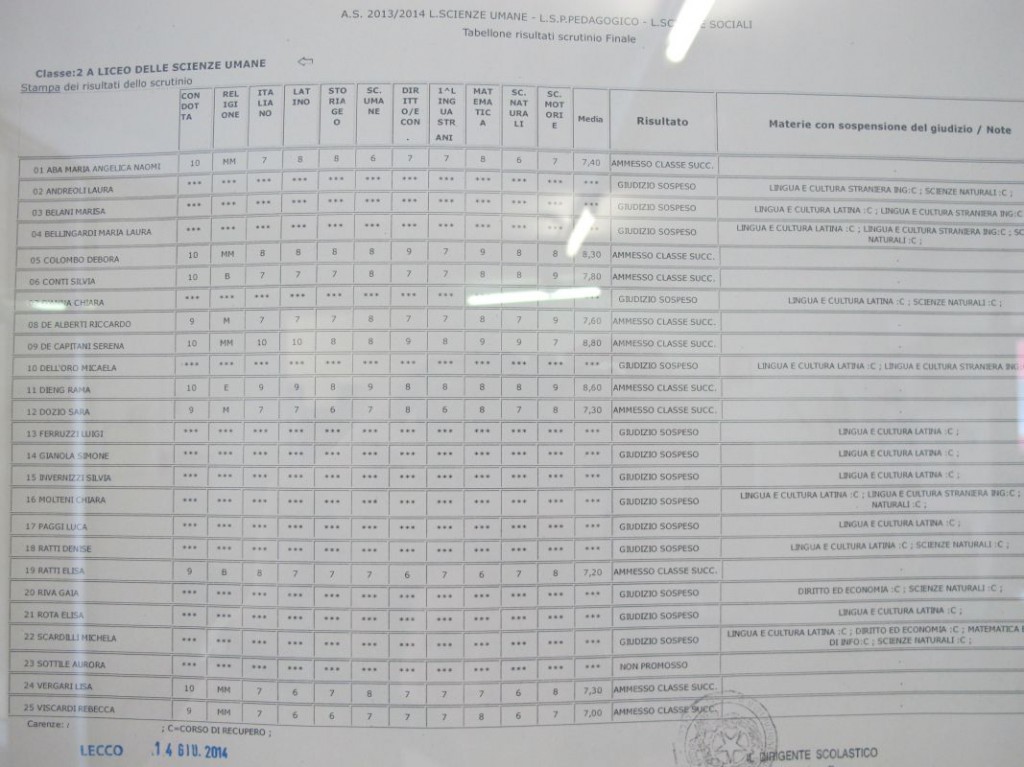 Speciale scuole 2014: i tabelloni del Linguistico e del Bertacchi