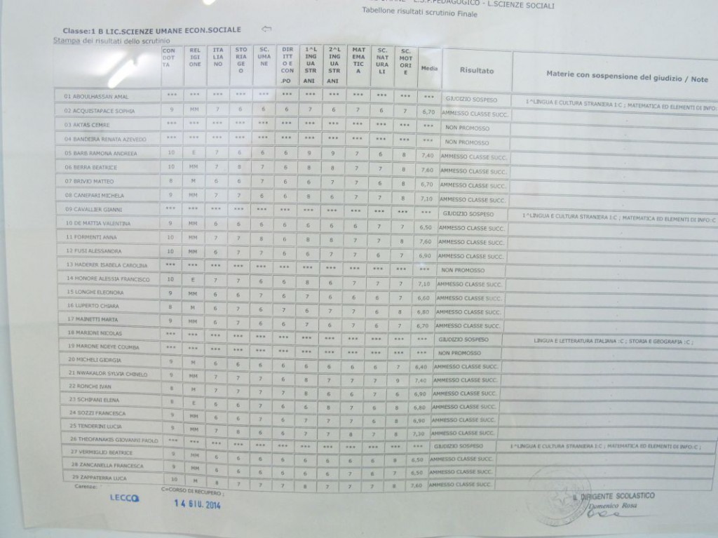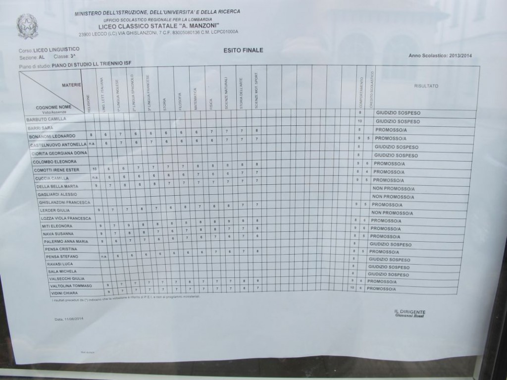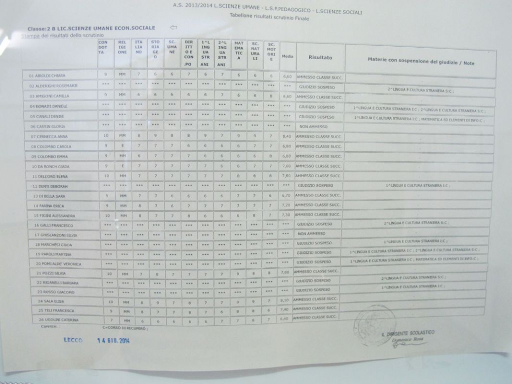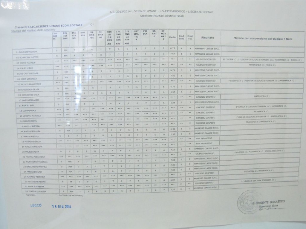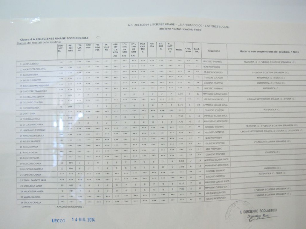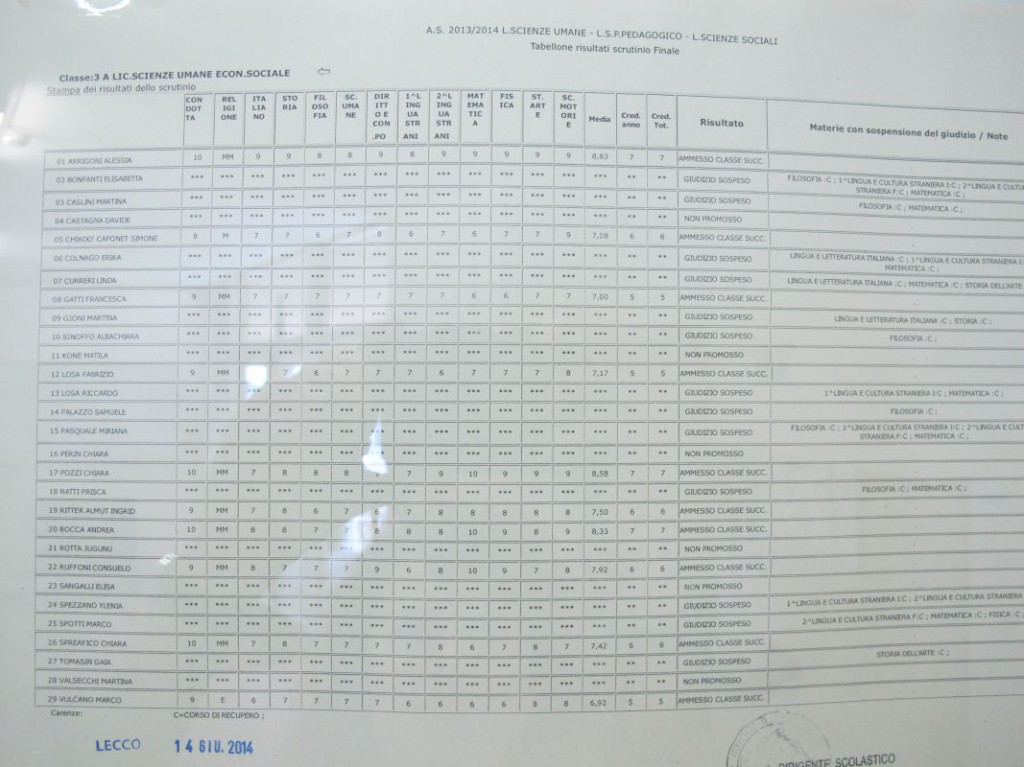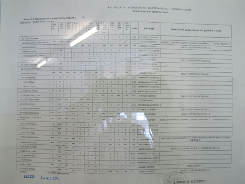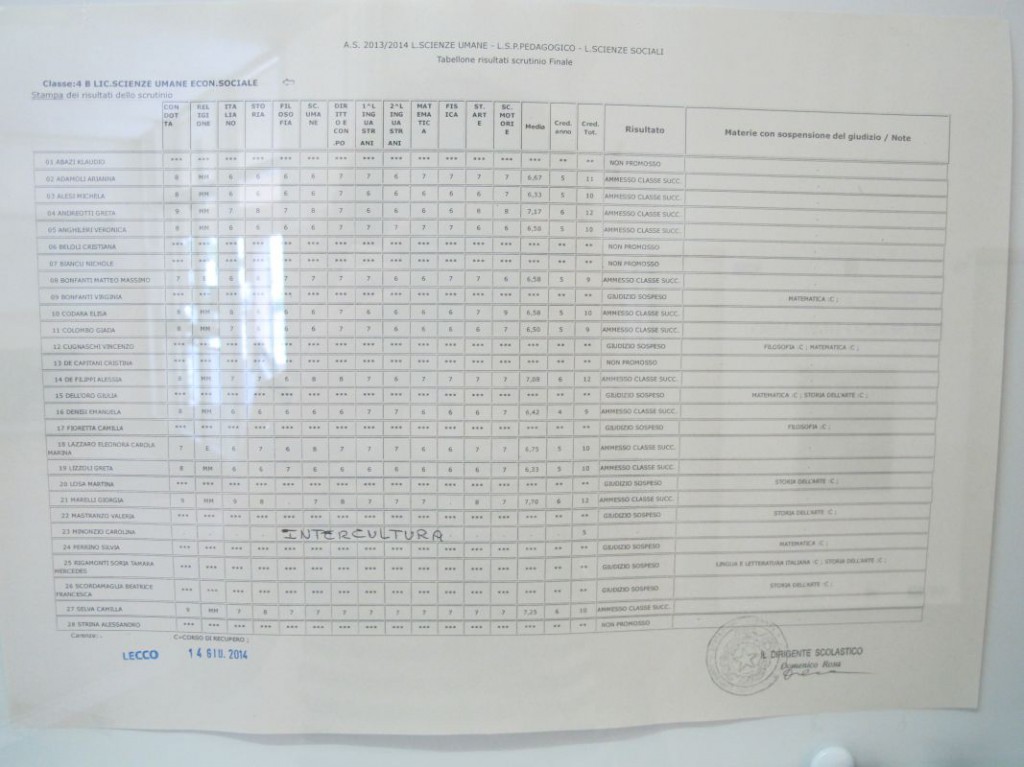 Speciale scuole 2014: i tabelloni del Linguistico e del Bertacchi