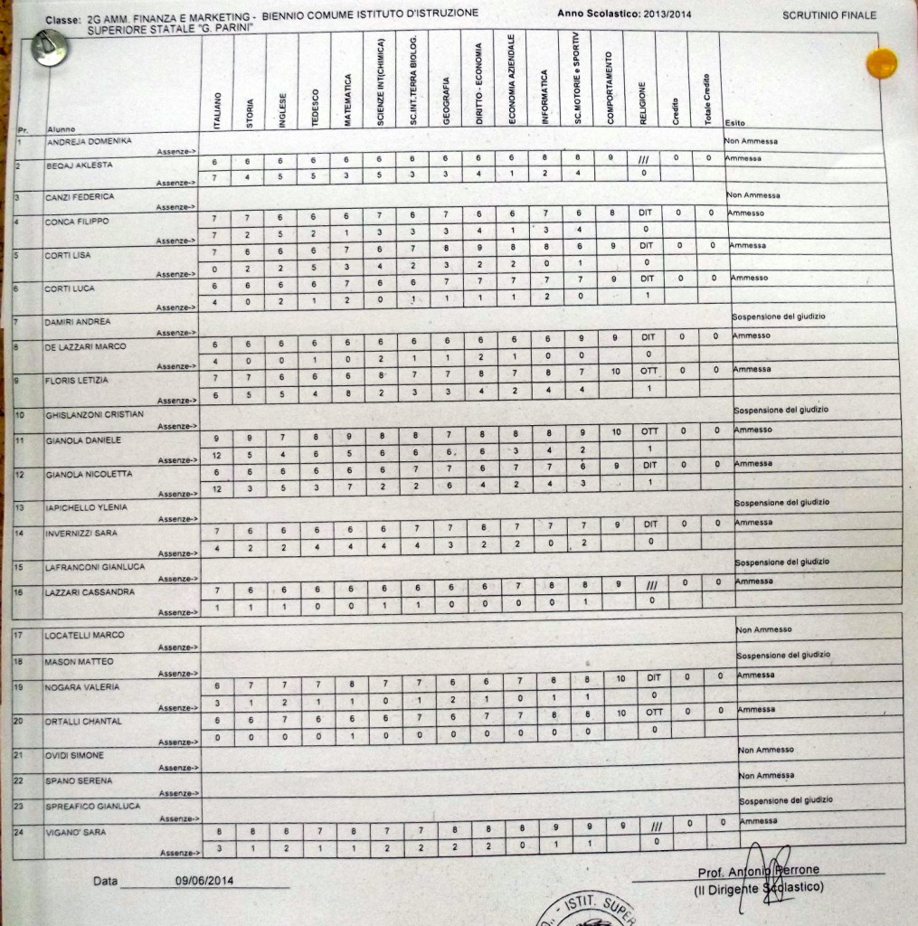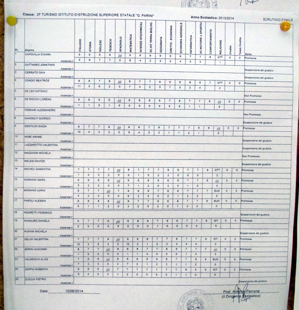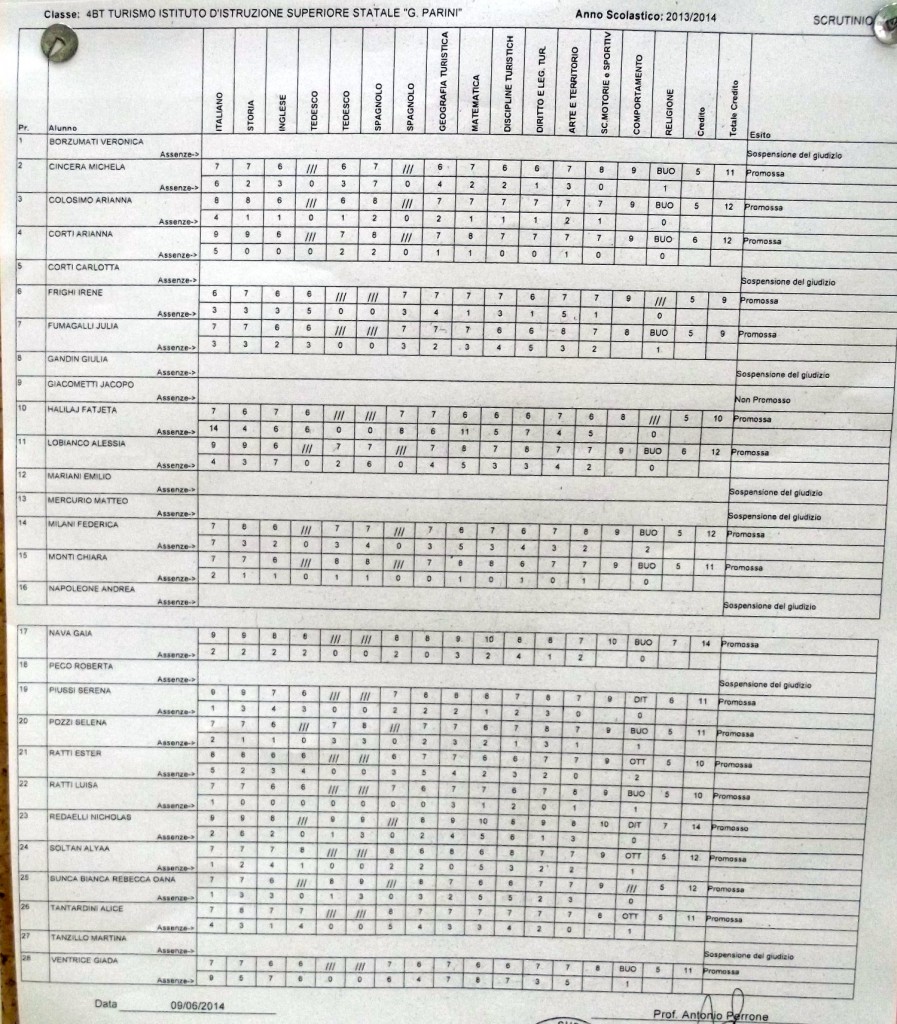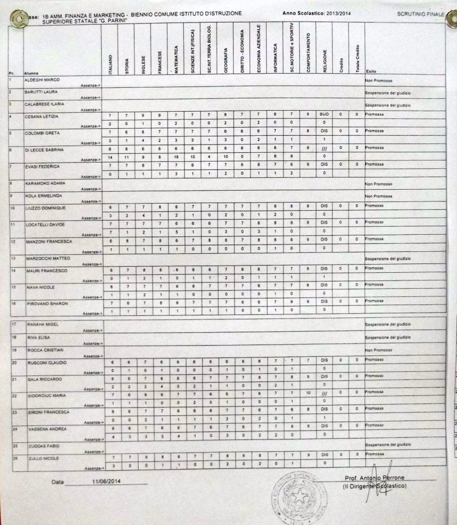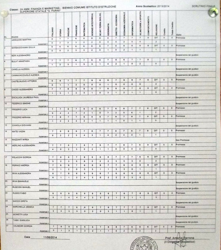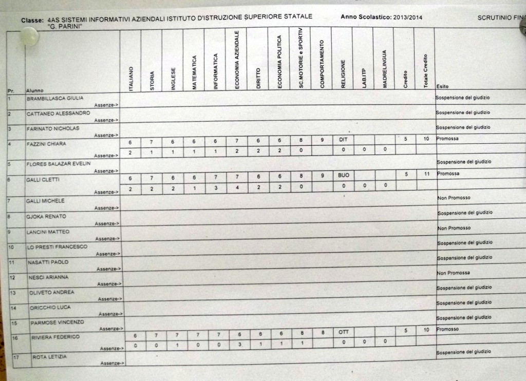 LECCO – Pubblichiamo gli esiti di fine anno scolastico per gli studenti dell’istituto Parini. Per visualizzare i tabelloni cliccare sulla classe.