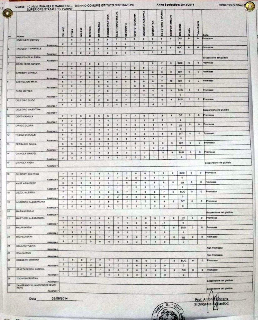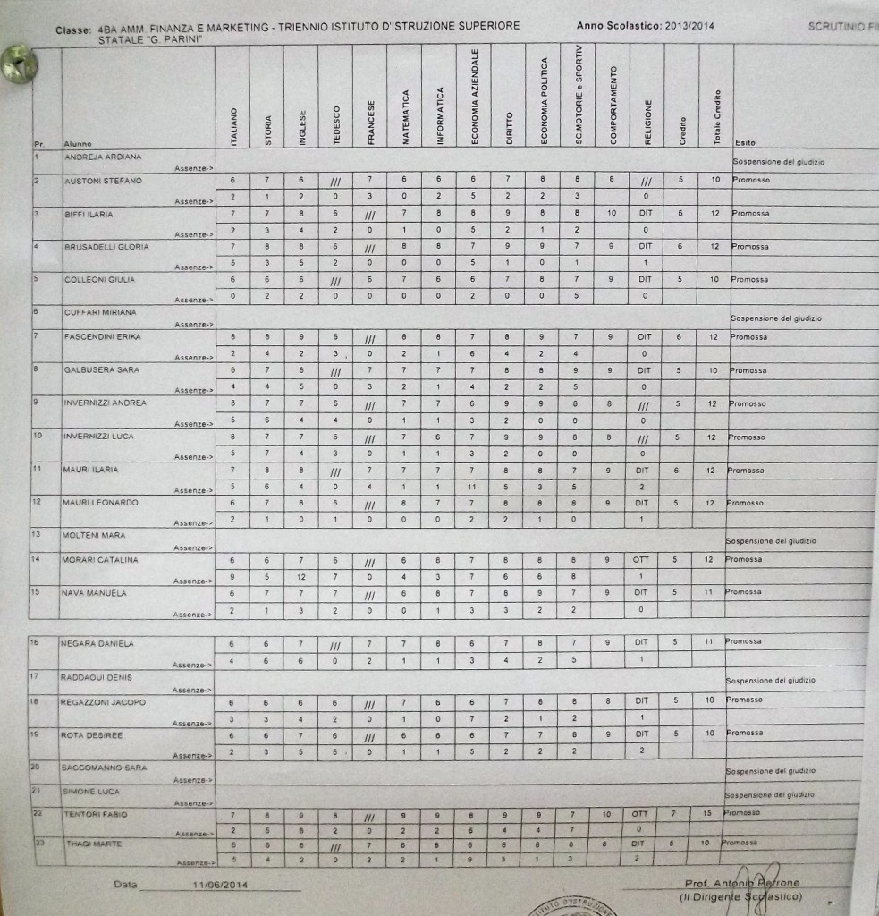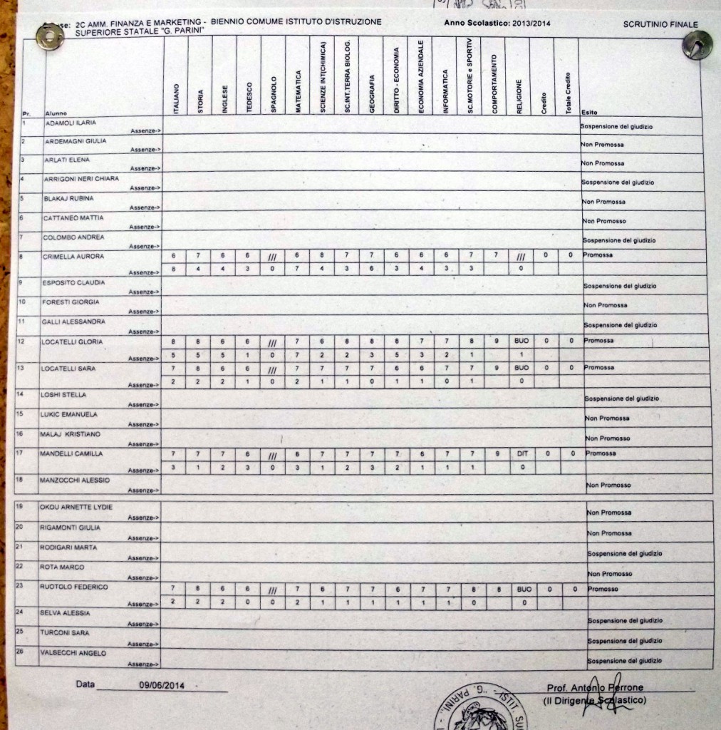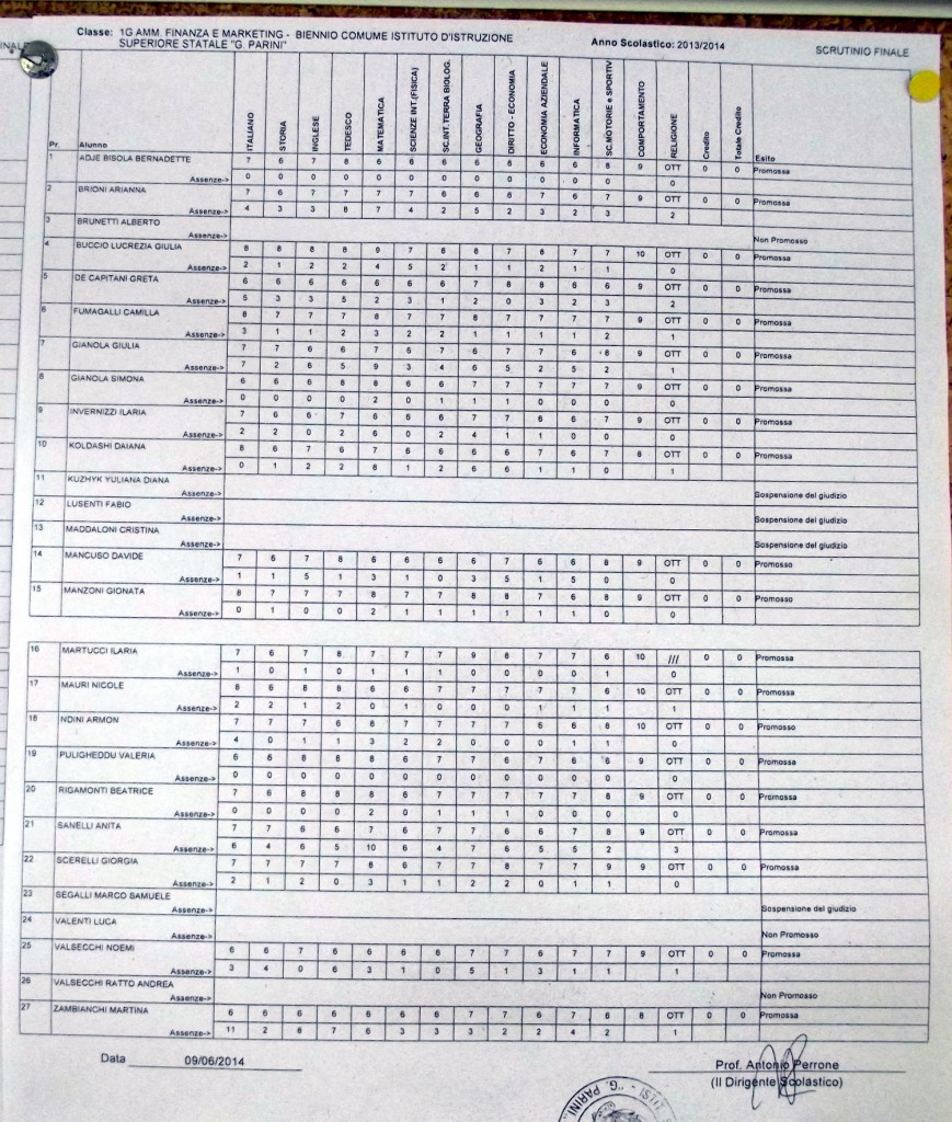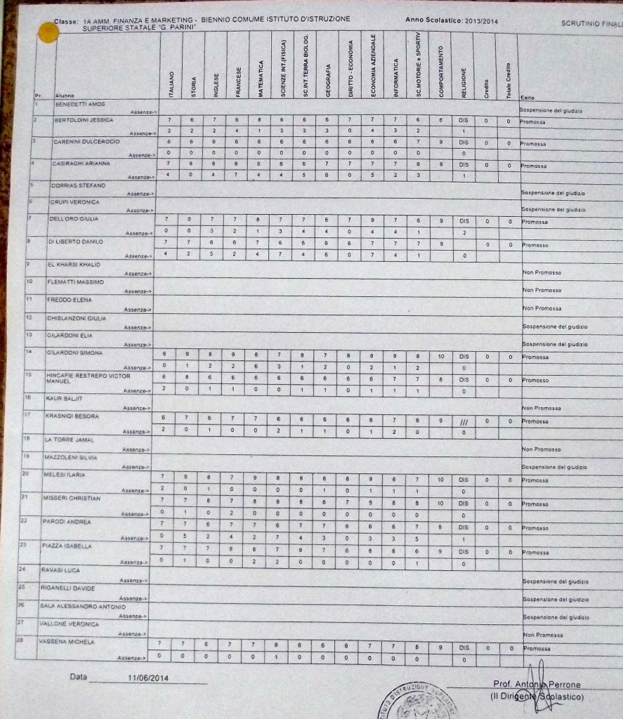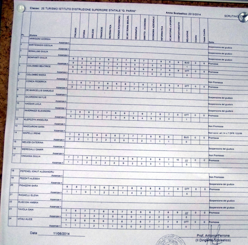 LECCO – Pubblichiamo gli esiti di fine anno scolastico per gli studenti dell’istituto Parini. Per visualizzare i tabelloni cliccare sulla classe.