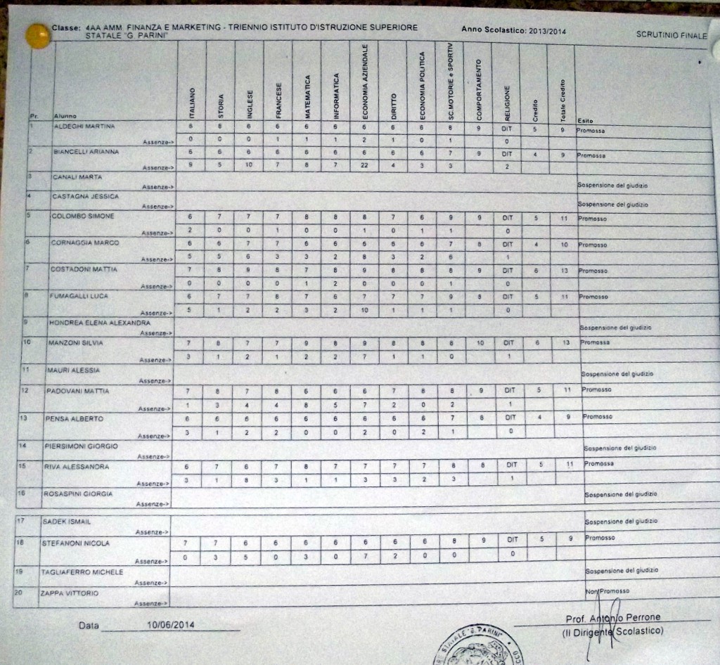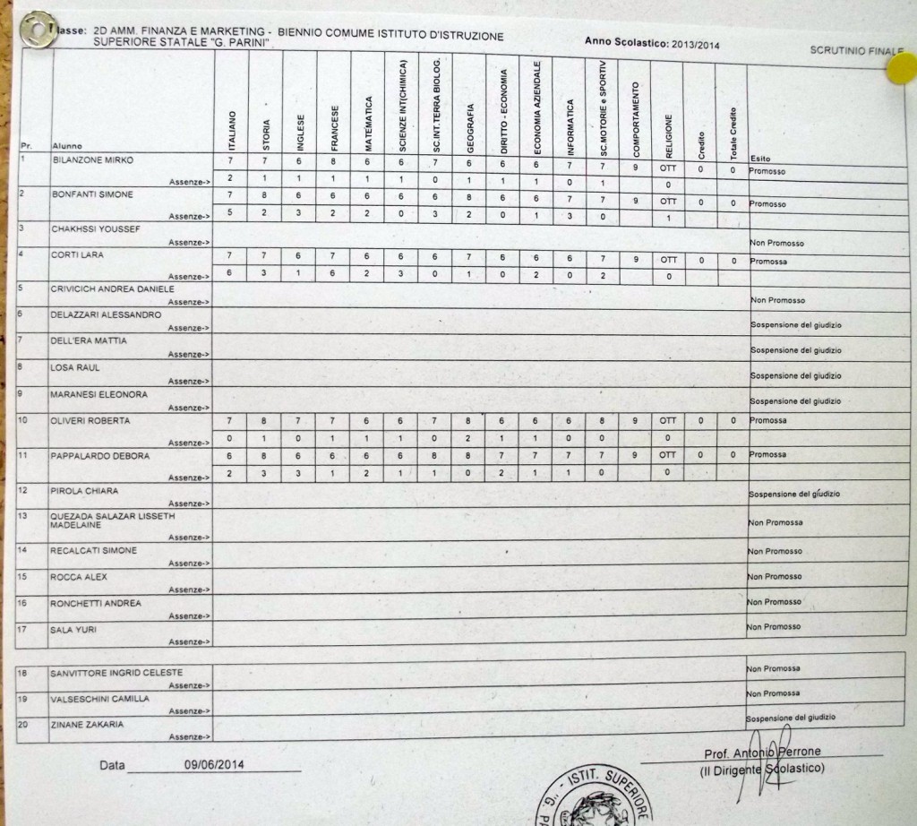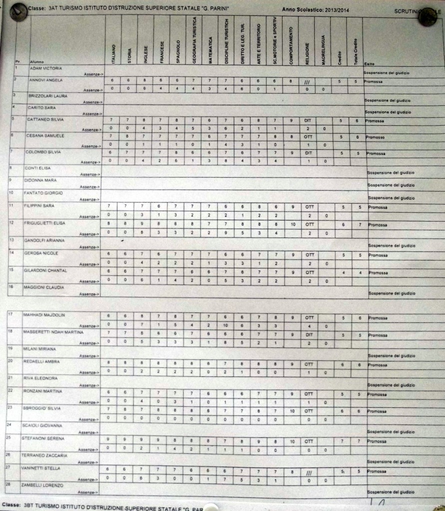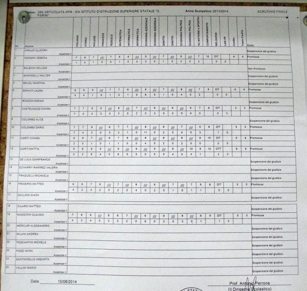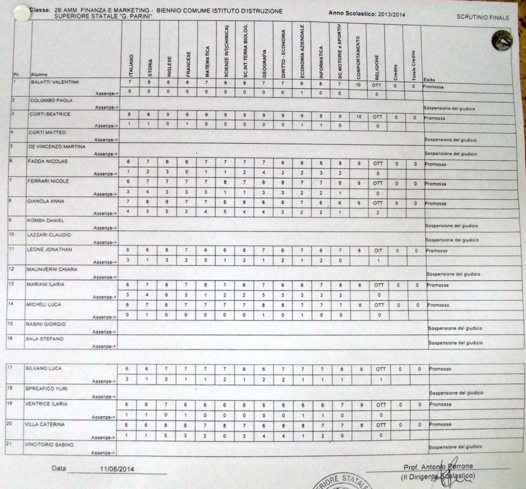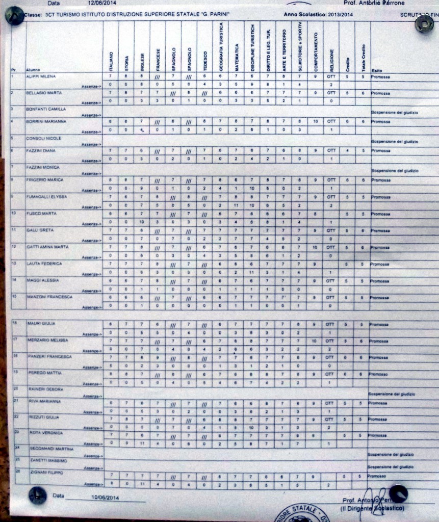 LECCO – Pubblichiamo gli esiti di fine anno scolastico per gli studenti dell’istituto Parini. Per visualizzare i tabelloni cliccare sulla classe.