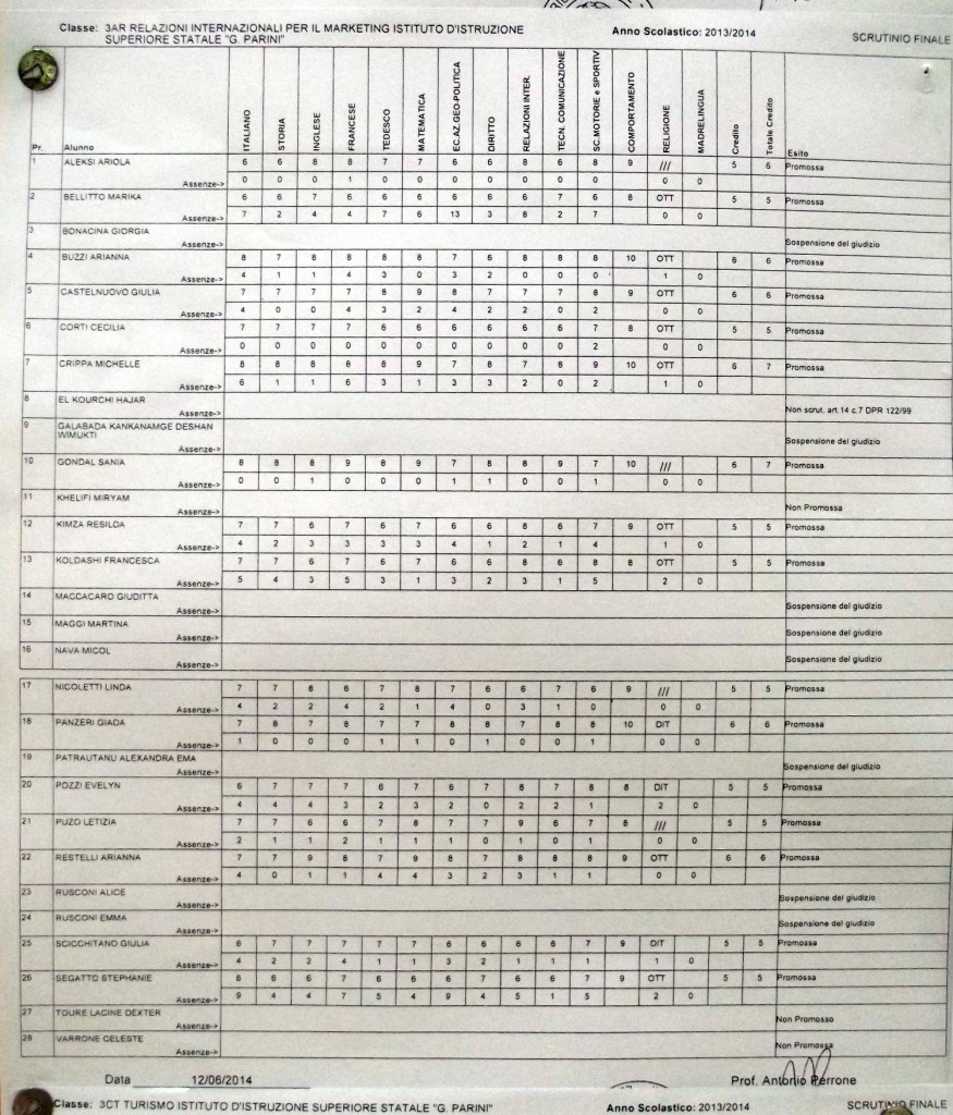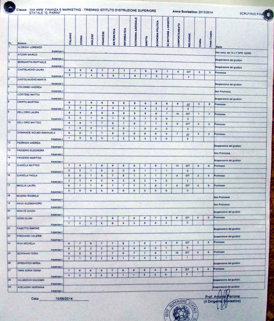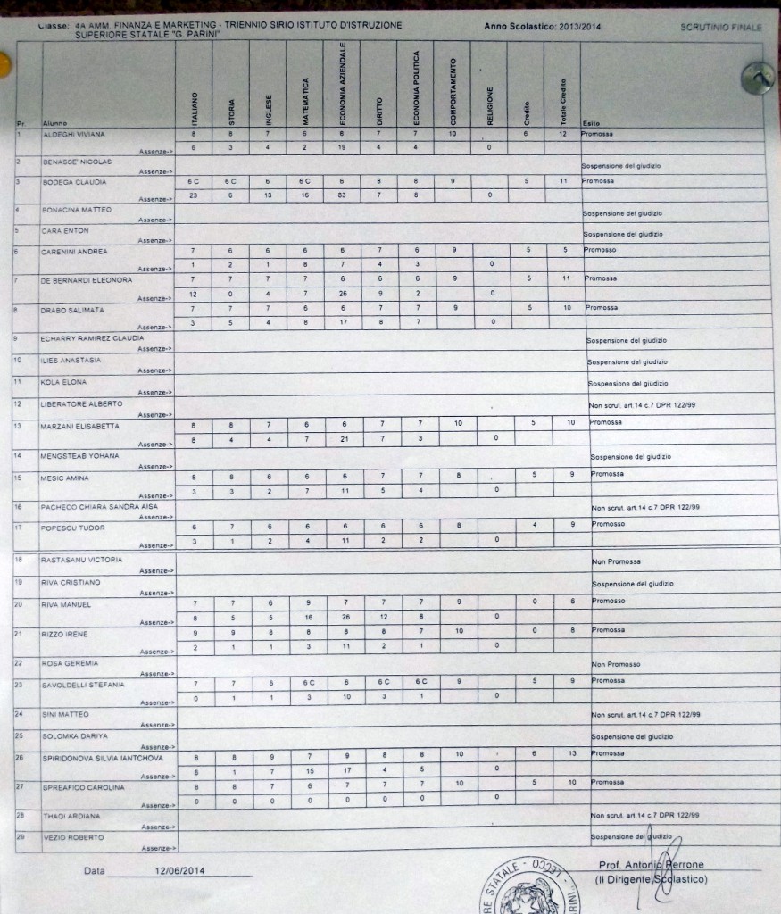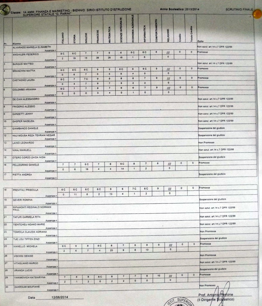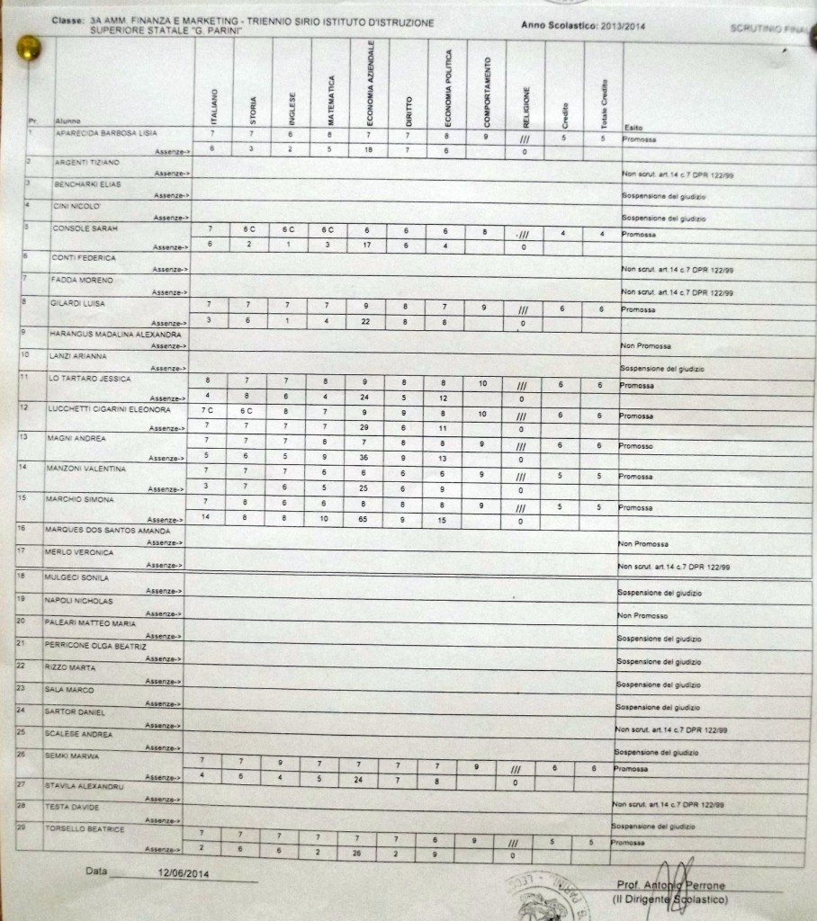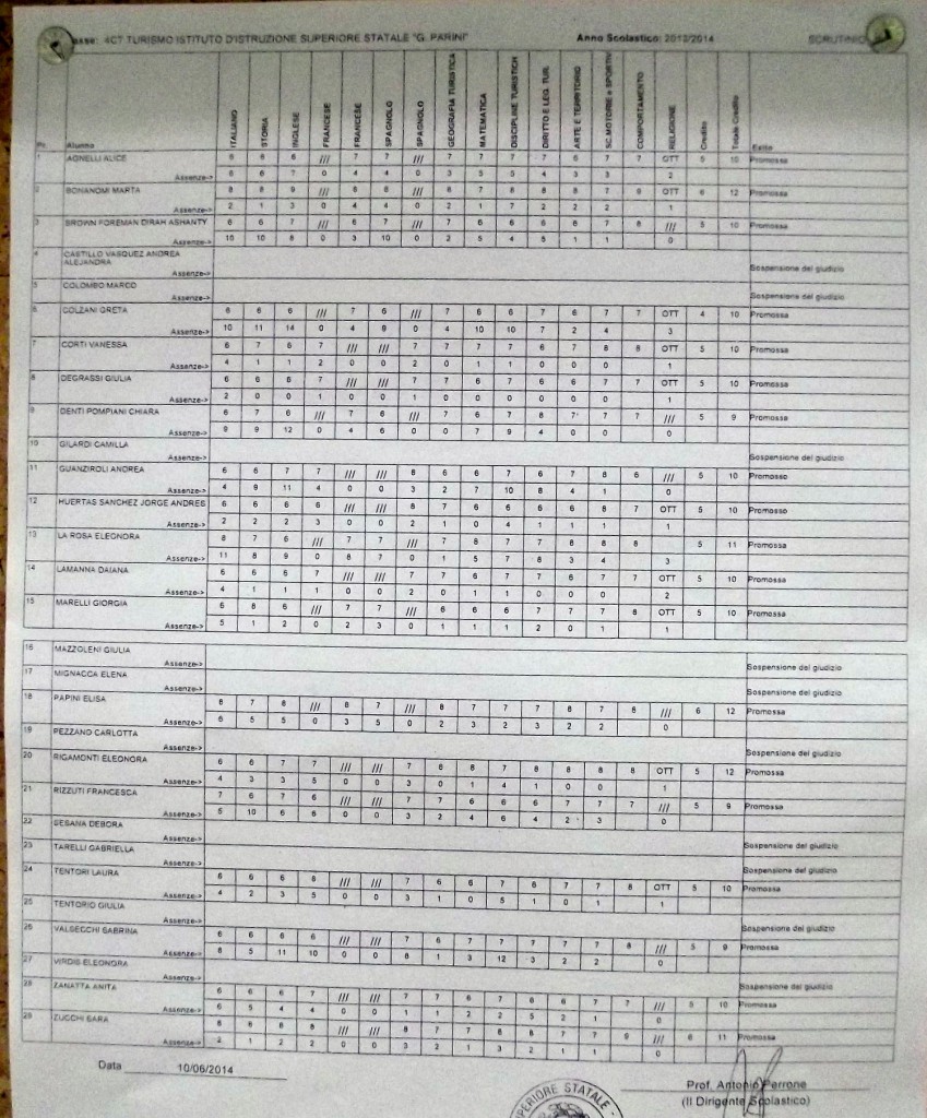 LECCO – Pubblichiamo gli esiti di fine anno scolastico per gli studenti dell’istituto Parini. Per visualizzare i tabelloni cliccare sulla classe.