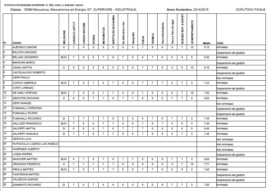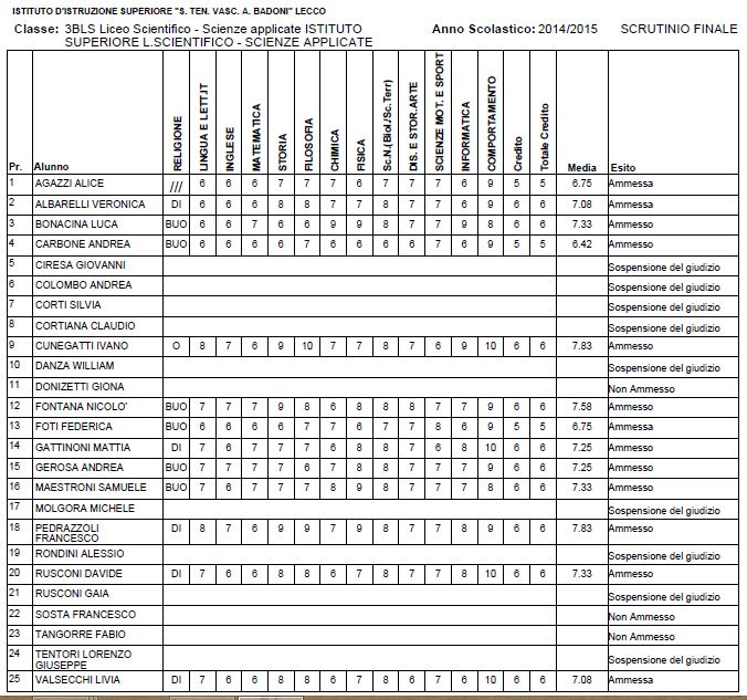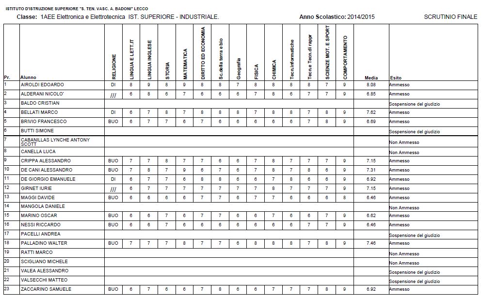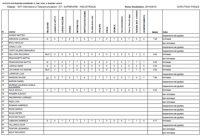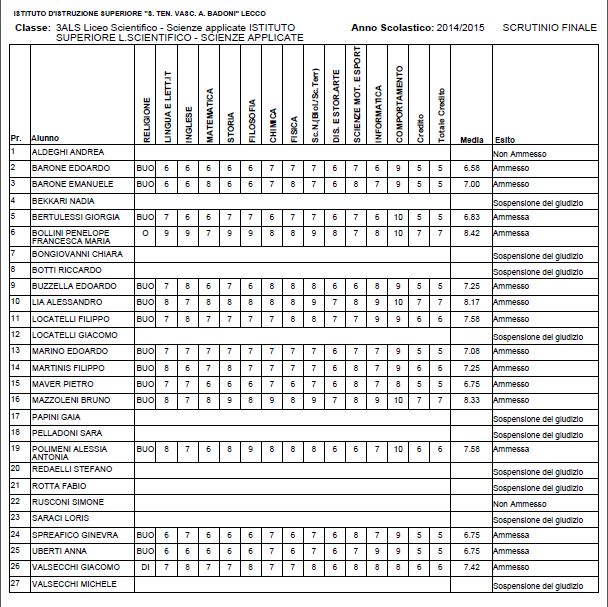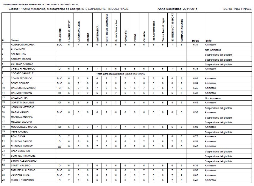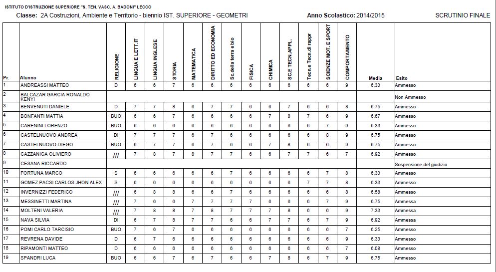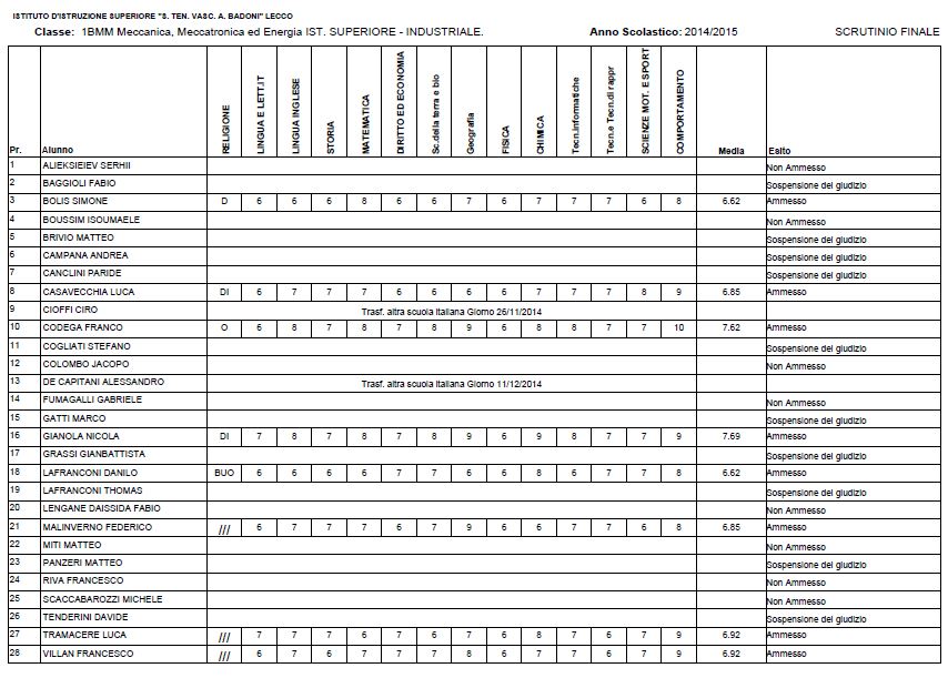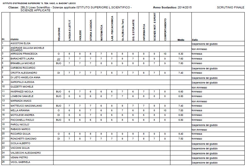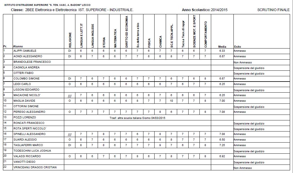LECCO – Riportiamo di seguito i voti di fine anno degli studenti dell’Istituto Badoni, terminati di pubblicare nella giornata di sabato.