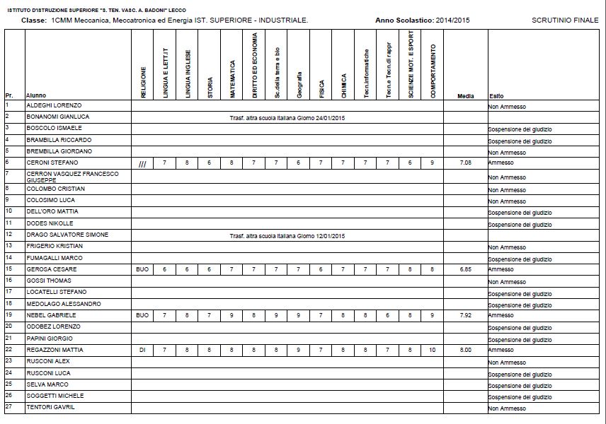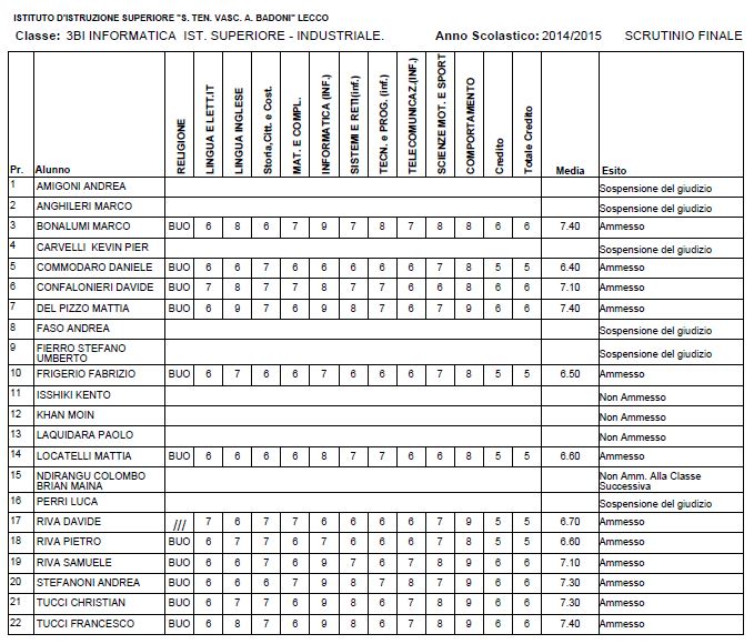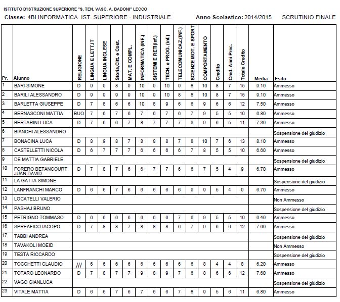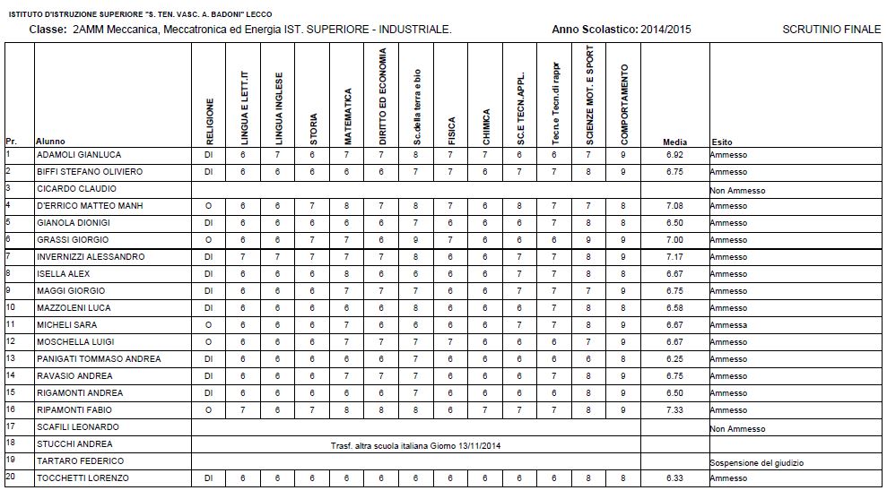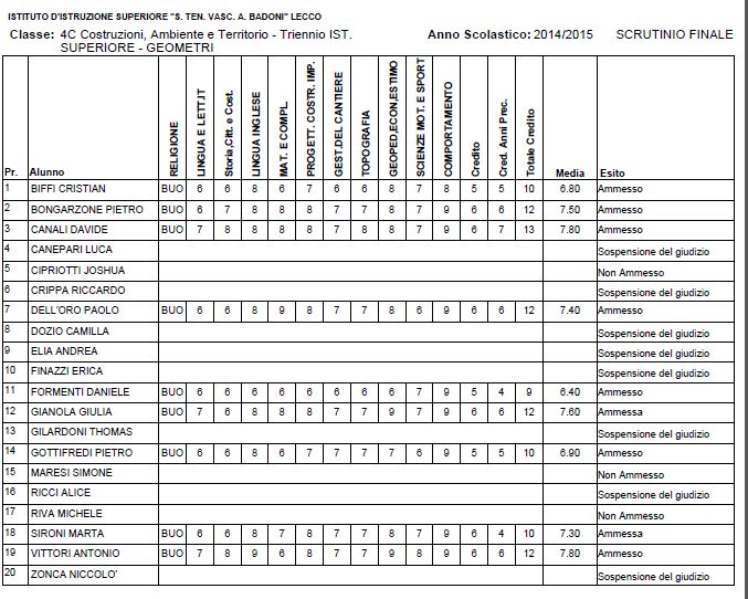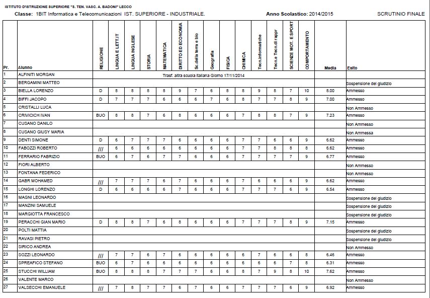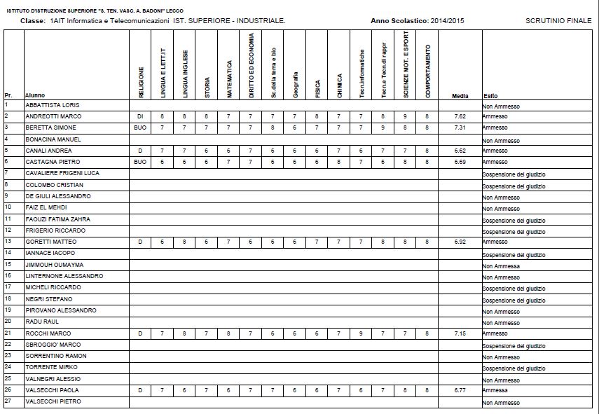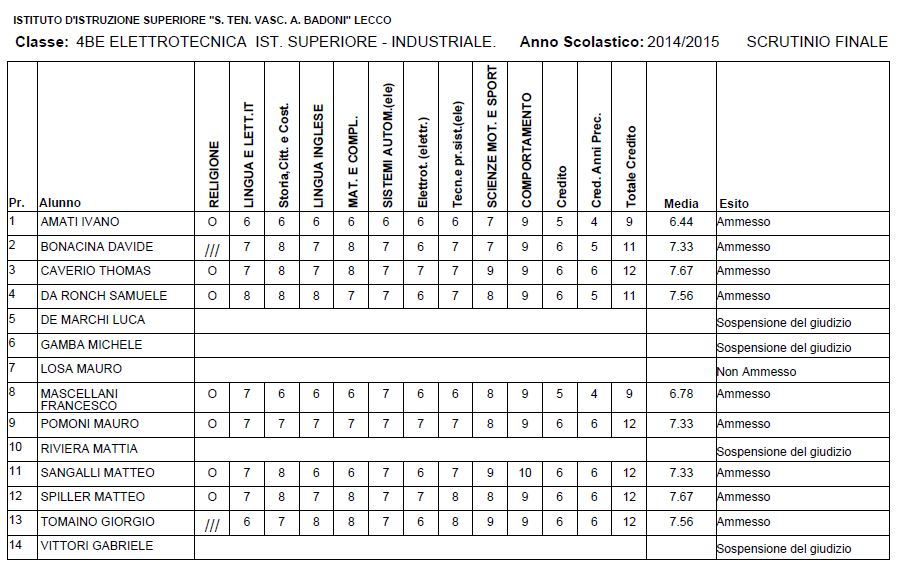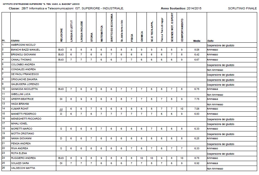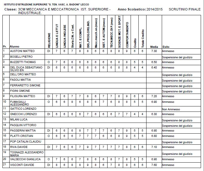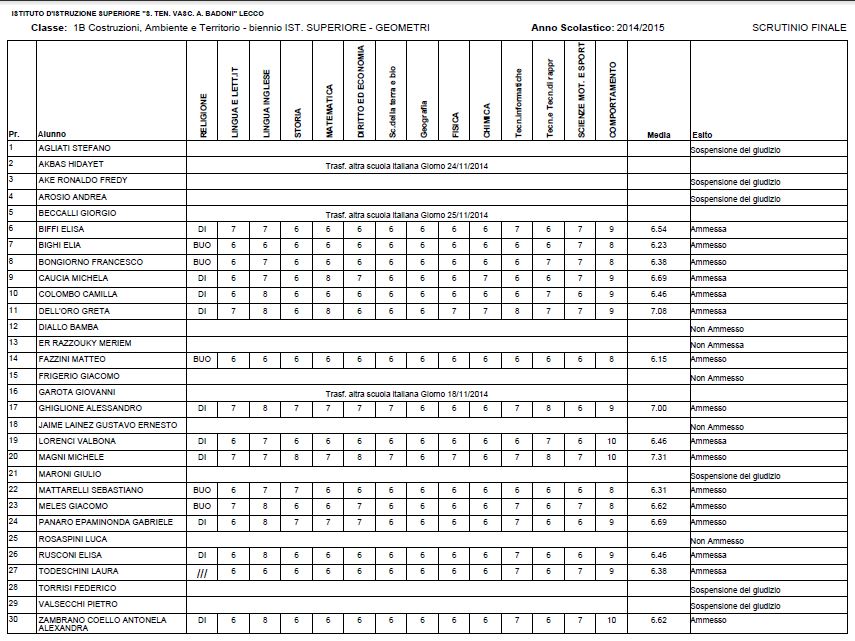 LECCO – Riportiamo di seguito i voti di fine anno degli studenti dell’Istituto Badoni, terminati di pubblicare nella giornata di sabato.