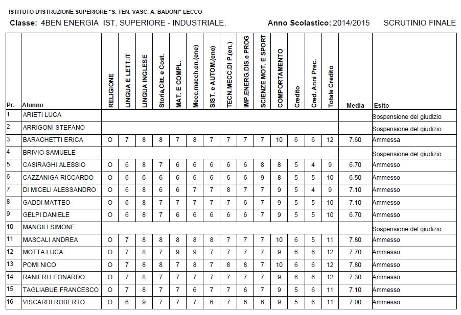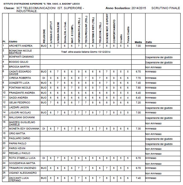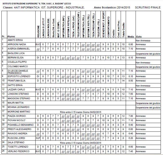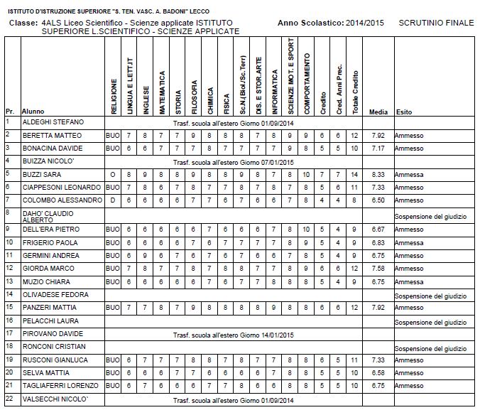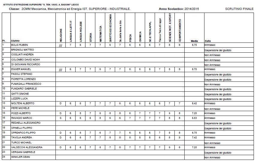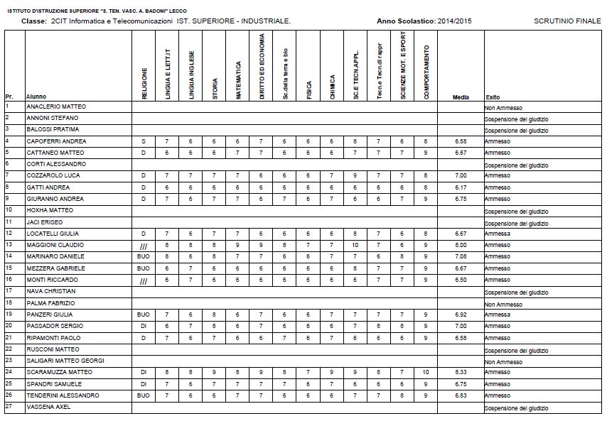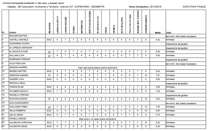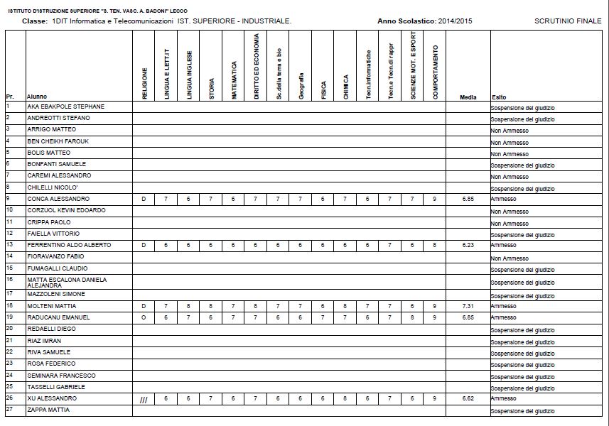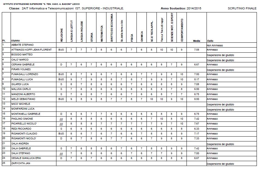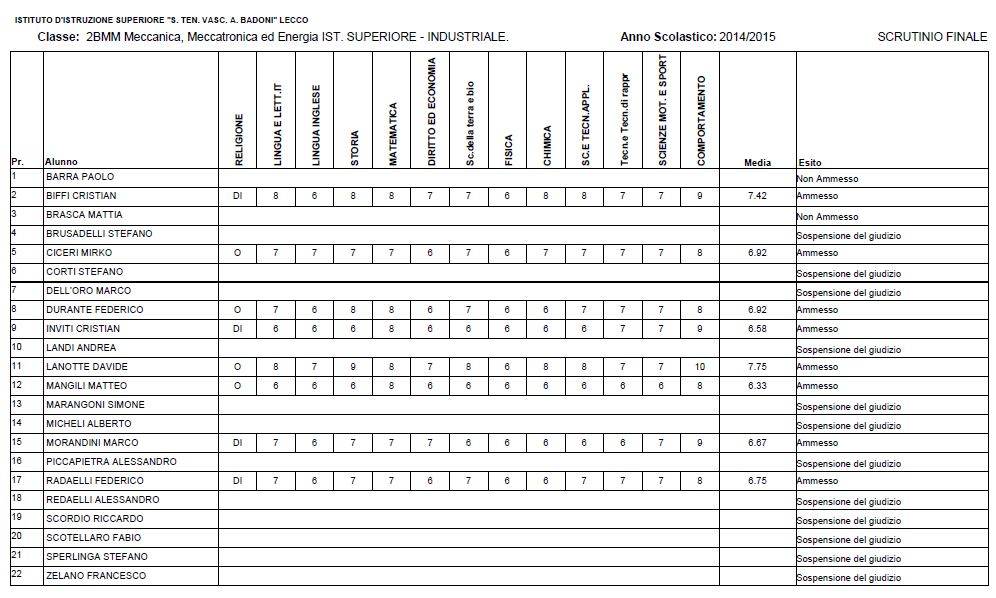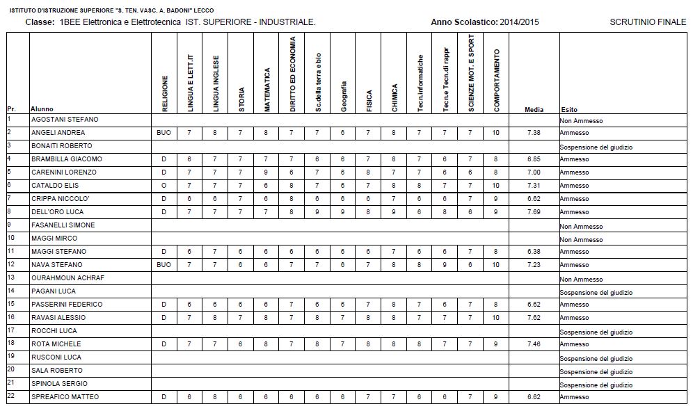 LECCO – Riportiamo di seguito i voti di fine anno degli studenti dell’Istituto Badoni, terminati di pubblicare nella giornata di sabato.