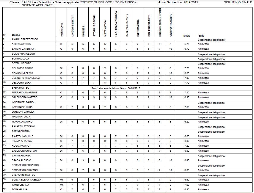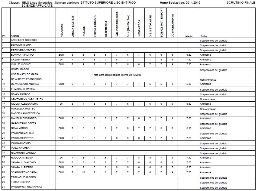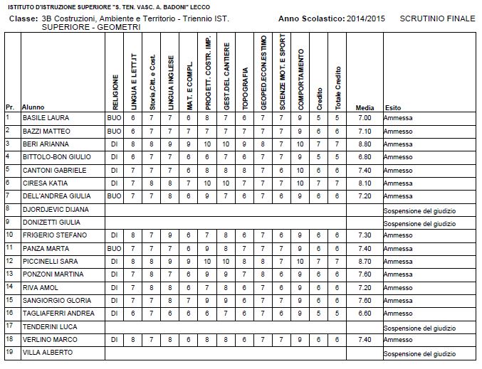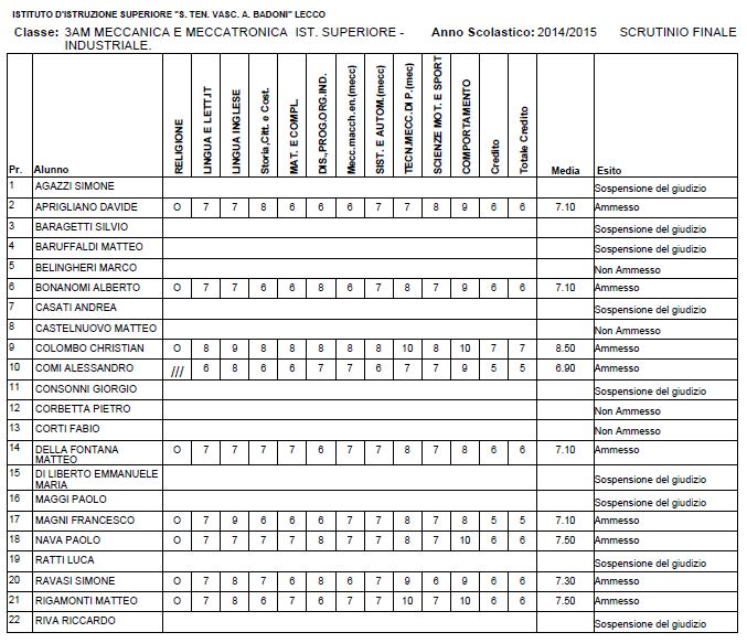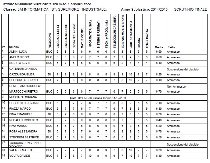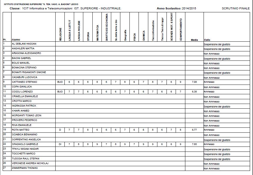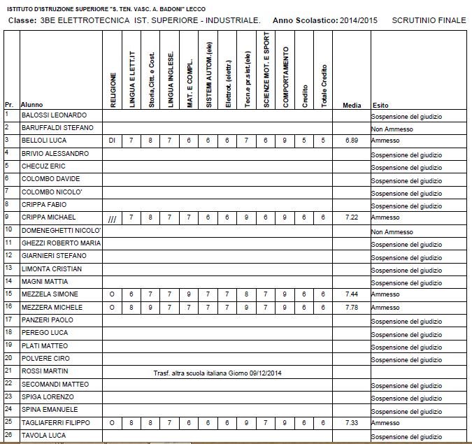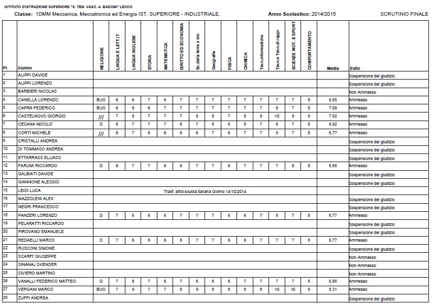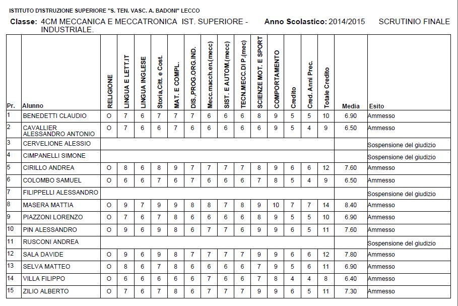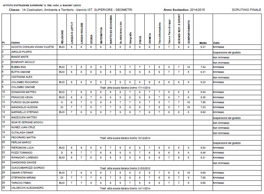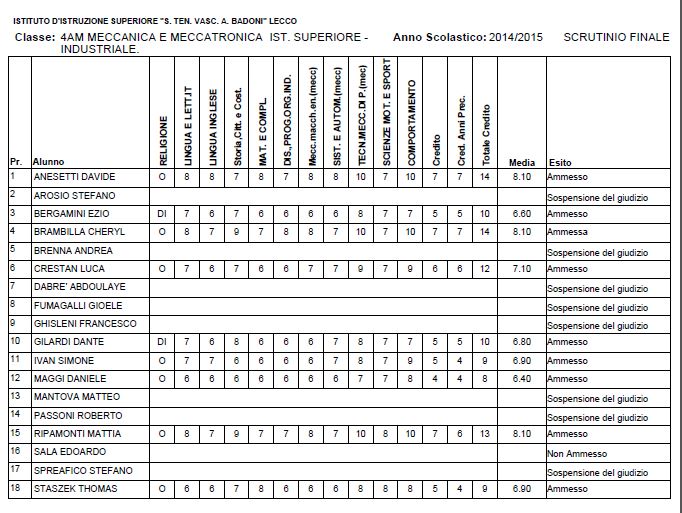 LECCO – Riportiamo di seguito i voti di fine anno degli studenti dell’Istituto Badoni, terminati di pubblicare nella giornata di sabato.