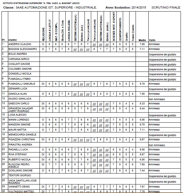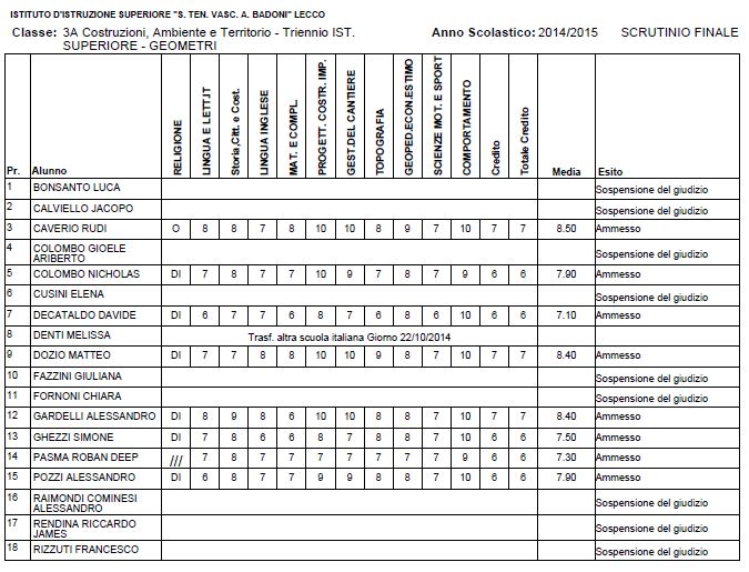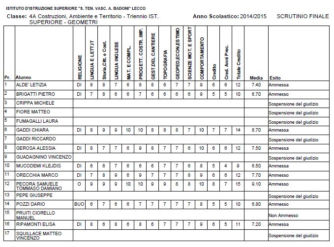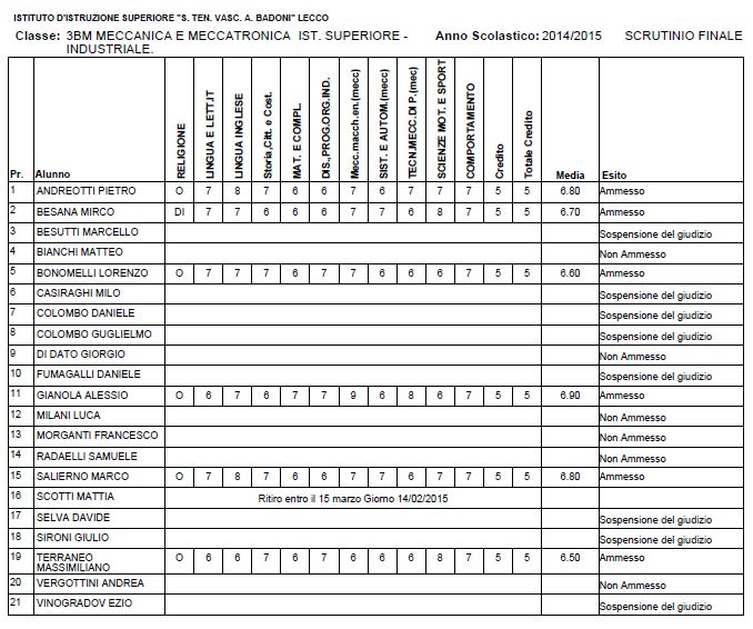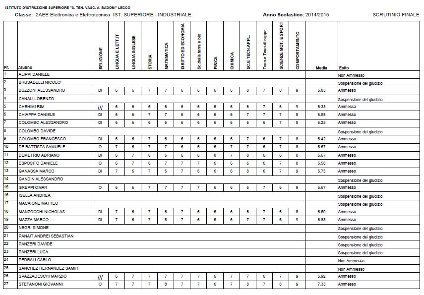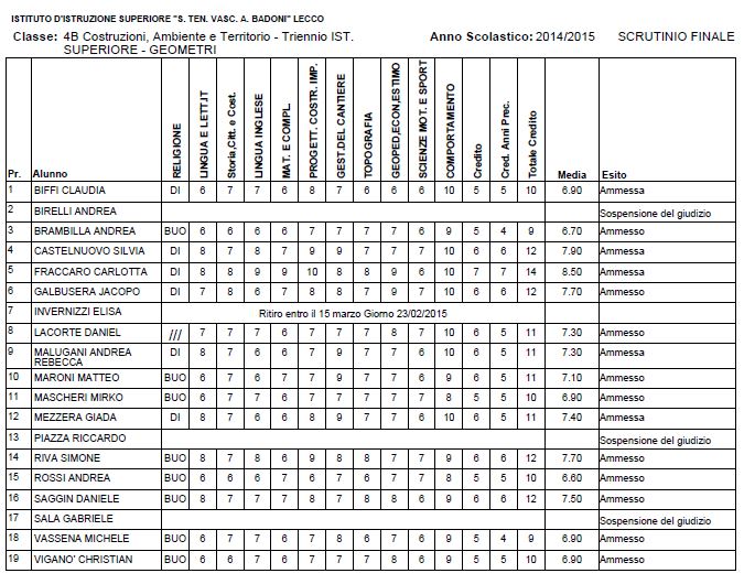 Speciale Scuole 2015, i voti di fine anno dell’Istituto Badoni