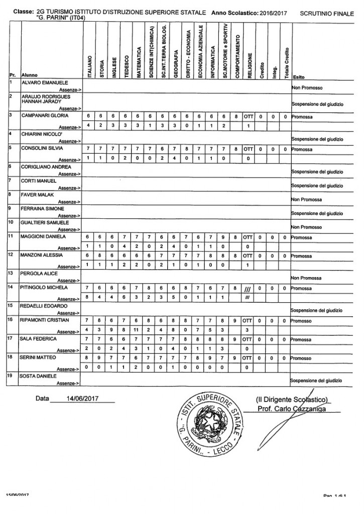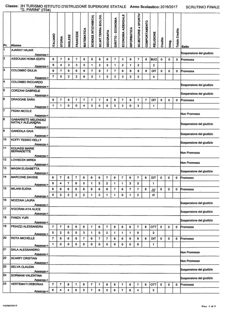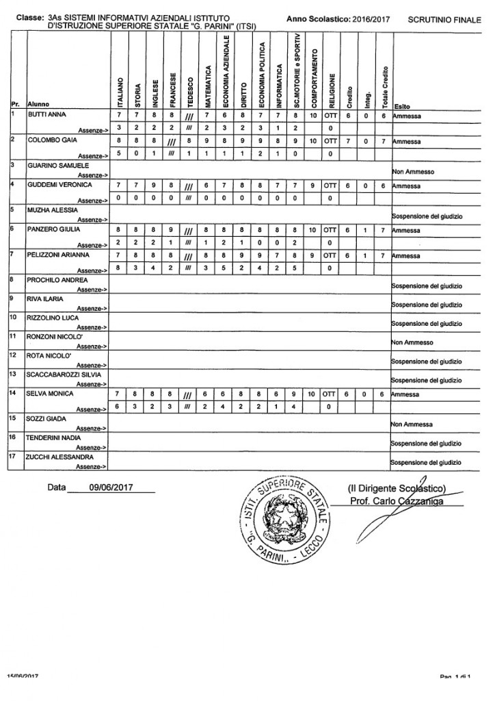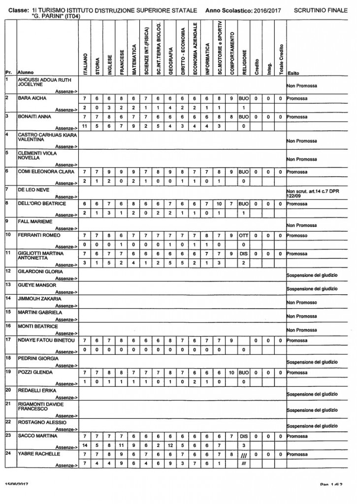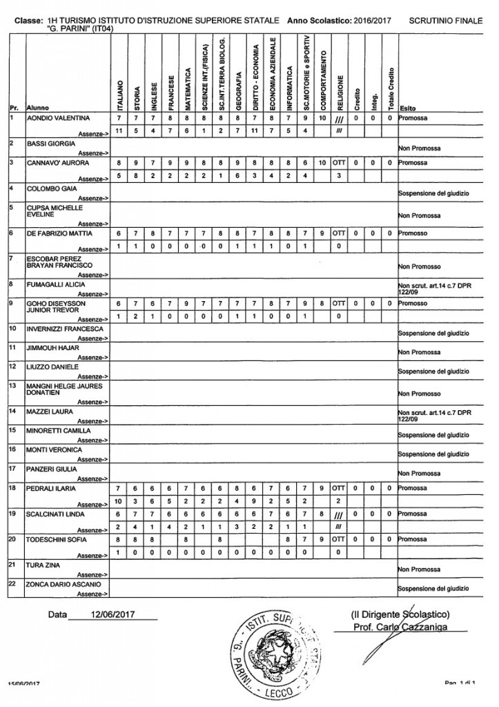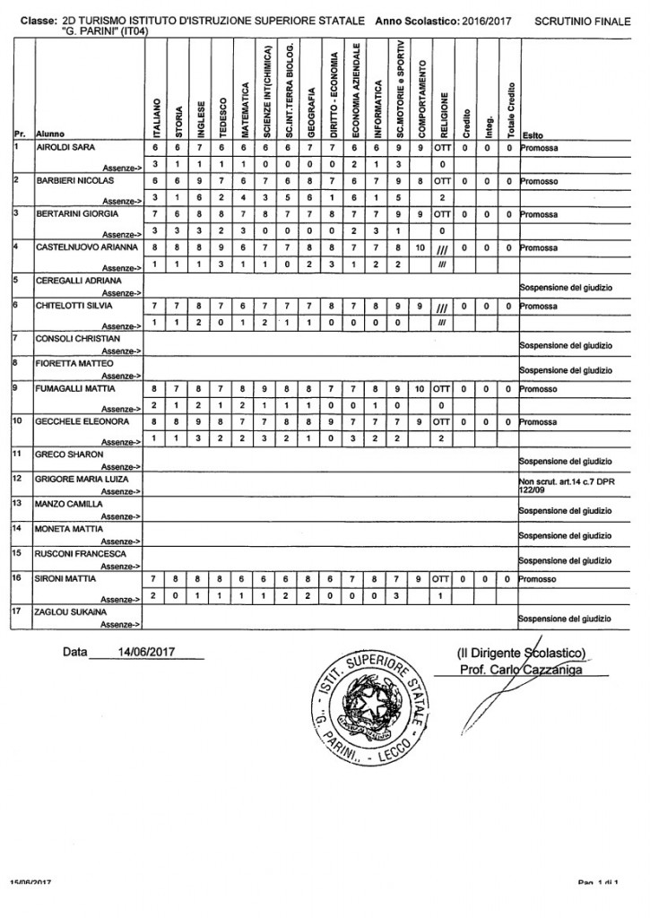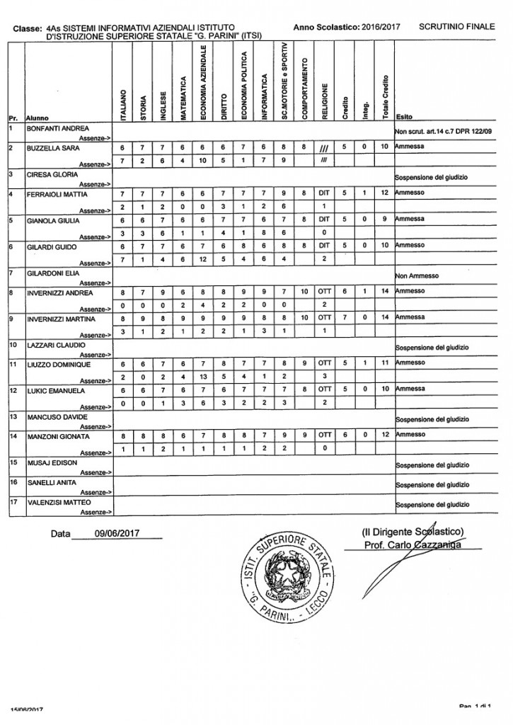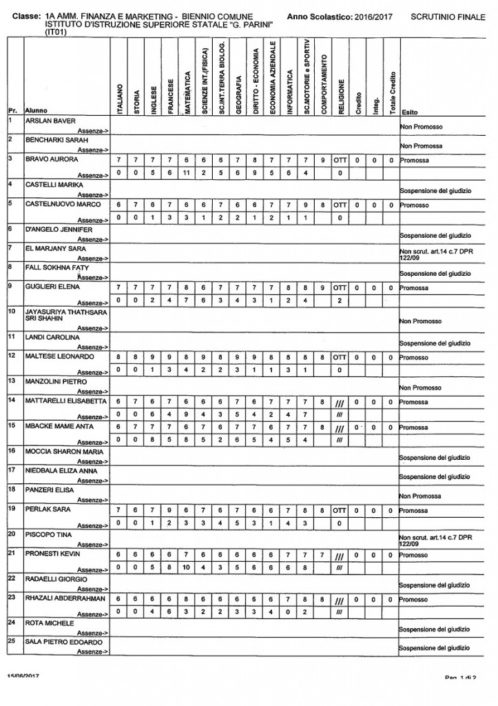 LECCO – Terminati gli scrutini anche all’Istituto Parini dove sono stati esposti tutti i quadri con i voti di fine anno. Li pubblichiamo di seguito: