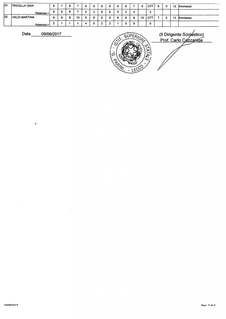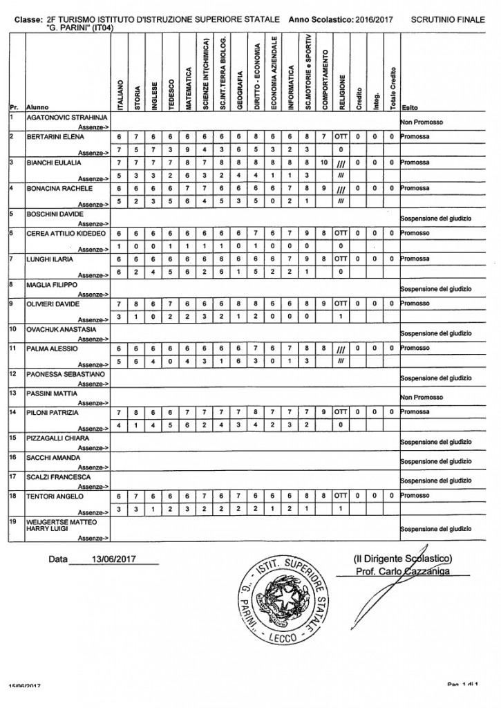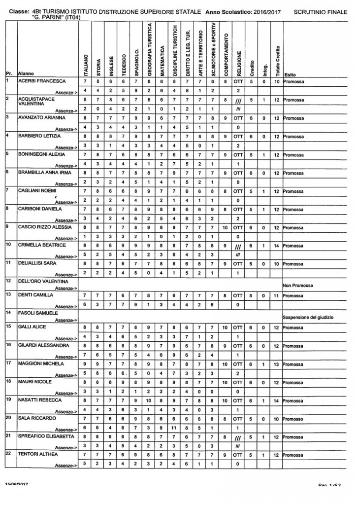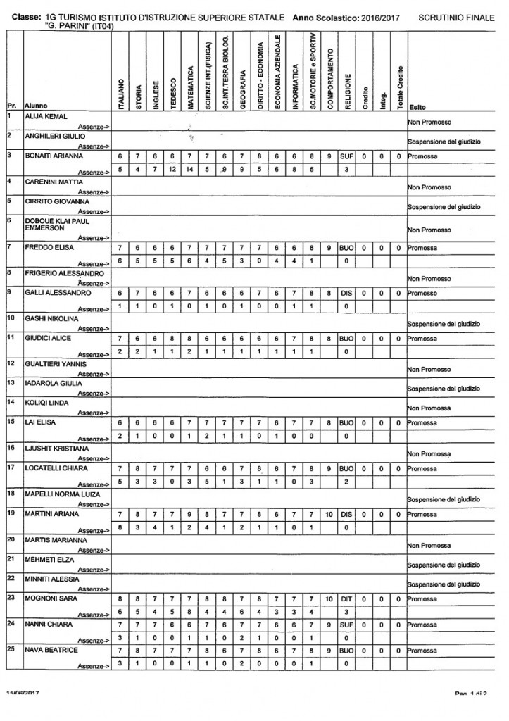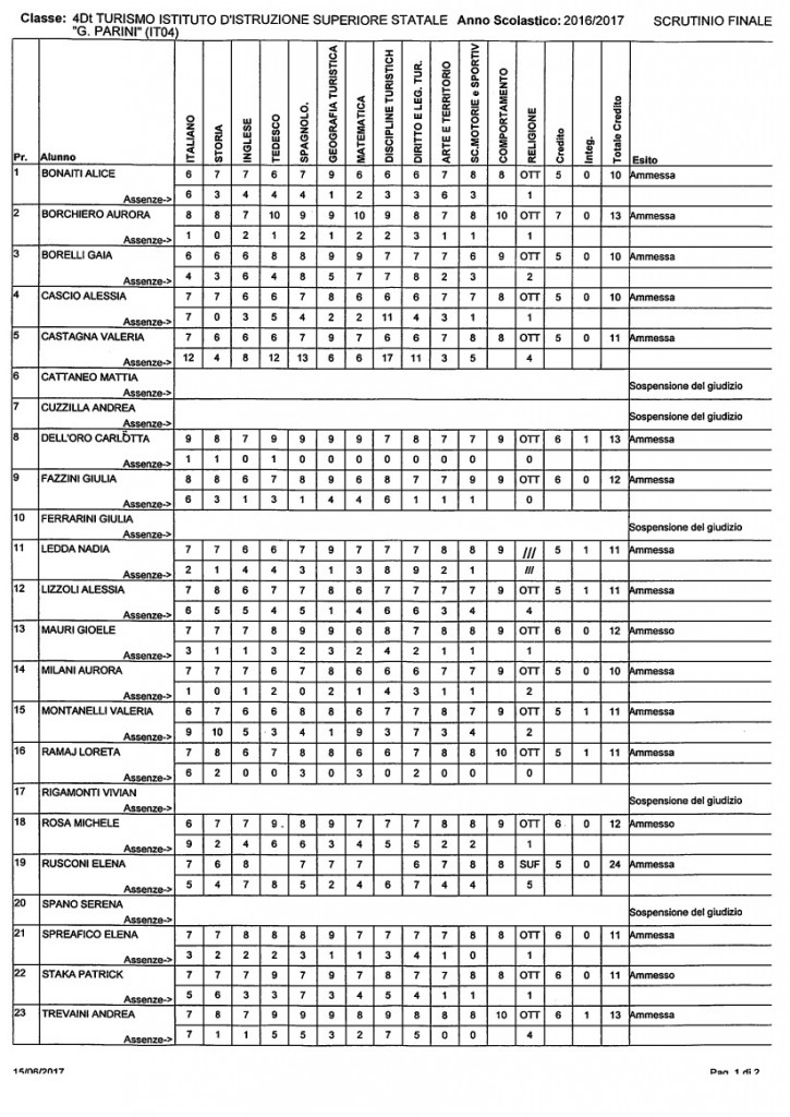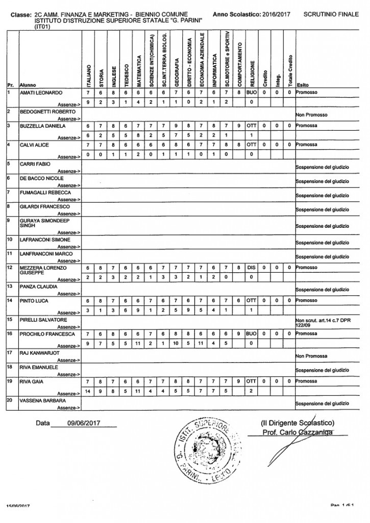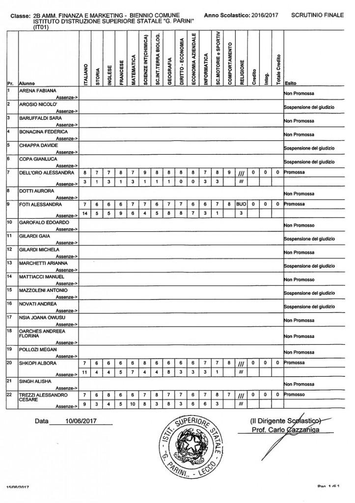 LECCO – Terminati gli scrutini anche all’Istituto Parini dove sono stati esposti tutti i quadri con i voti di fine anno. Li pubblichiamo di seguito: