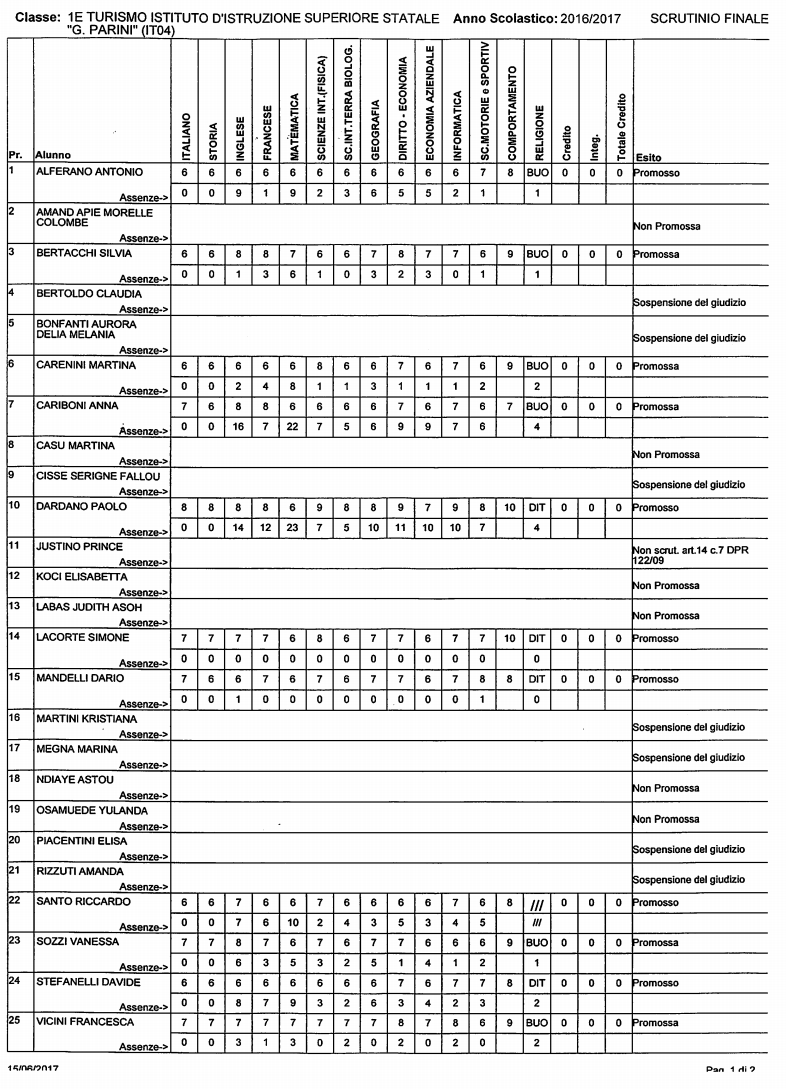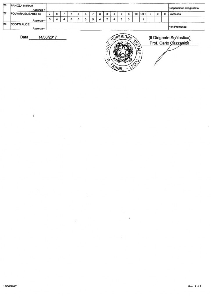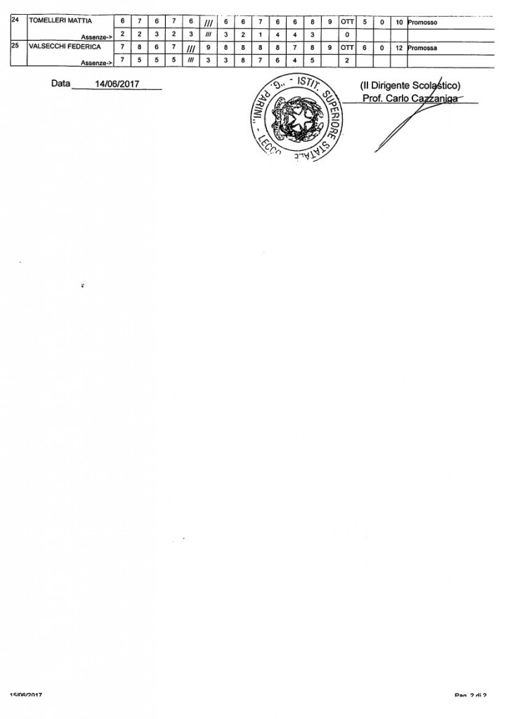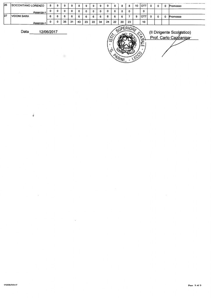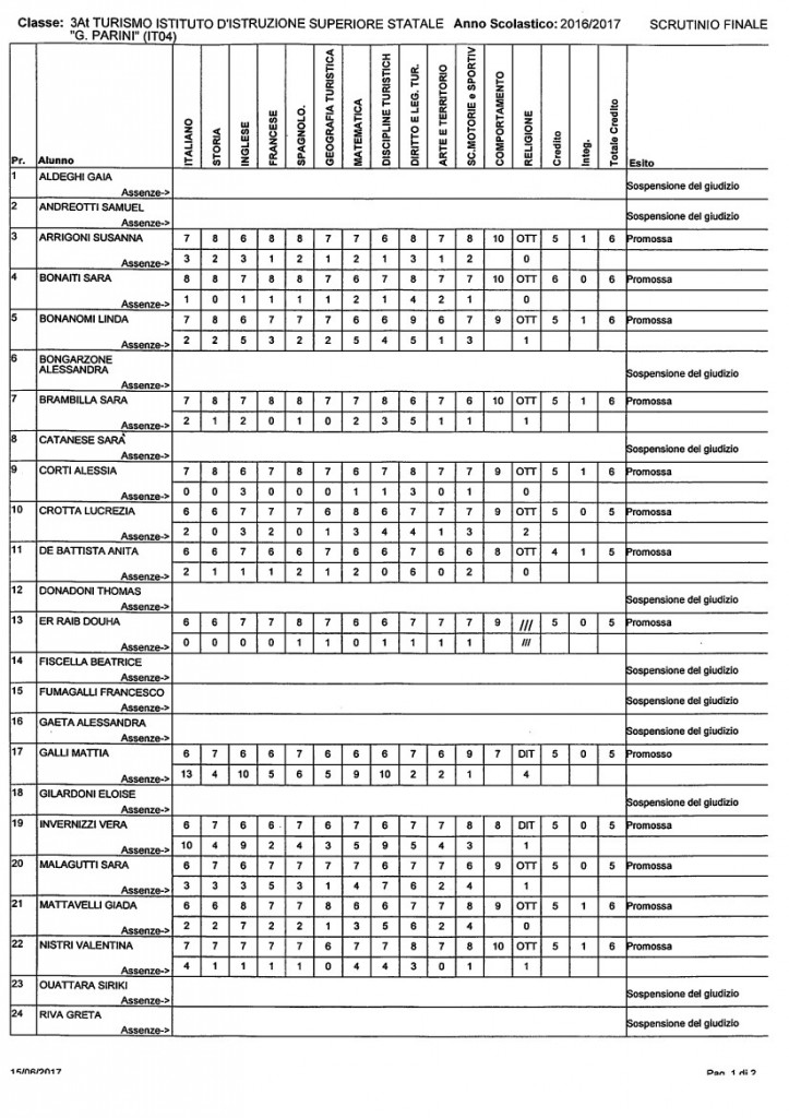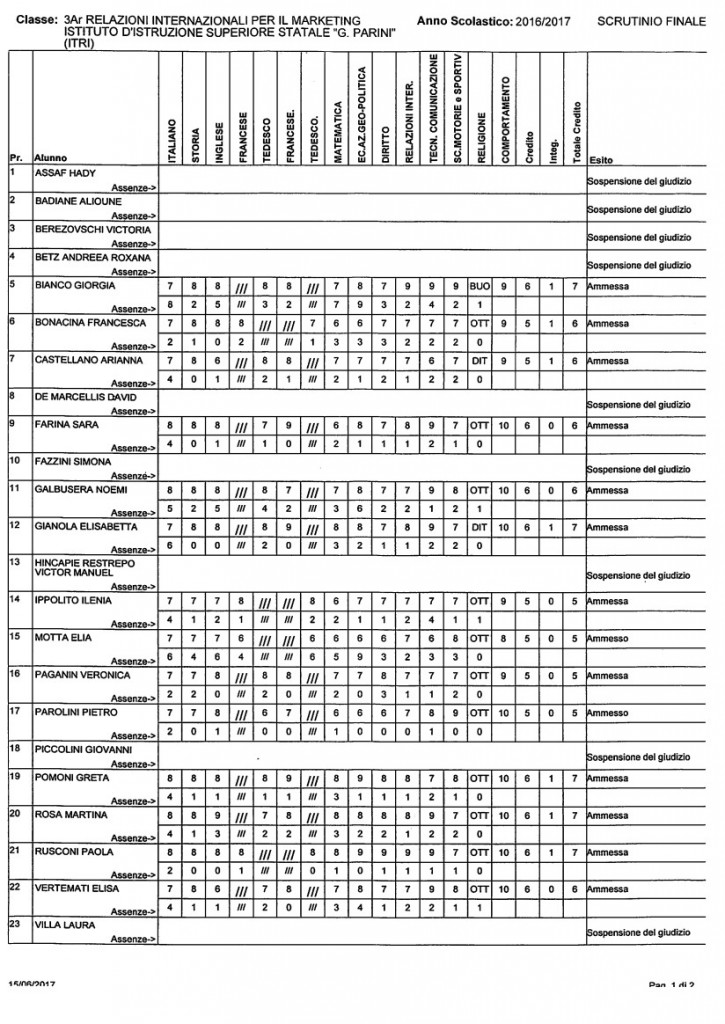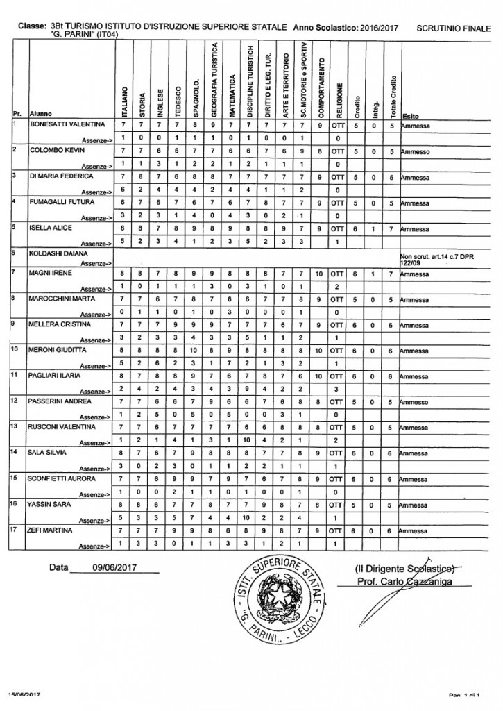 LECCO – Terminati gli scrutini anche all’Istituto Parini dove sono stati esposti tutti i quadri con i voti di fine anno. Li pubblichiamo di seguito: