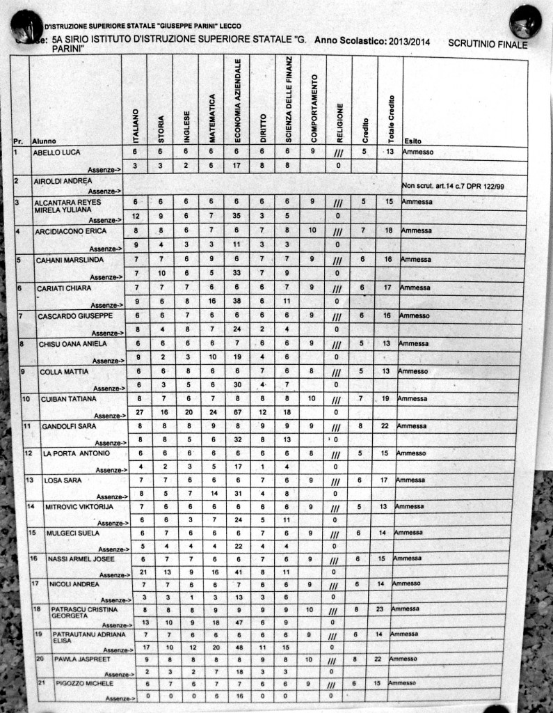 Lo studio per loro però non è terminato affatto, perché il 18 giugno inizieranno gli esami di maturità. Ecco quindi la lista degli ammessi e non ammessi, nei tabelloni esposti in questi giorni nell’istituto scolastico: