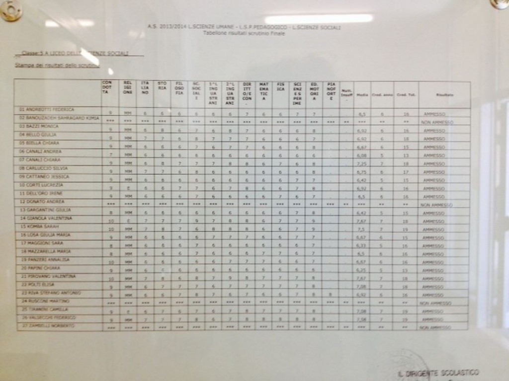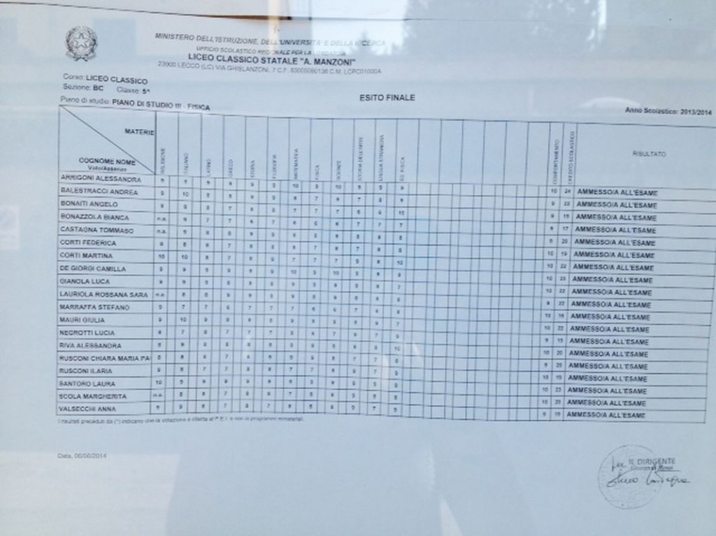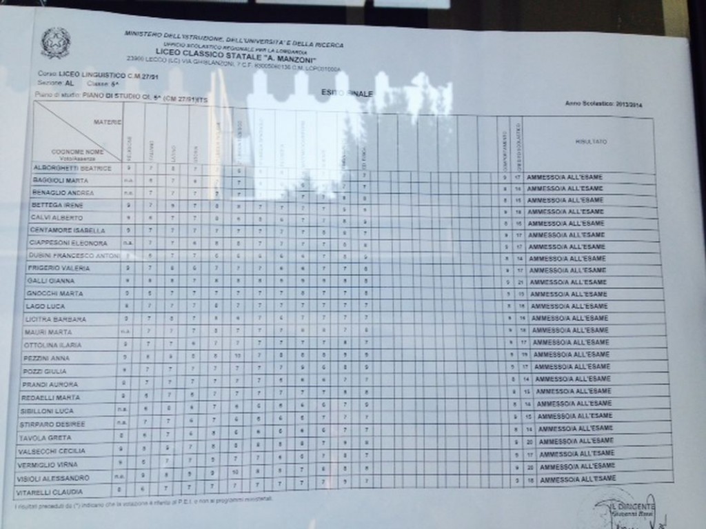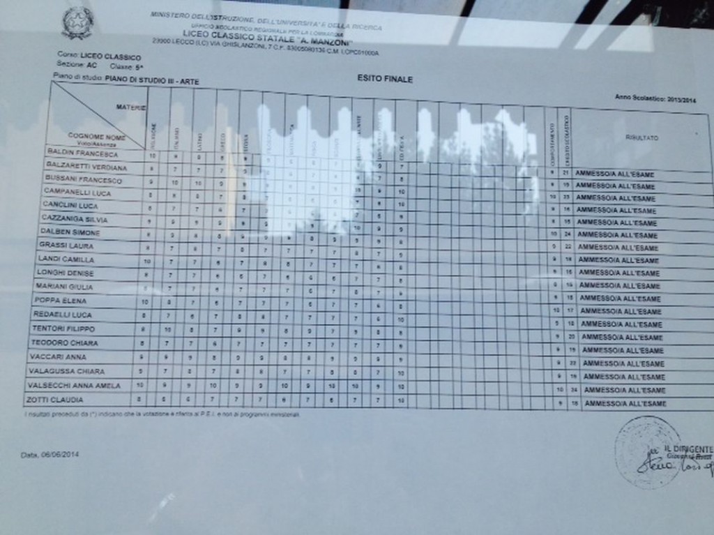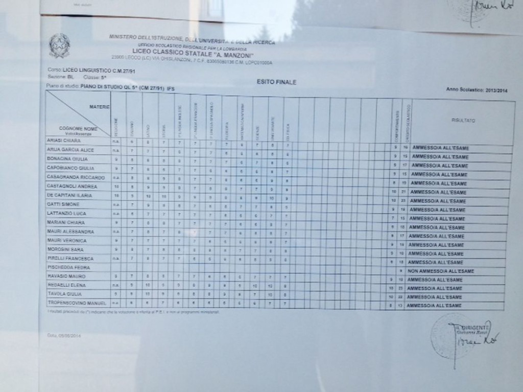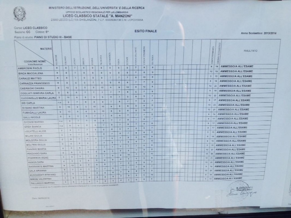 Pubblichiamo di seguito i voti degli studenti liceali ammessi all’Esame di Maturità 2014 dei Licei: Classico A. Manzoni, Linguistico, Artistico Medardo Rosso, Scientifico G.B. Grassi e Istituto G.Bertacchi. Cliccando sulla classe comparirà il relativo quadro: