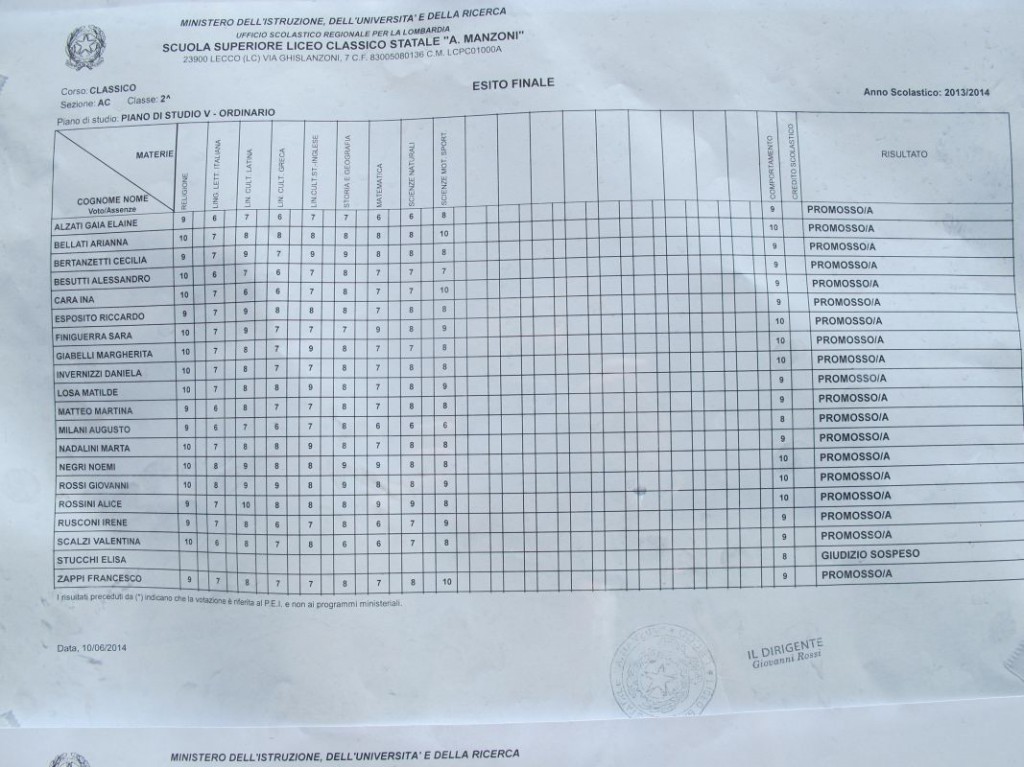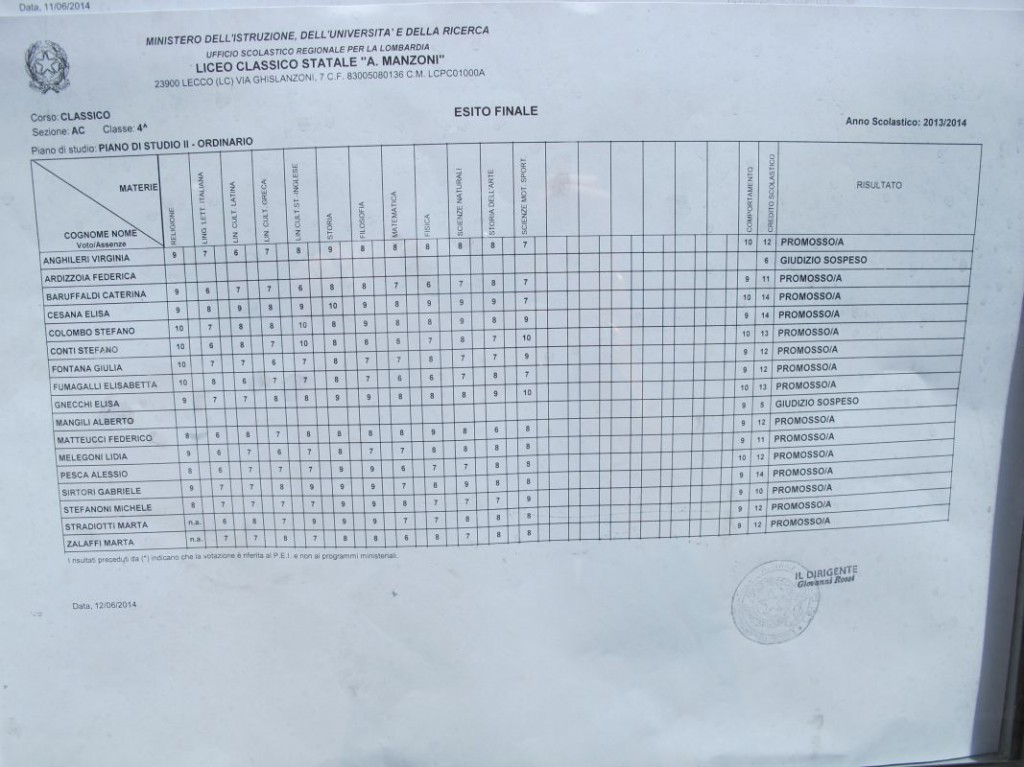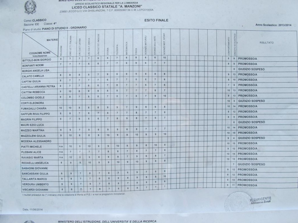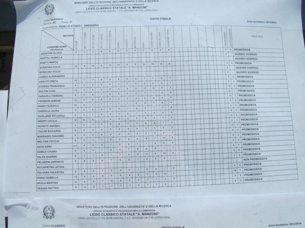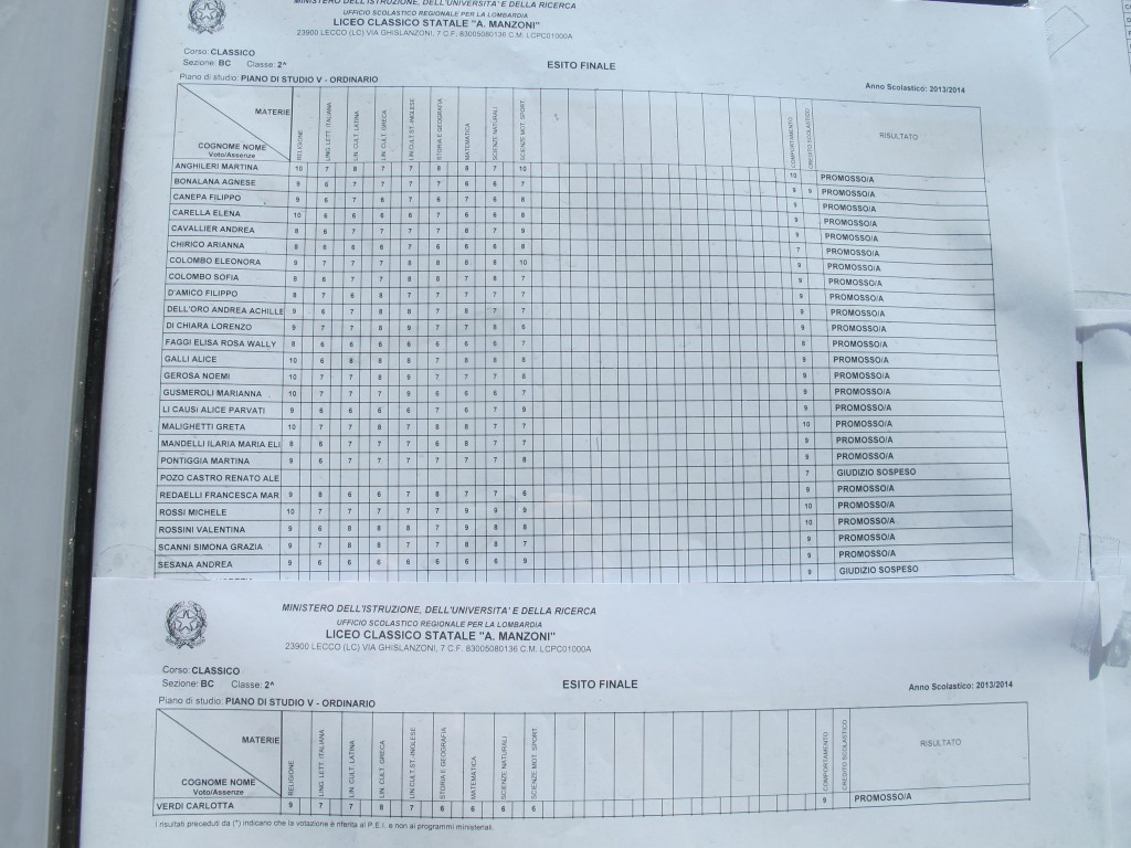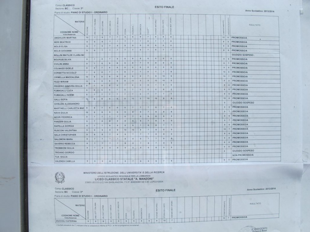 LECCO – Pubblicati in mattinata gli esiti di fine anno degli studenti lecchesi del Liceo Classico A.Manzoni e del Liceo Linguistico, questi ultimi non senza imprevisti: sbagliati infatti i tabelloni pubblicati presso l’Istituto G. Bertacchi, per quello che è sembrato essere un errore ministeriale, fa sapere il personale didattico. Di seguito i quadri, visualizzabili con un click sulla classe di interesse.
