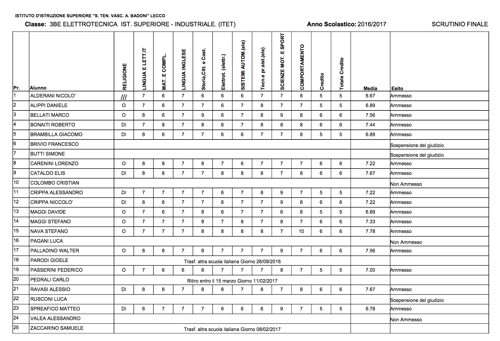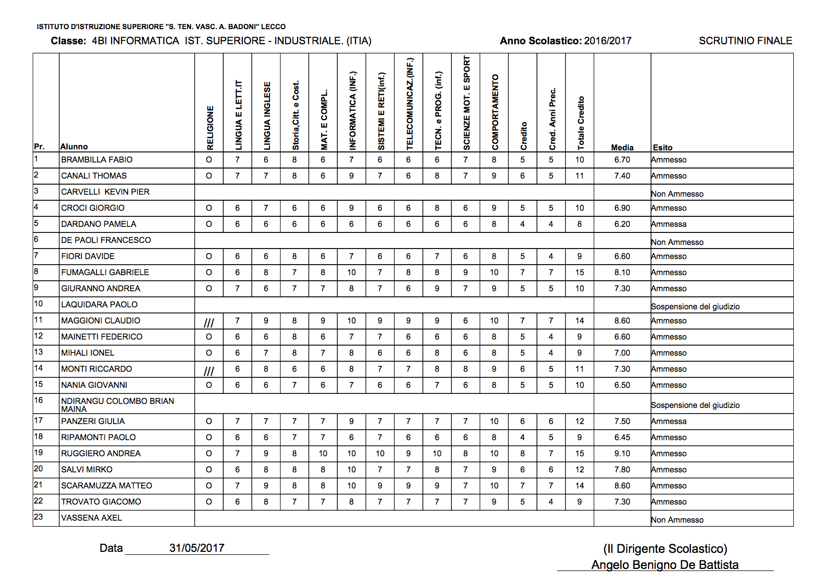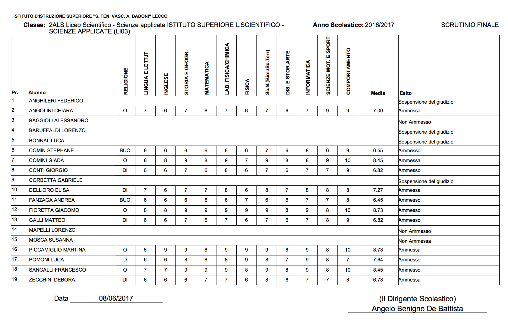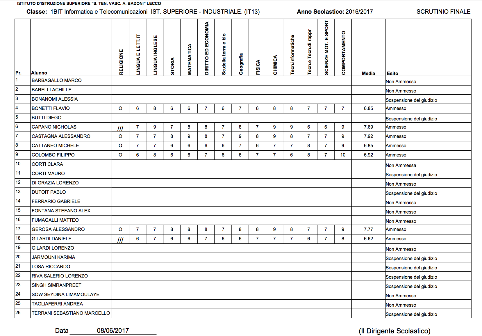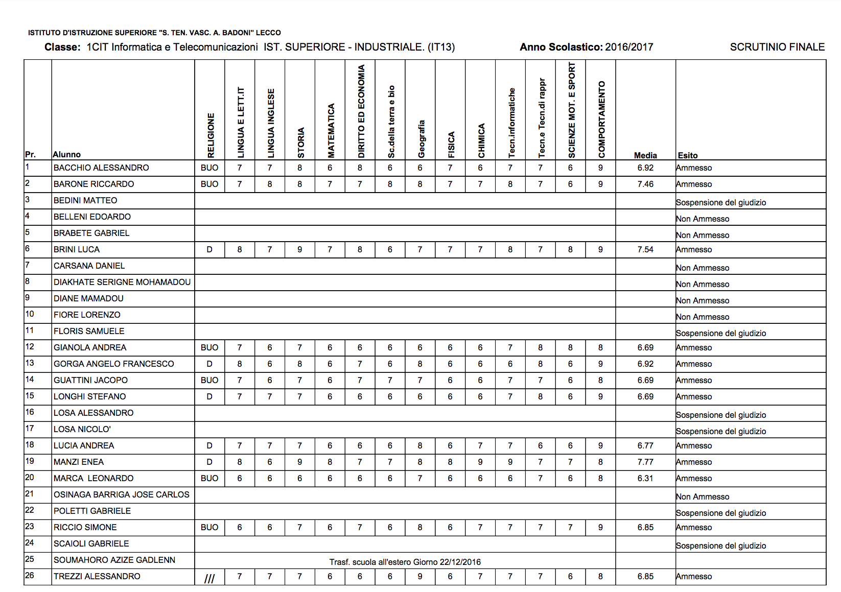 LECCO – Già pubblicati online i tabelloni con gli esiti degli scrutini dell’anno scolastico 2016/2017 per gli studenti dell’Istituto Badoni.