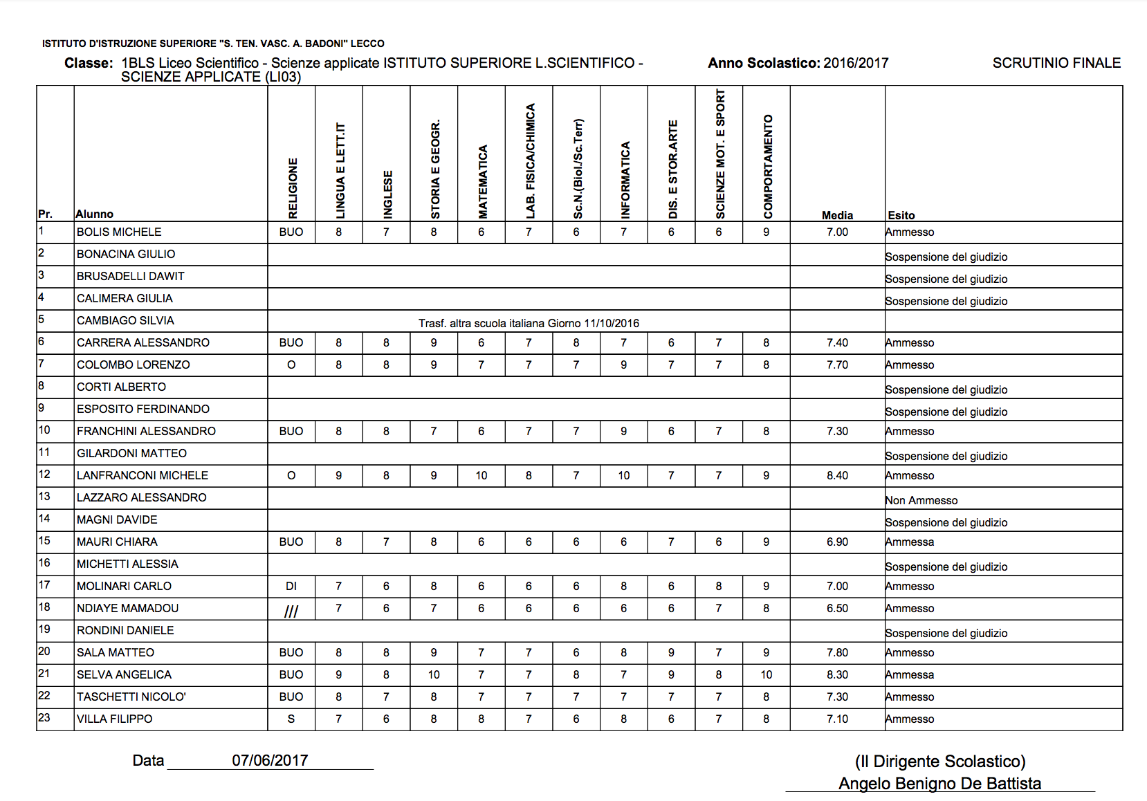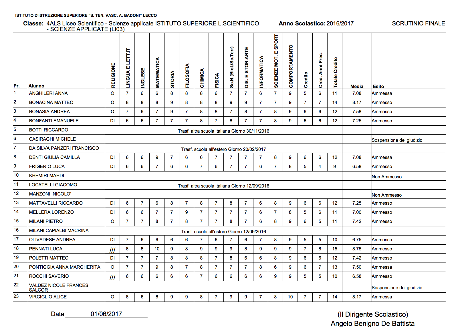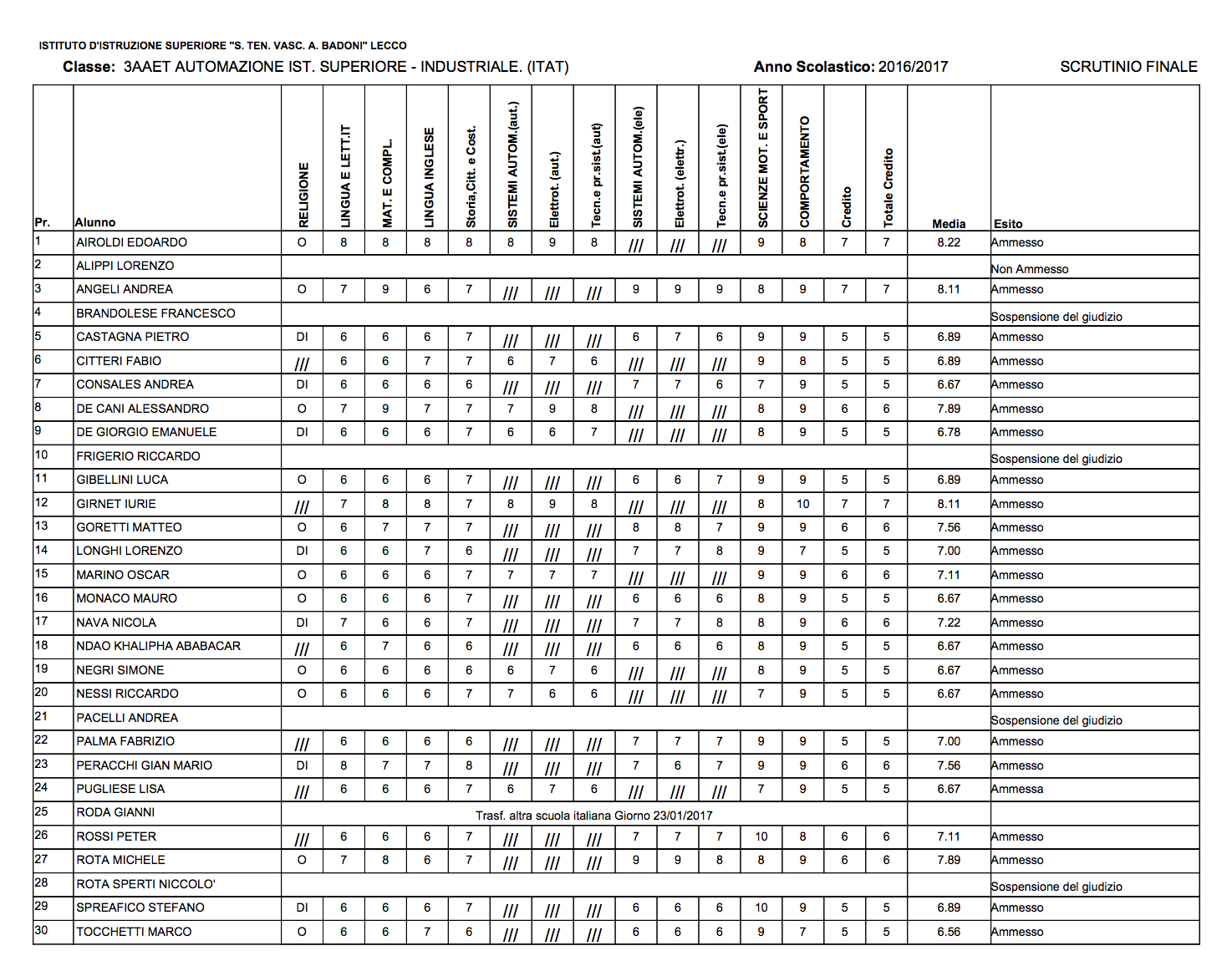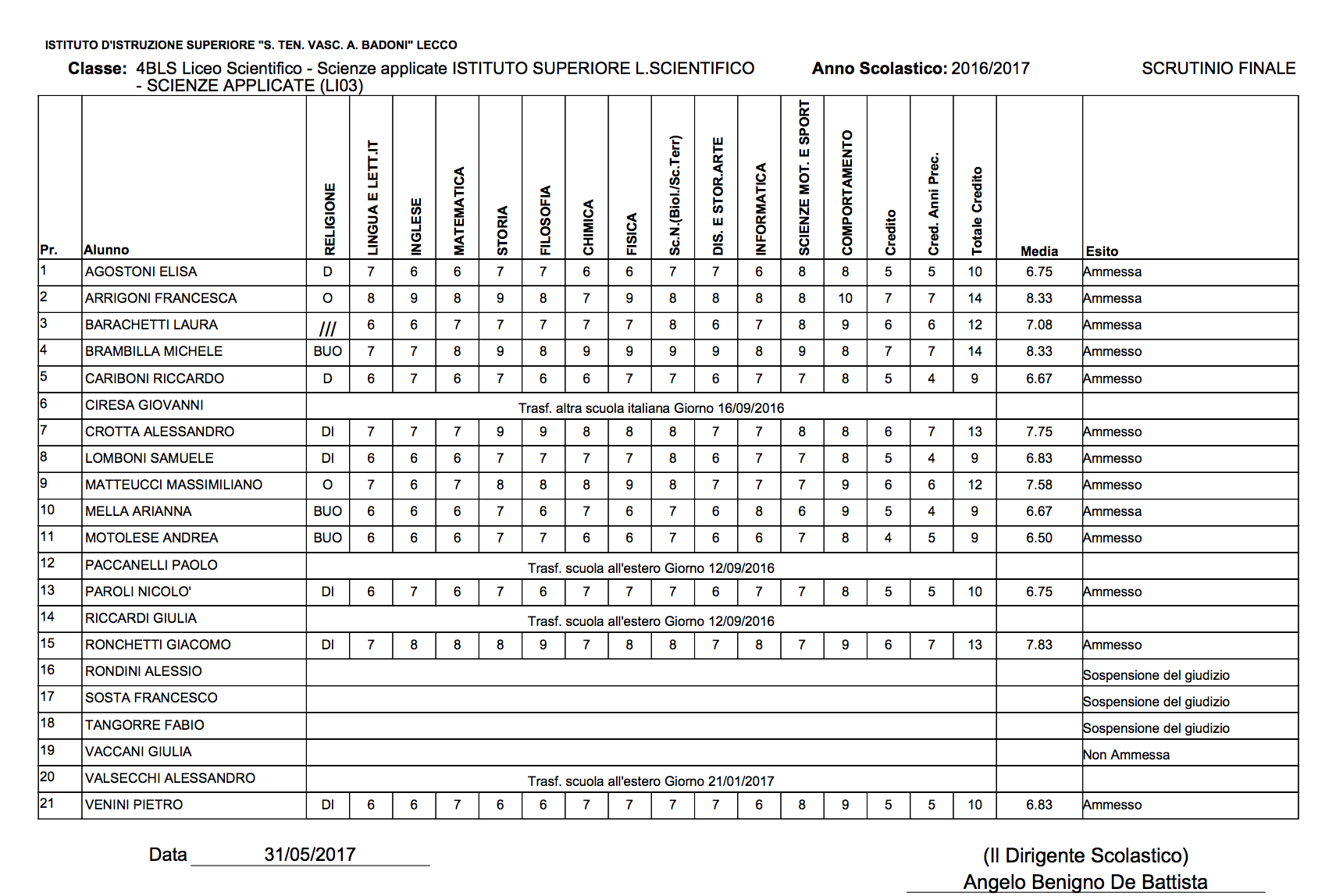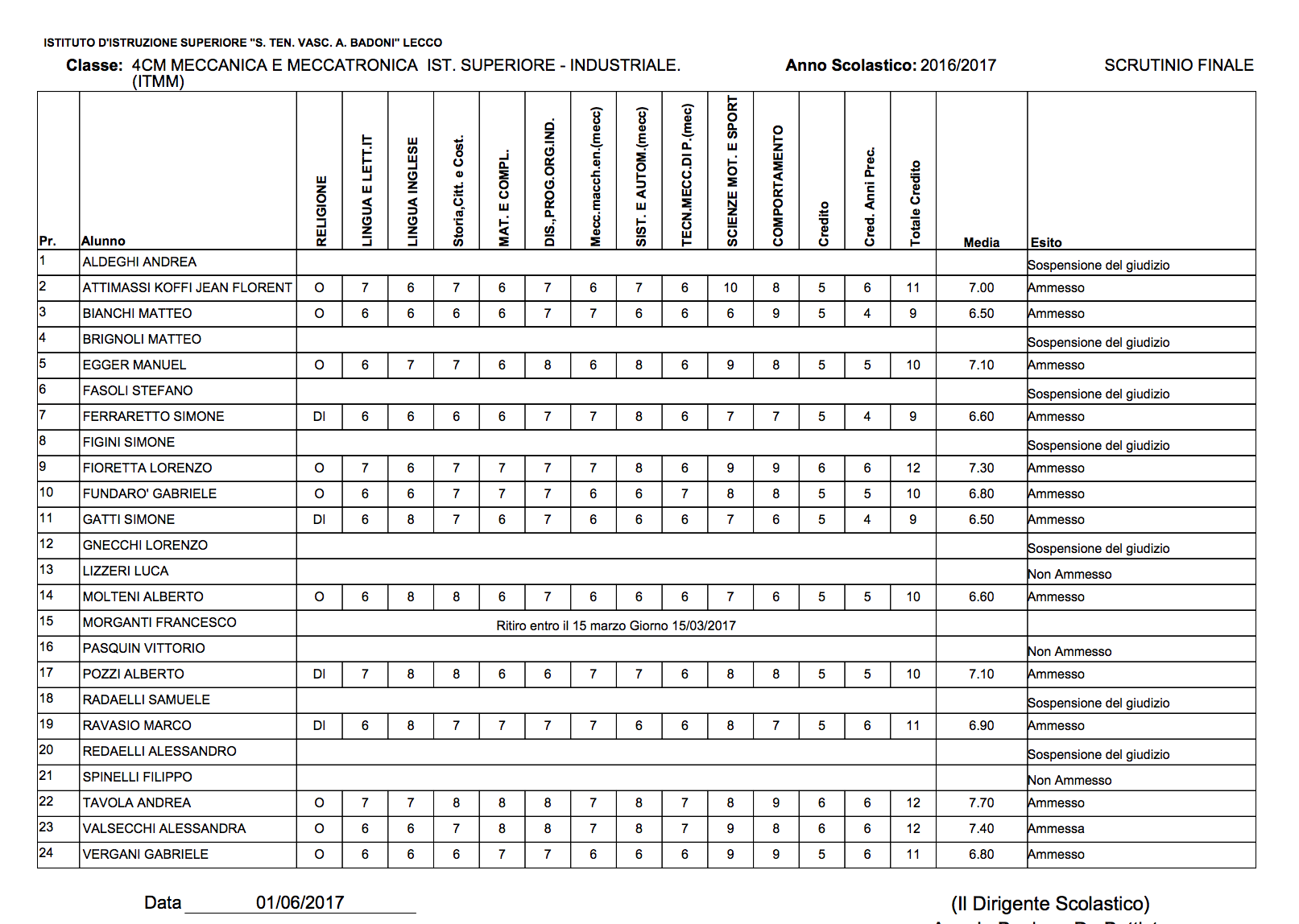 LECCO – Già pubblicati online i tabelloni con gli esiti degli scrutini dell’anno scolastico 2016/2017 per gli studenti dell’Istituto Badoni.