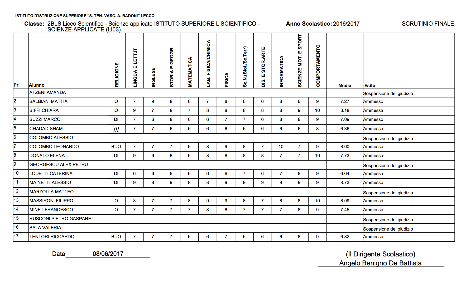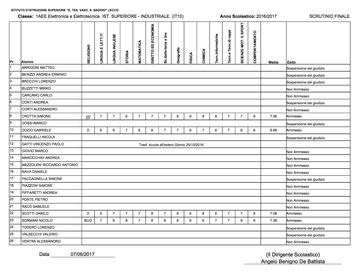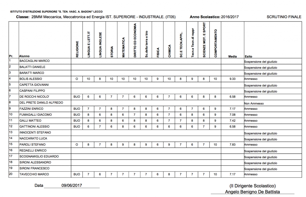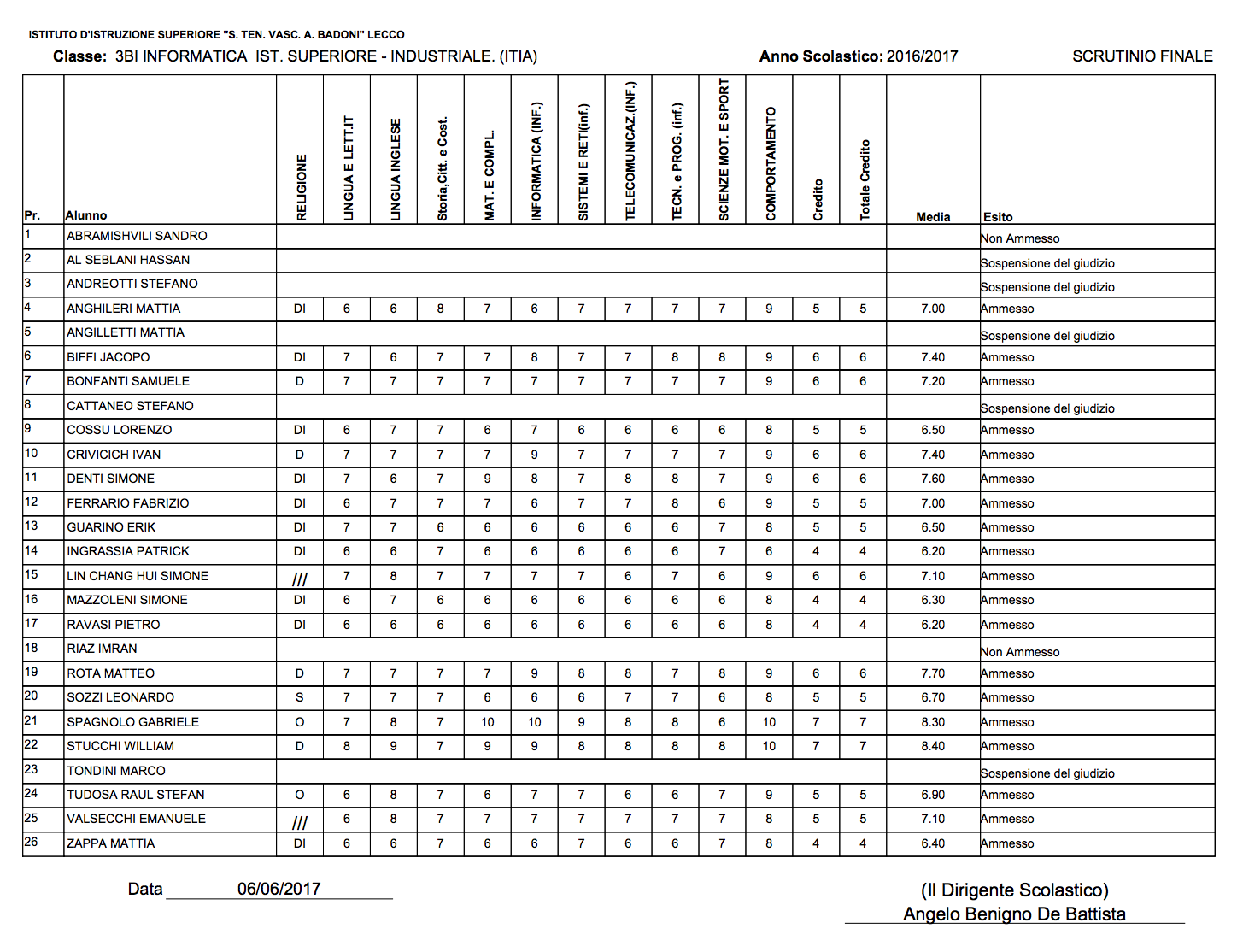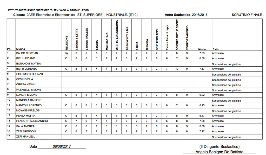 LECCO – Già pubblicati online i tabelloni con gli esiti degli scrutini dell’anno scolastico 2016/2017 per gli studenti dell’Istituto Badoni.