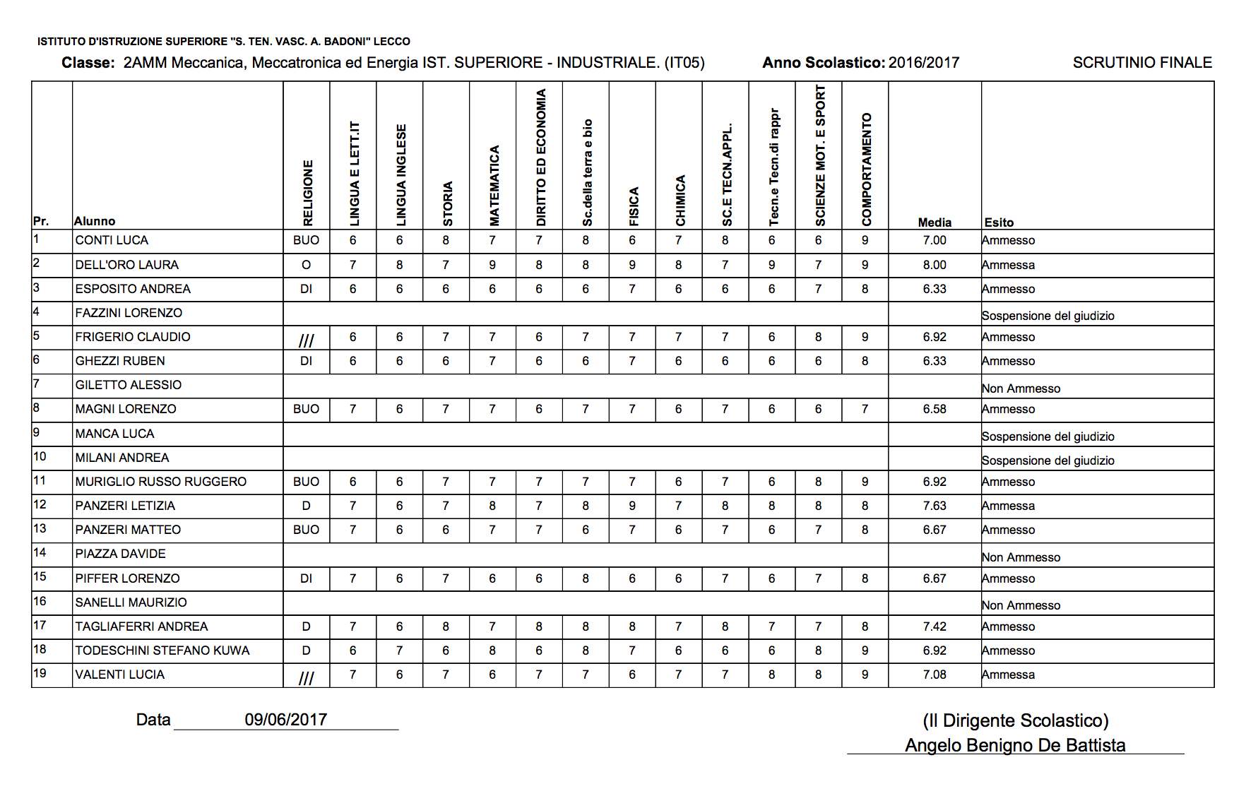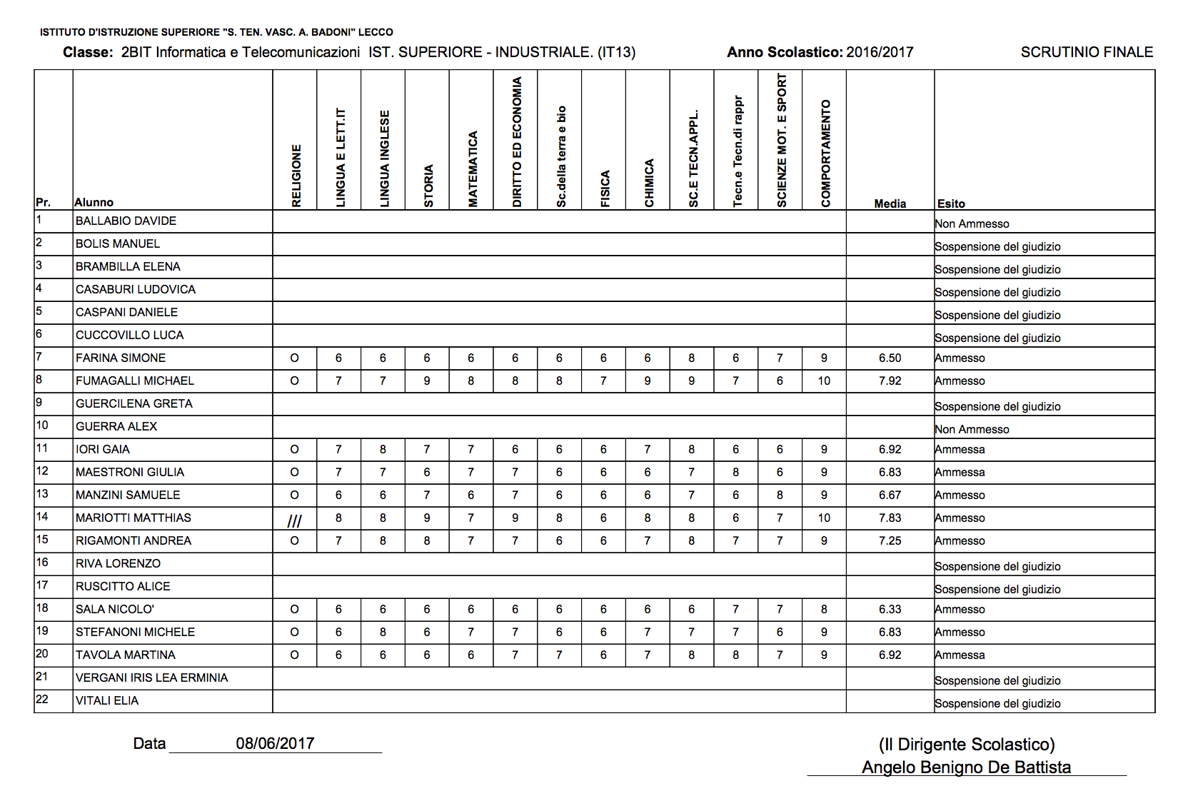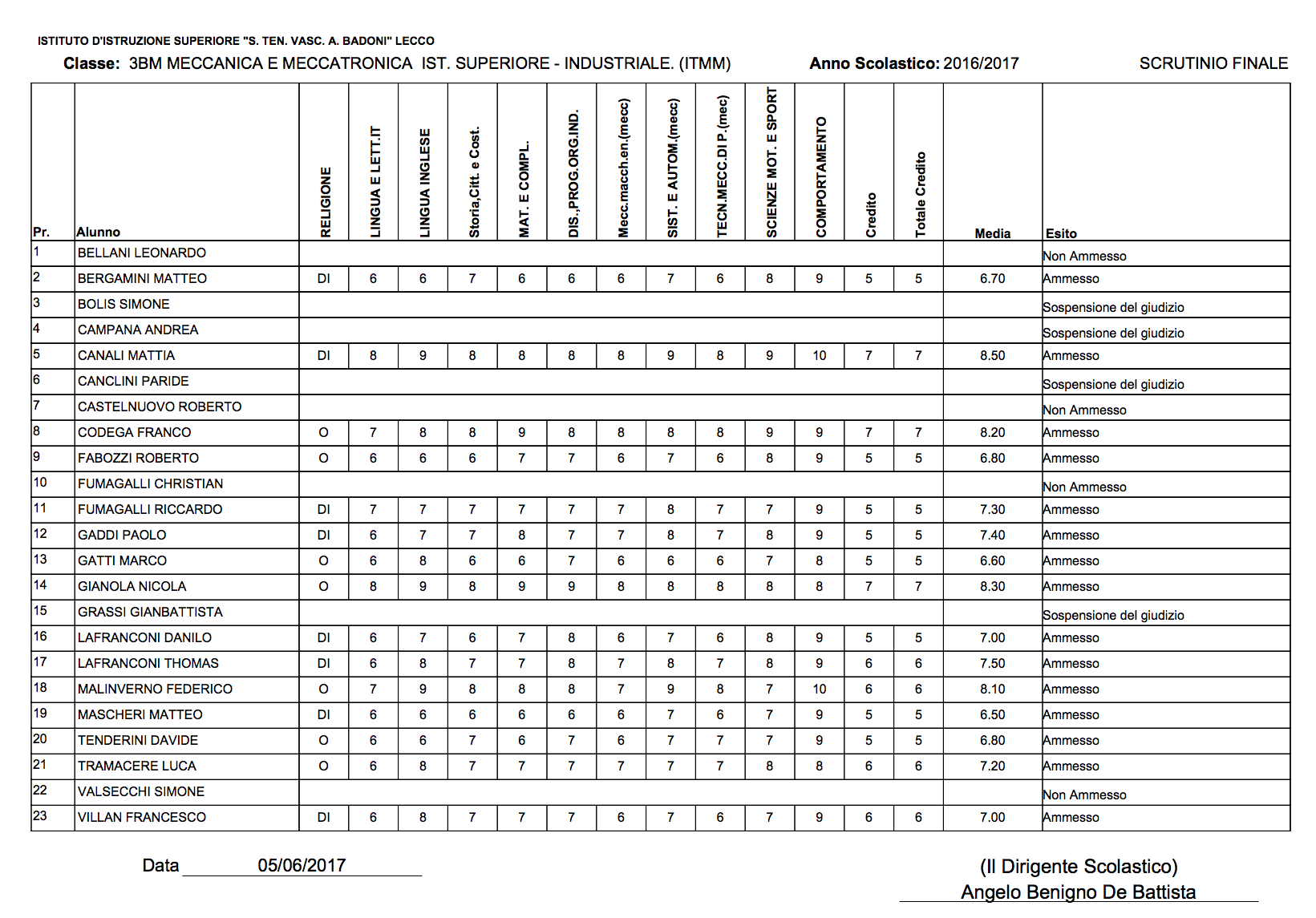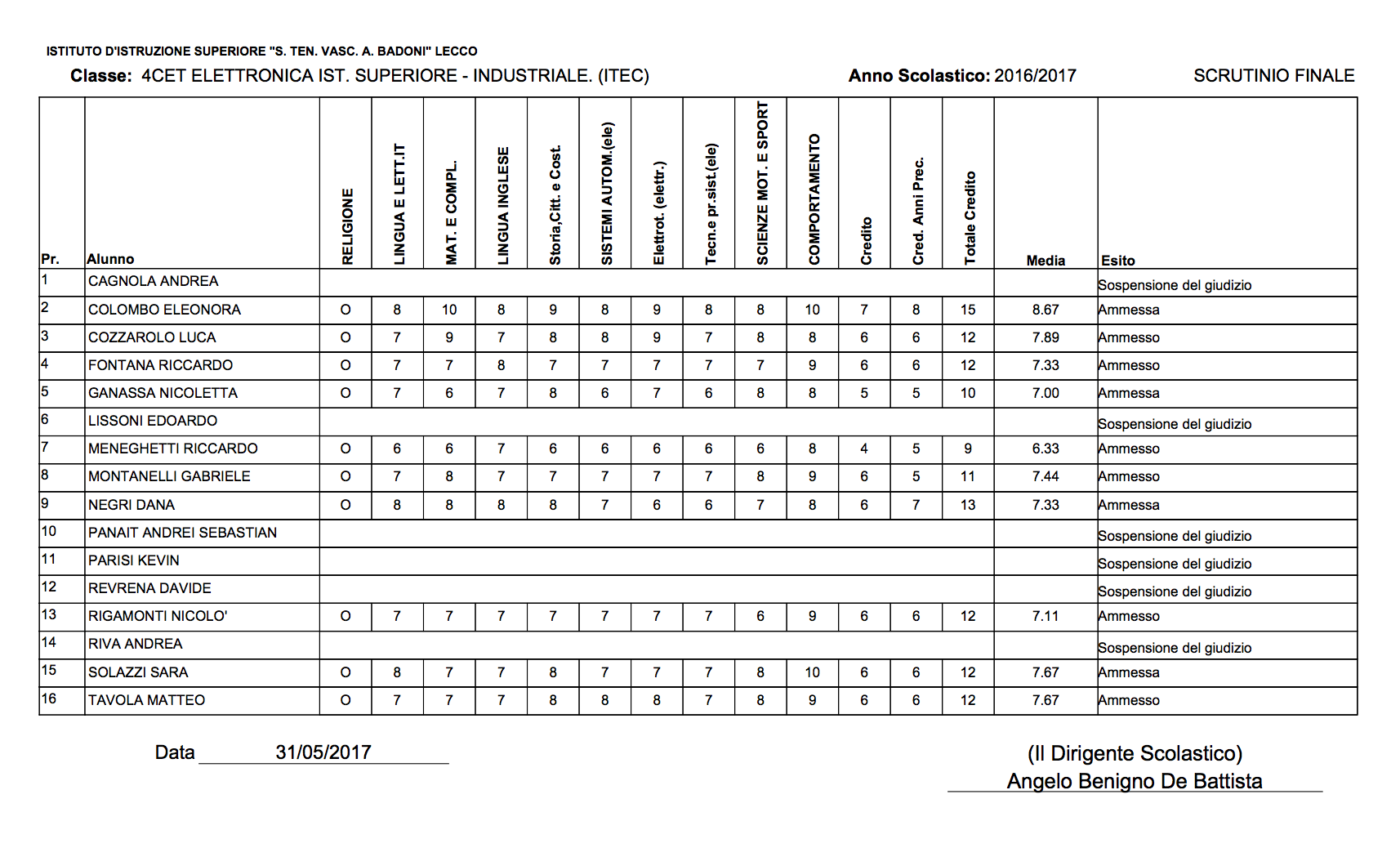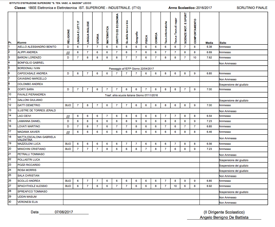 LECCO – Già pubblicati online i tabelloni con gli esiti degli scrutini dell’anno scolastico 2016/2017 per gli studenti dell’Istituto Badoni.