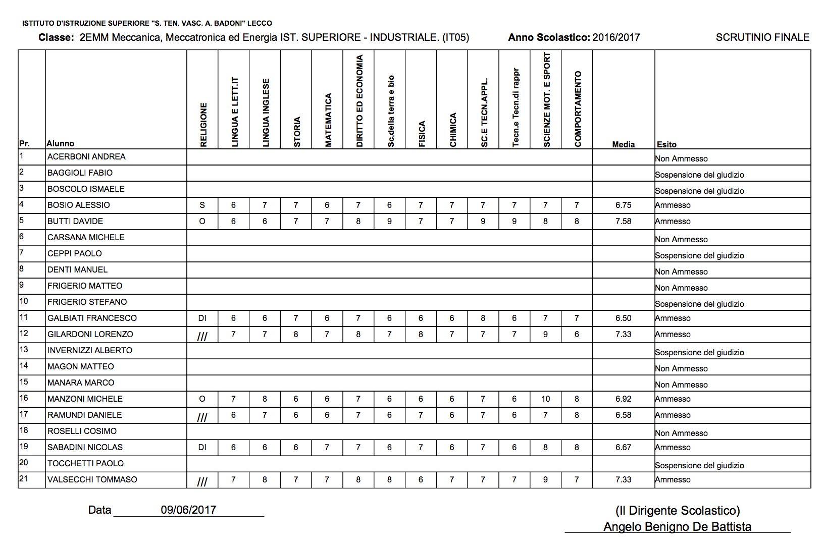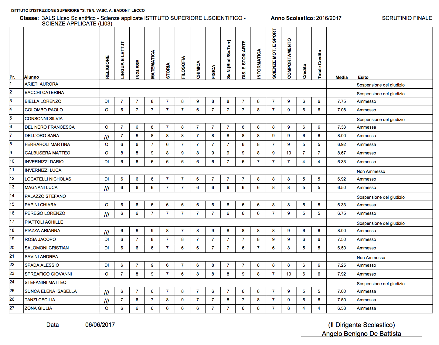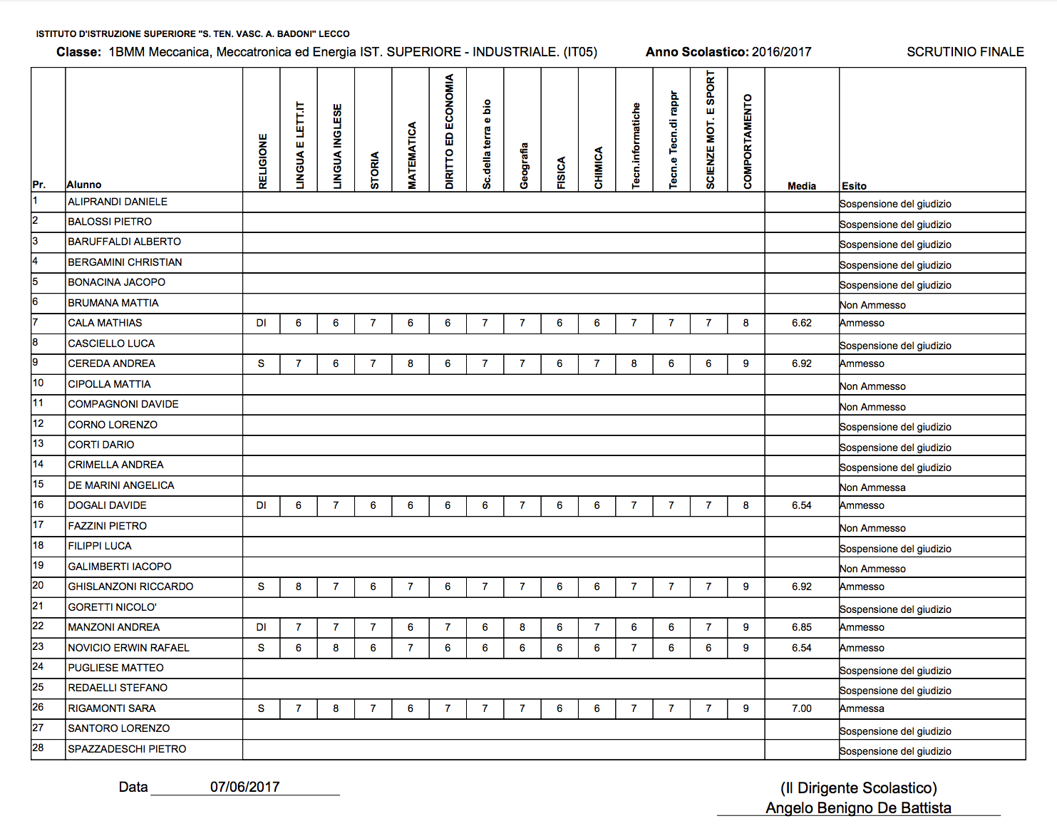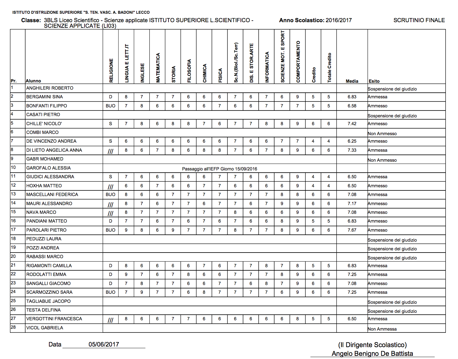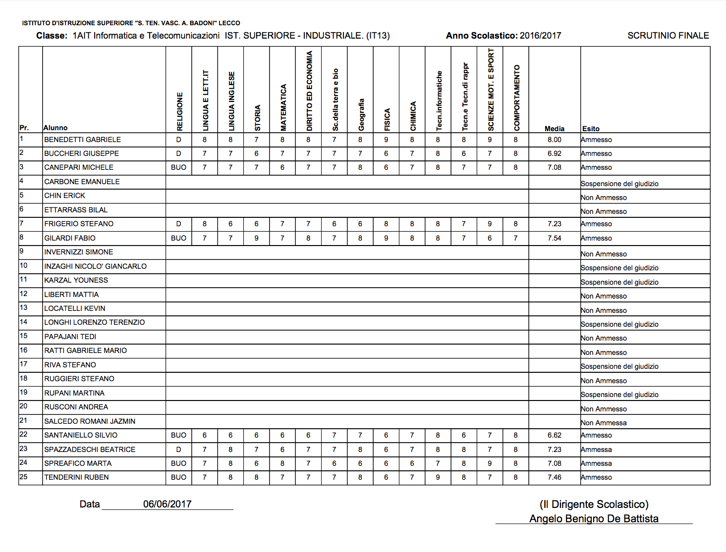 LECCO – Già pubblicati online i tabelloni con gli esiti degli scrutini dell’anno scolastico 2016/2017 per gli studenti dell’Istituto Badoni.