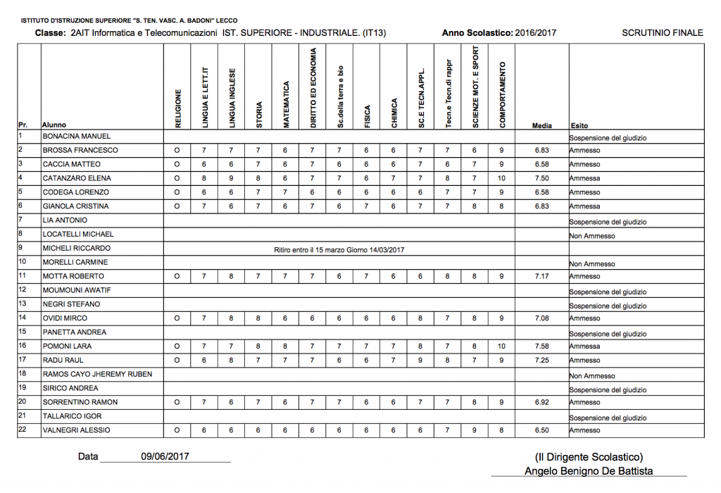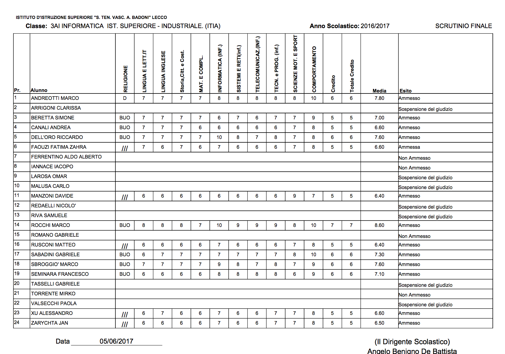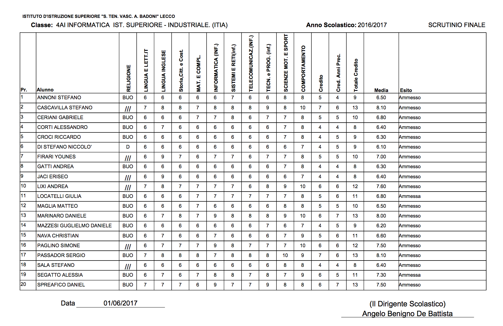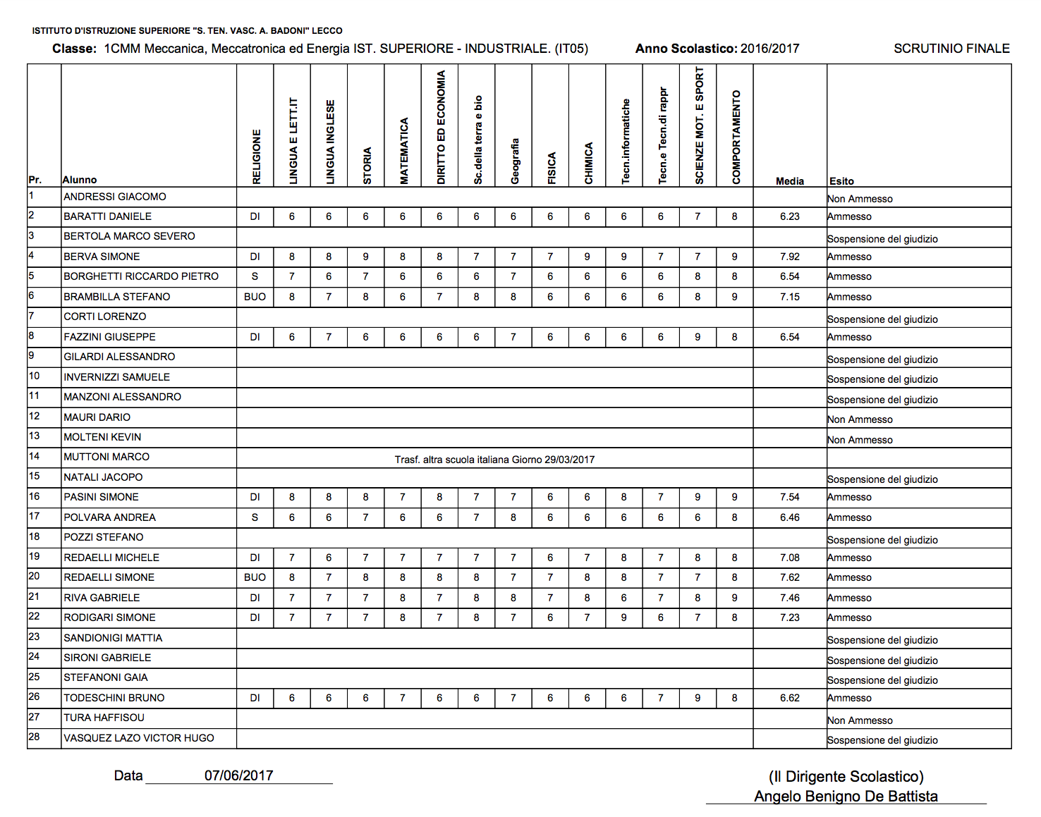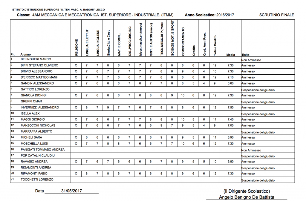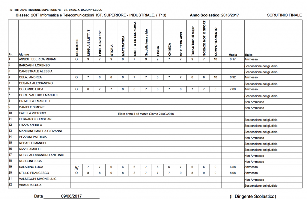LECCO – Già pubblicati online i tabelloni con gli esiti degli scrutini dell’anno scolastico 2016/2017 per gli studenti dell’Istituto Badoni.
