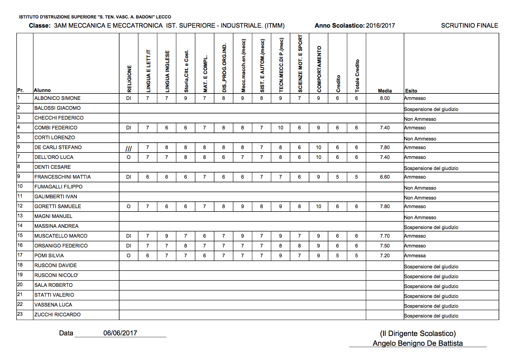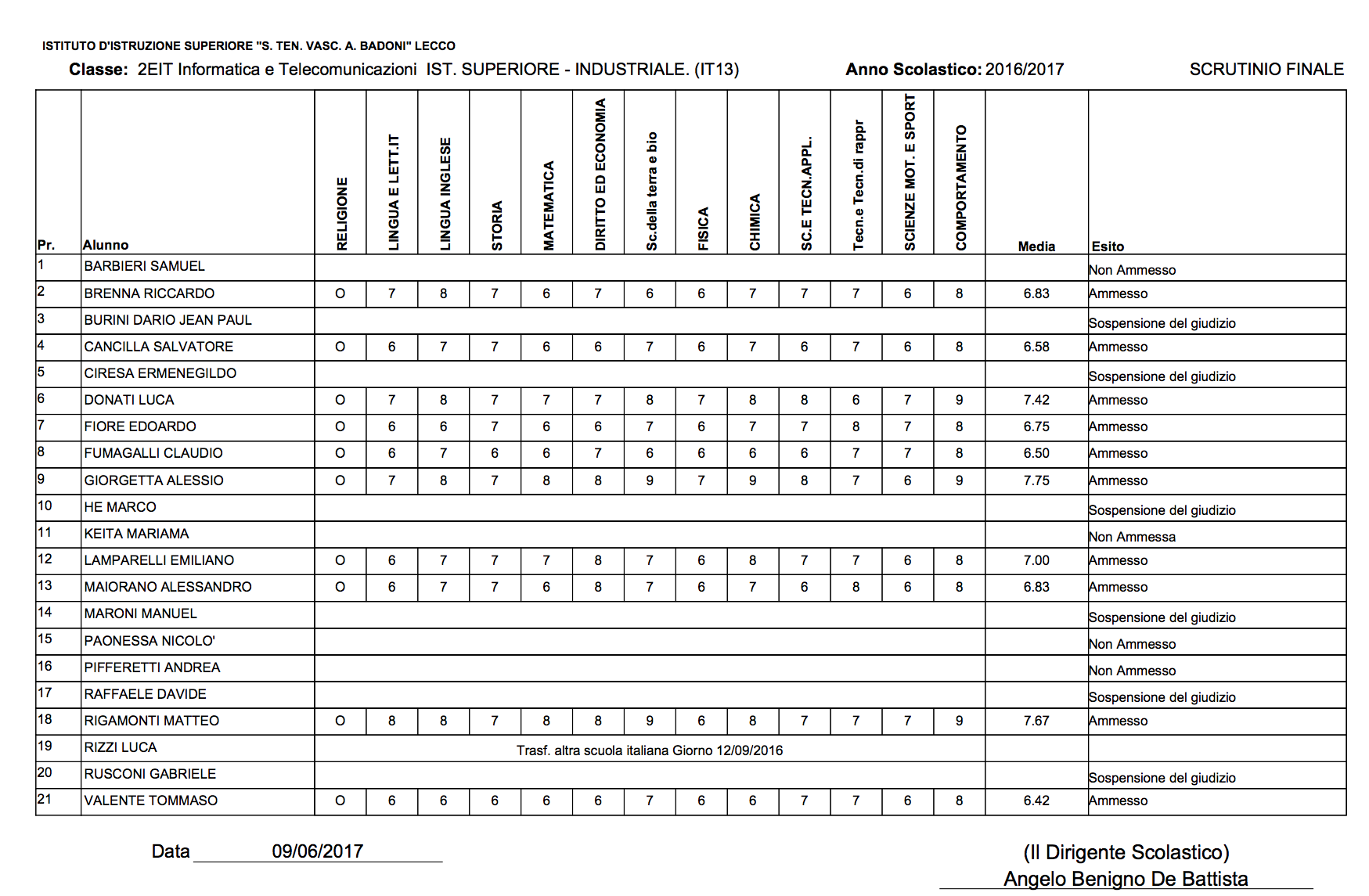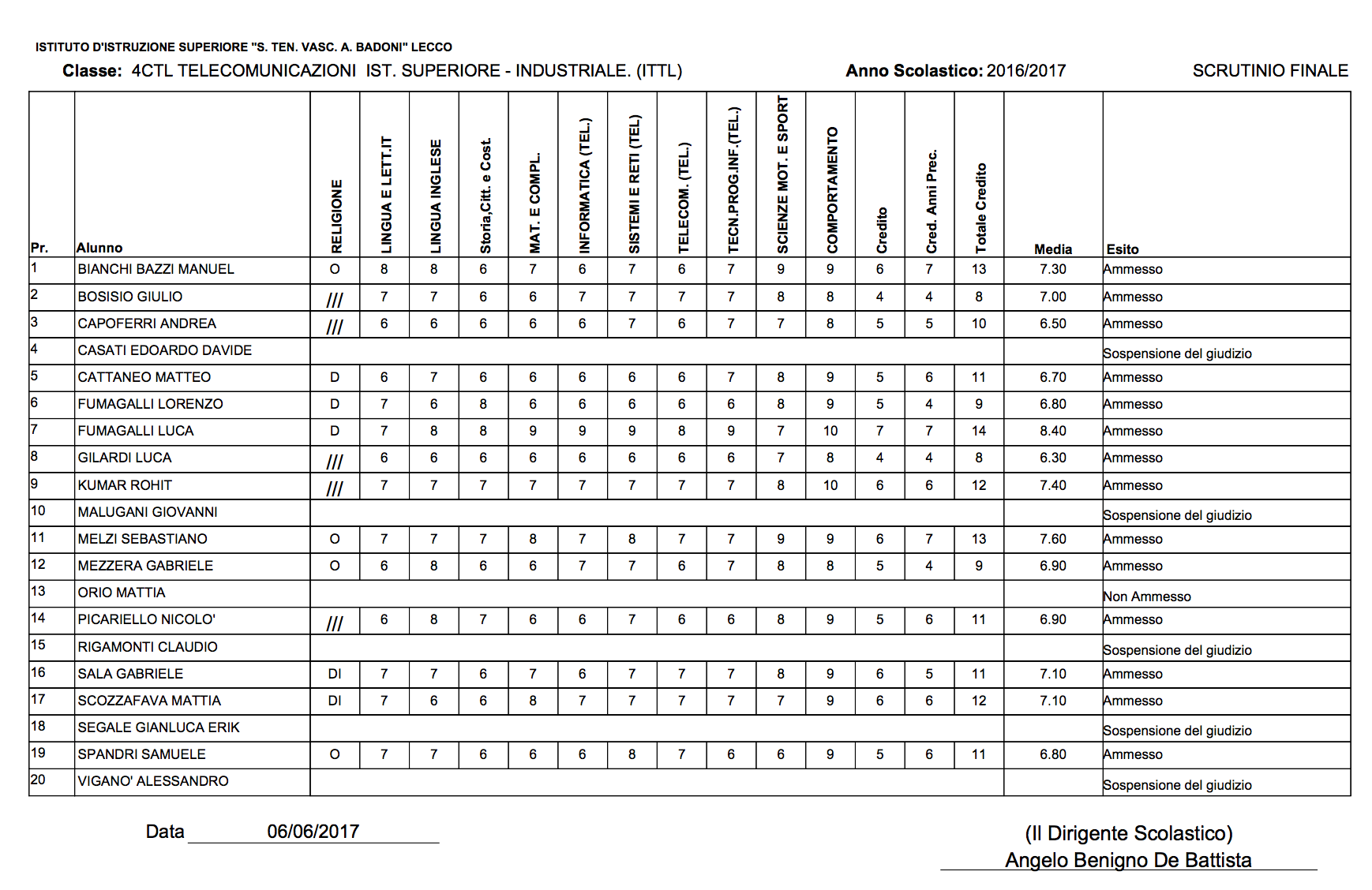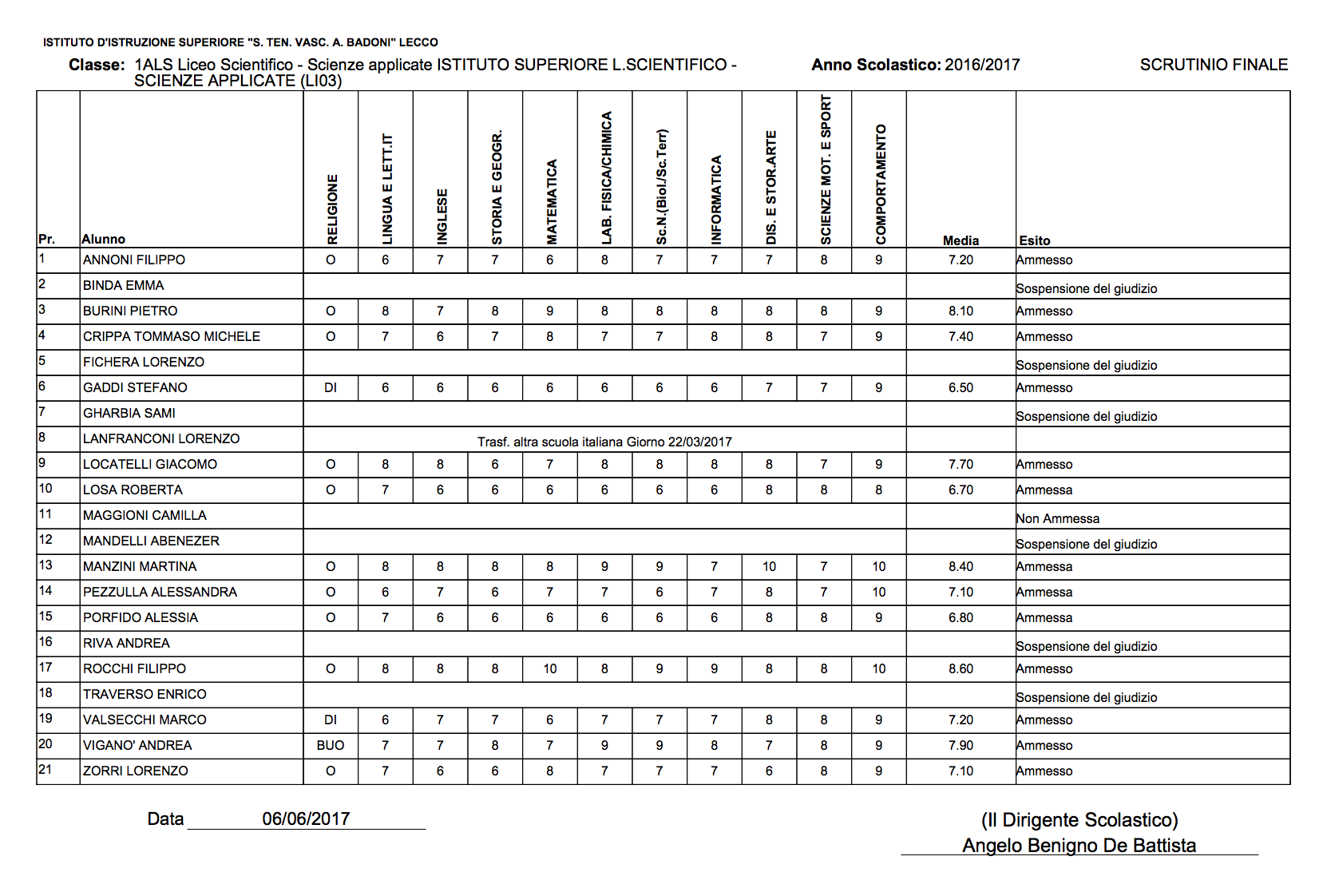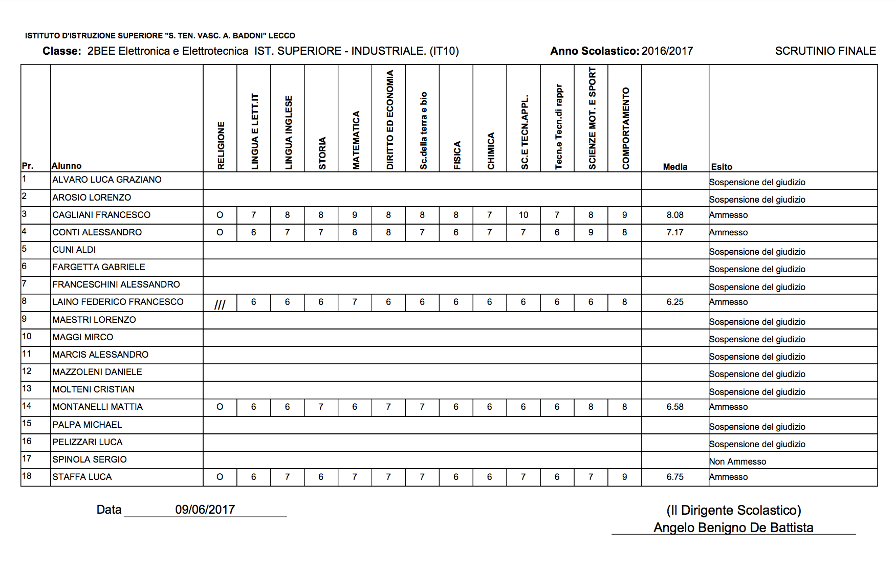LECCO – Già pubblicati online i tabelloni con gli esiti degli scrutini dell’anno scolastico 2016/2017 per gli studenti dell’Istituto Badoni.