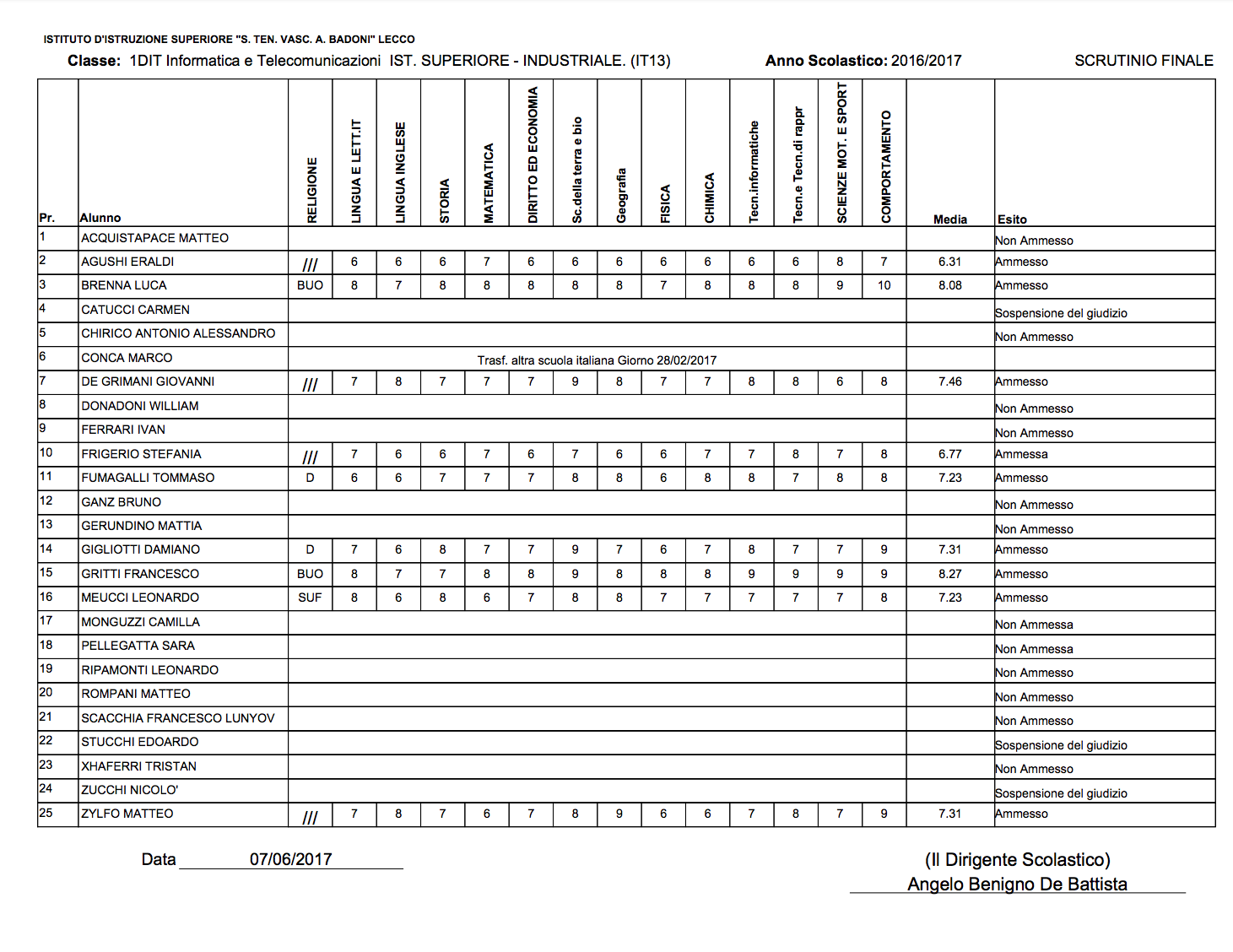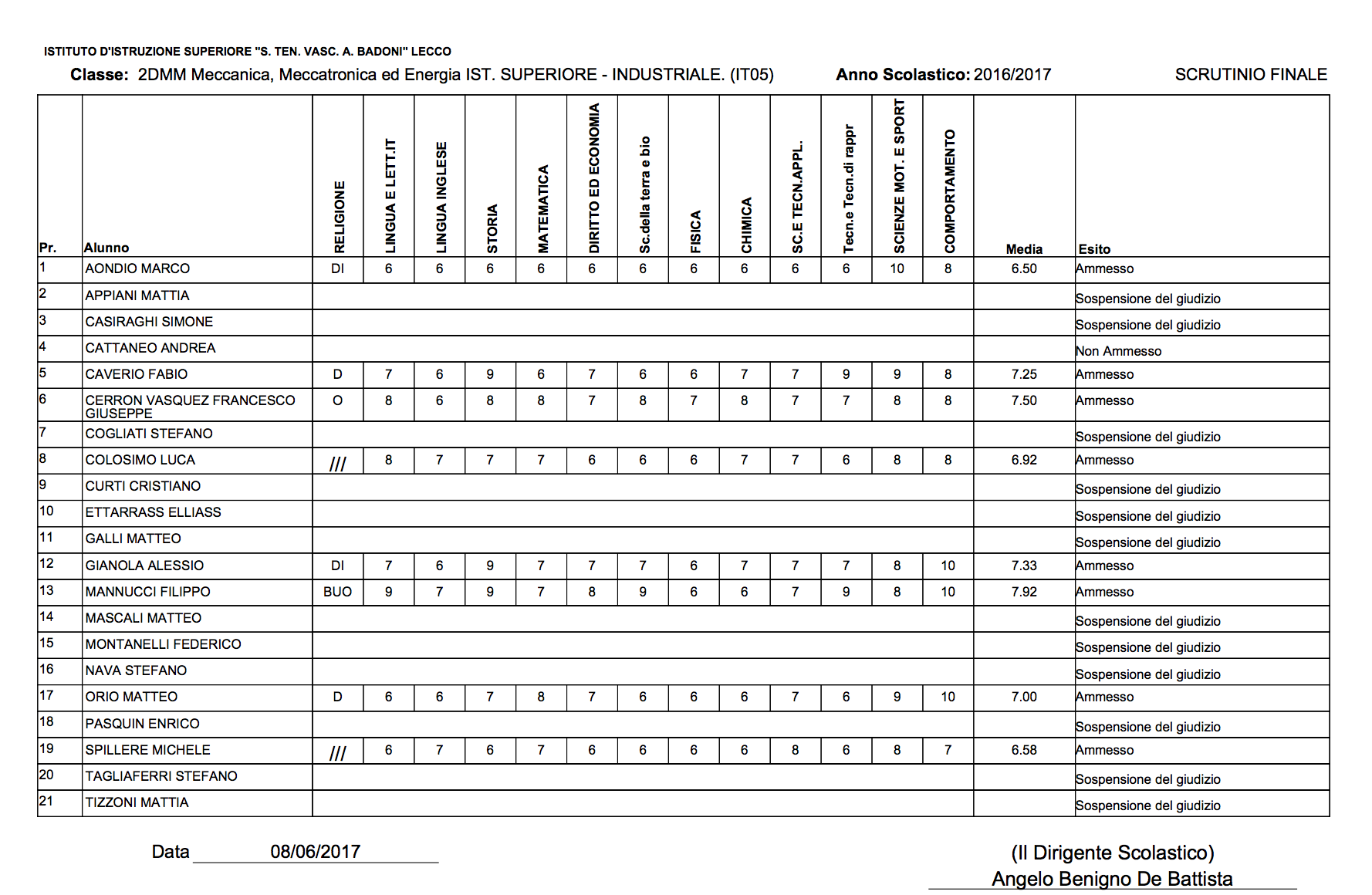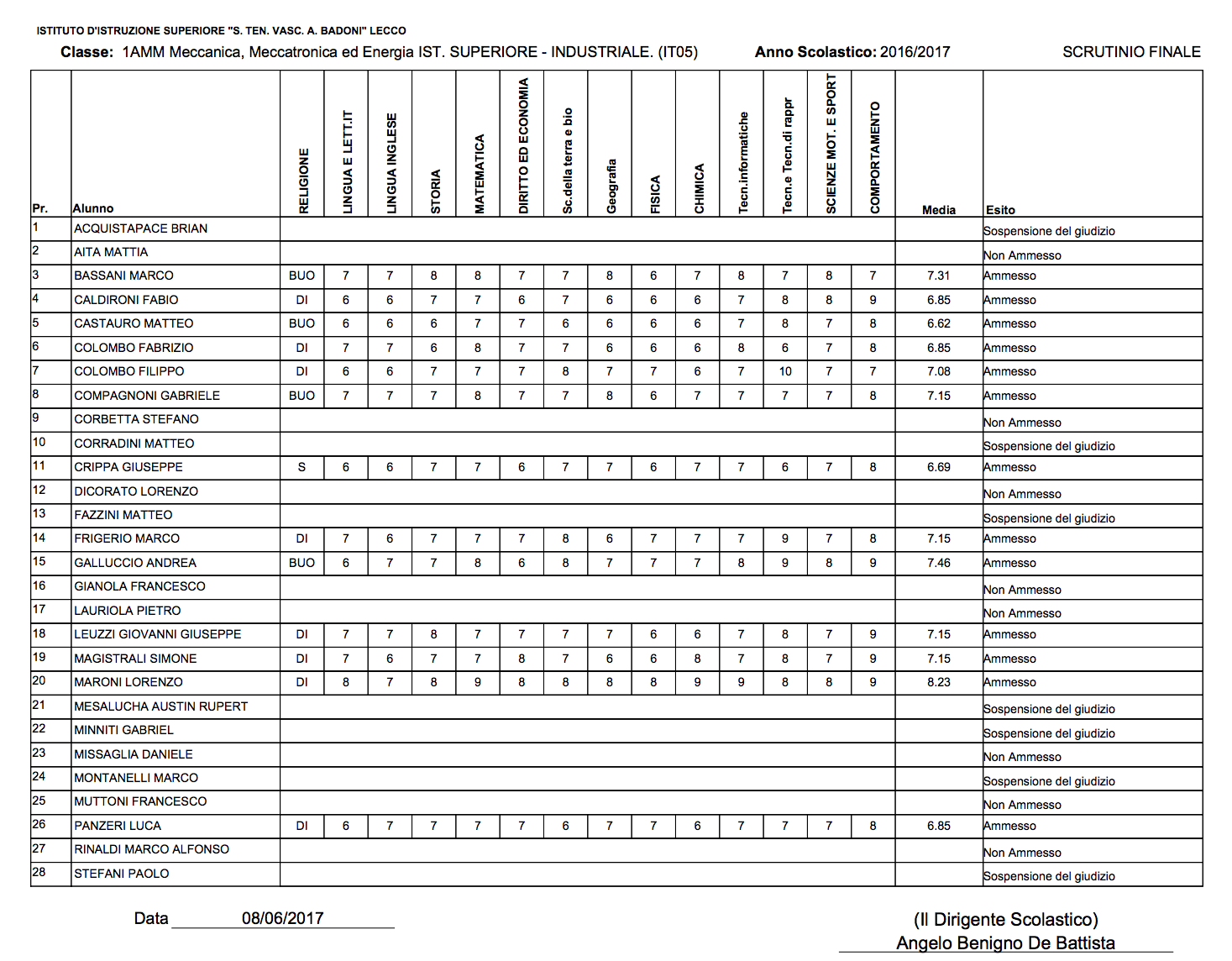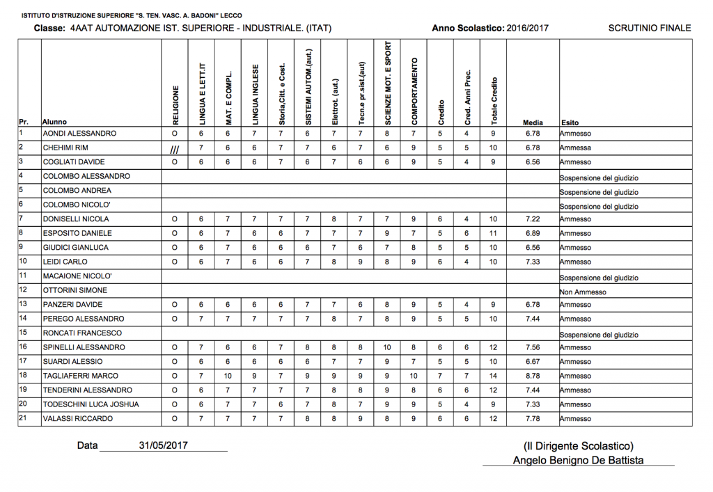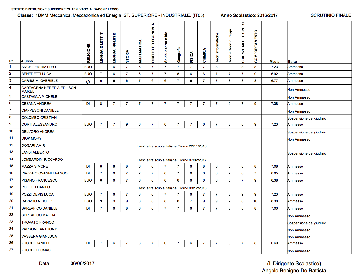 LECCO – Già pubblicati online i tabelloni con gli esiti degli scrutini dell’anno scolastico 2016/2017 per gli studenti dell’Istituto Badoni.
