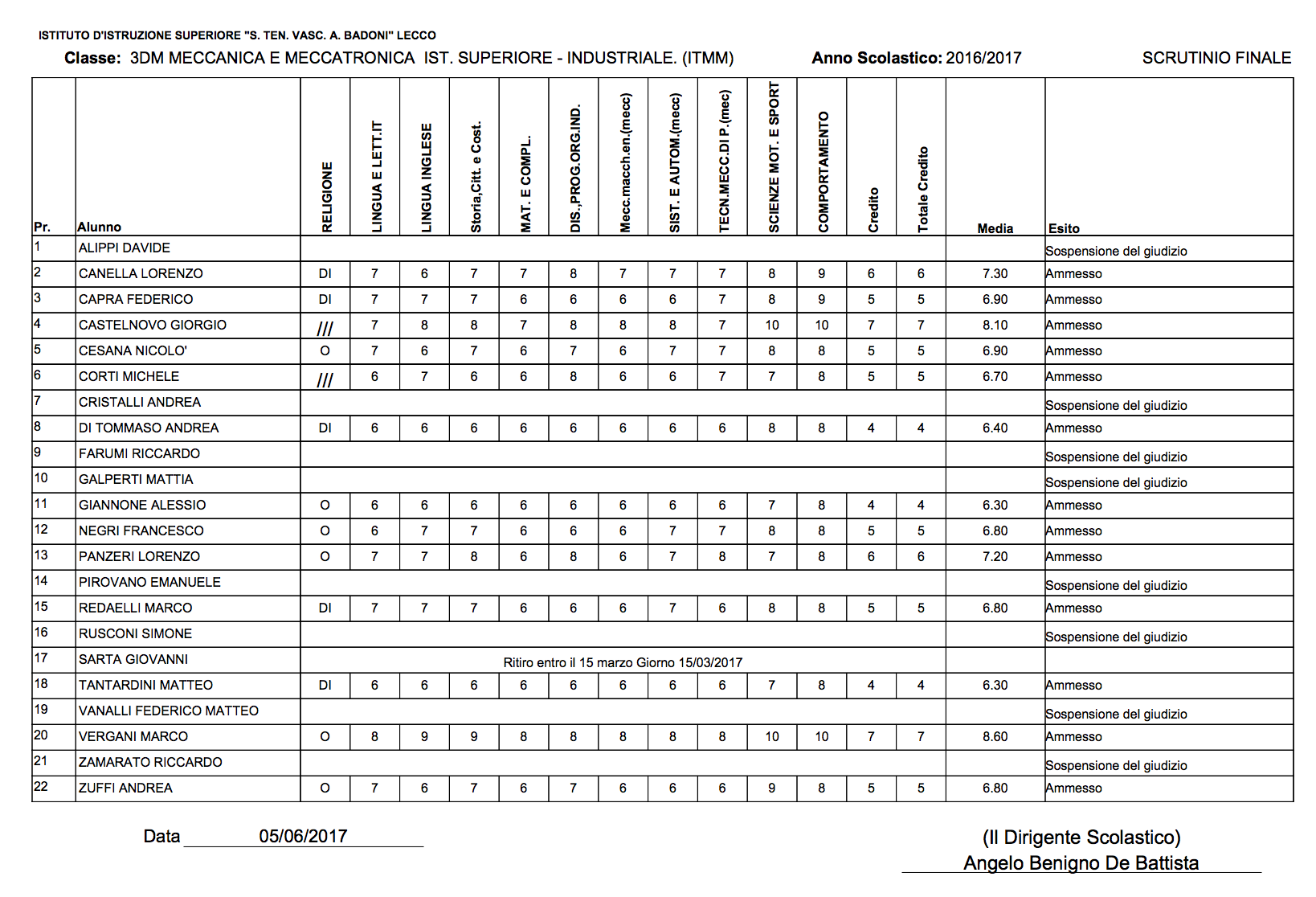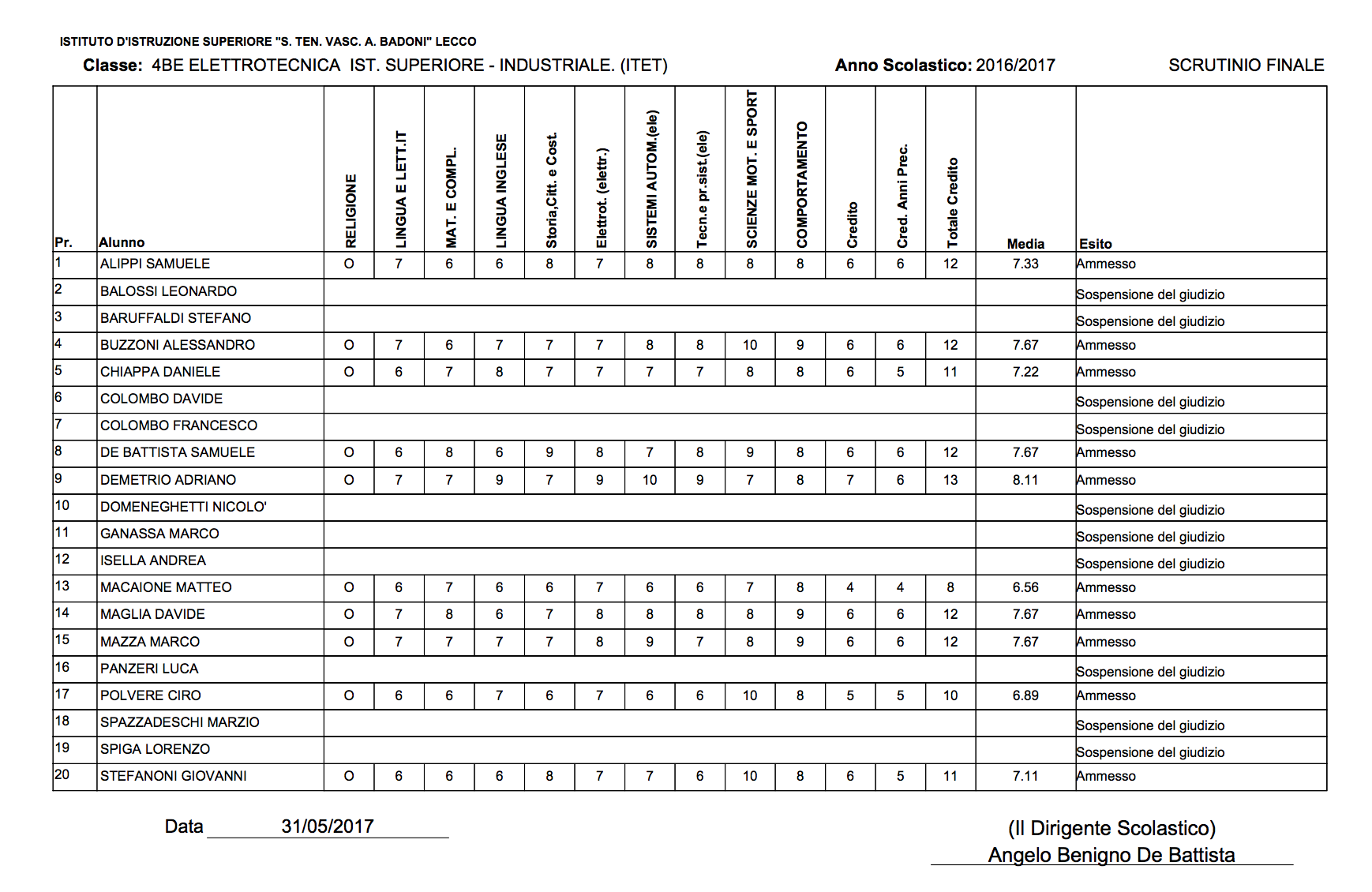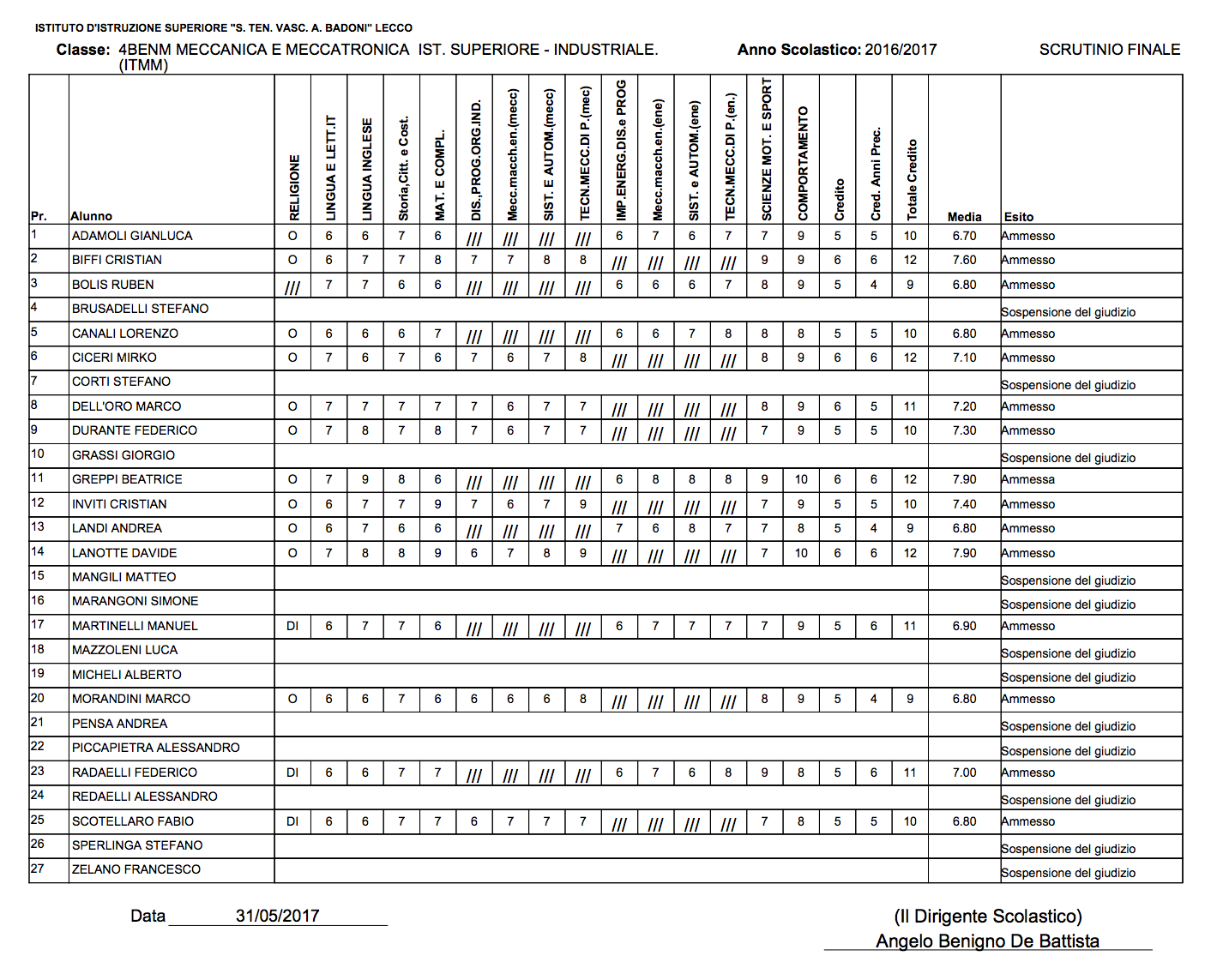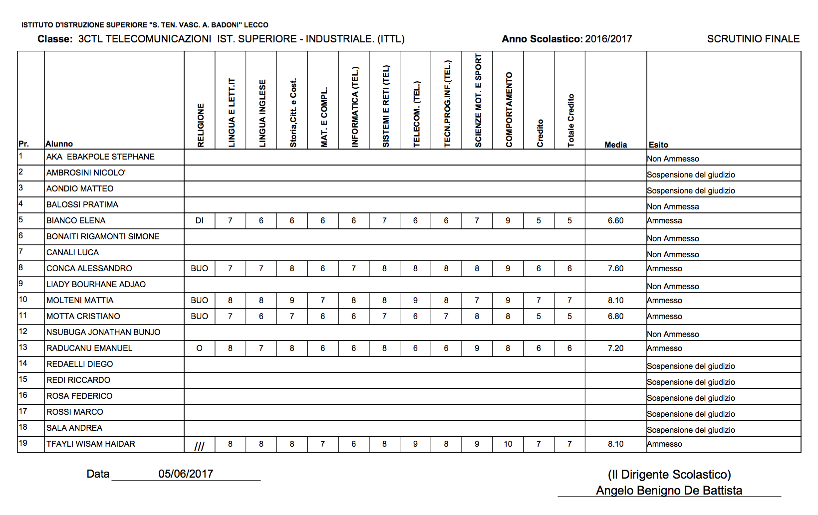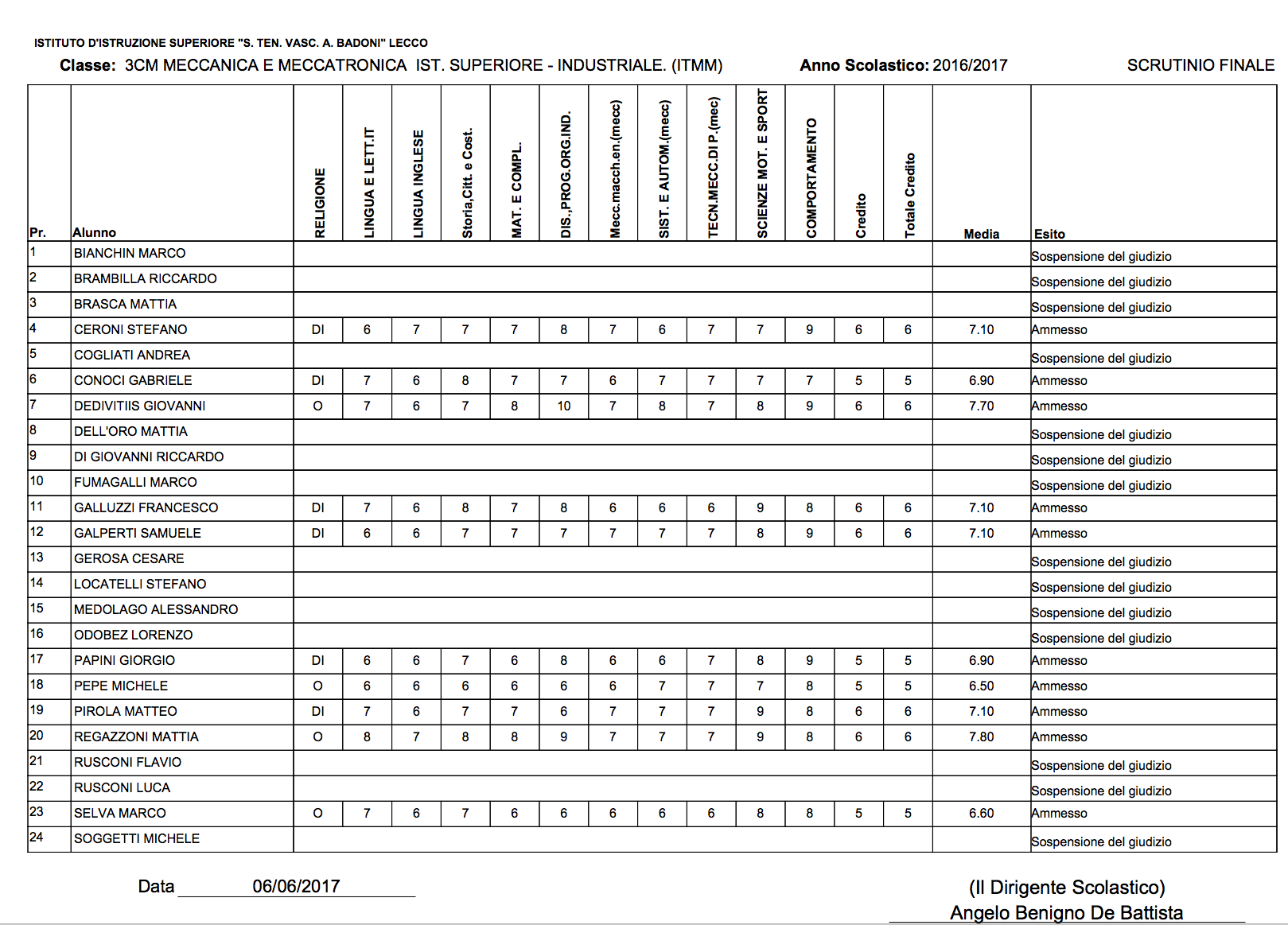 LECCO – Già pubblicati online i tabelloni con gli esiti degli scrutini dell’anno scolastico 2016/2017 per gli studenti dell’Istituto Badoni.