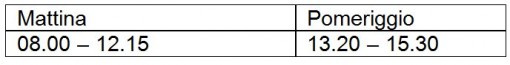 Da lunedì a venerdì dalle 8 alle 11.30 e dalle 13.30 alle 15
