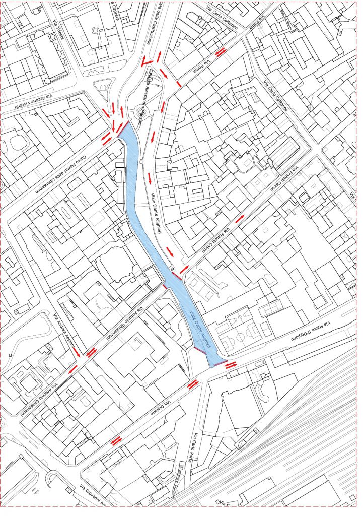 Infine nel tratto di controviale Dante – compreso tra via Roma e via Cairoli – sarà invertito il senso di marcia e vietata la sosta con rimozione forzata dei veicoli; inoltre all’incrocio con via Cairoli sarà consentita la sola svolta a sinistra.
