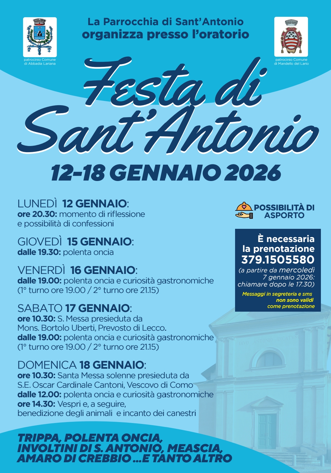 L’iniziativa, organizzata dalla Parrocchia di Sant’Antonio con il patrocinio dei Comuni di Abbadia Lariana e Mandello del Lario, si inserisce in un calendario di celebrazioni avviato il 12 gennaio e proseguito fino ad oggi, 18 gennaio, intrecciando momenti religiosi e conviviali.