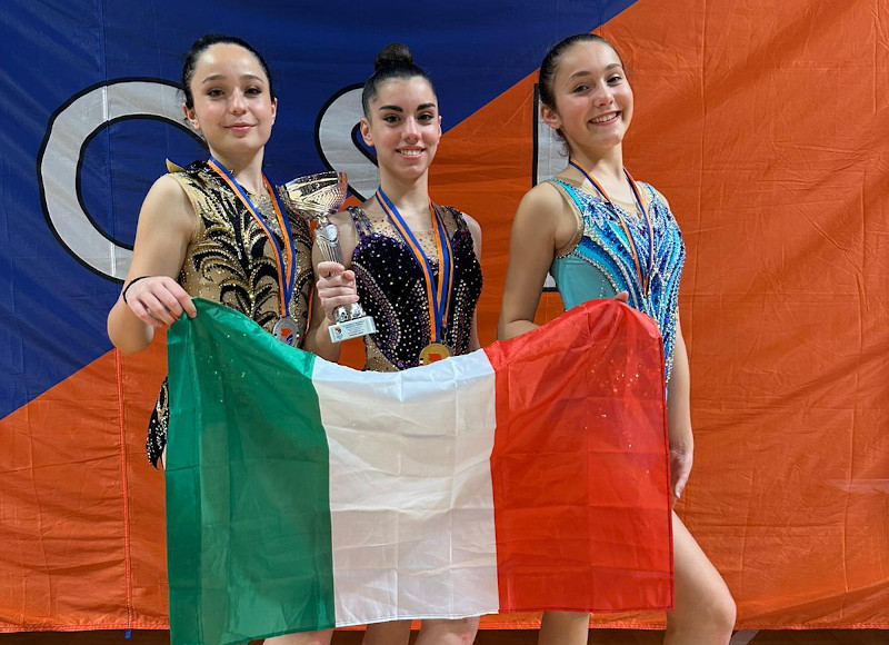 Per le individuali Ragazze Medium Camilla Ripamonti fa tripletta d’oro, fa suonare l’inno di Mameli per tre volte, nella classifica assoluta, specialità nastro e specialità cerchio.