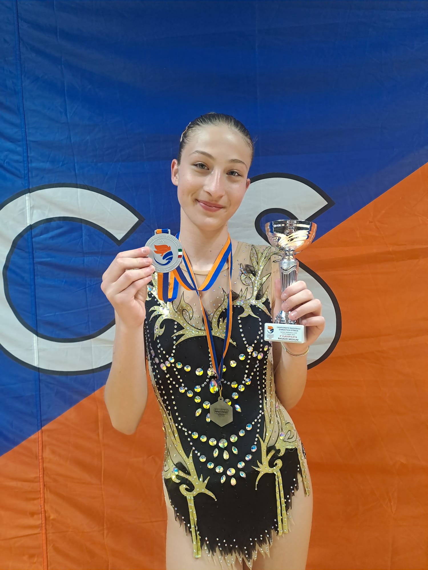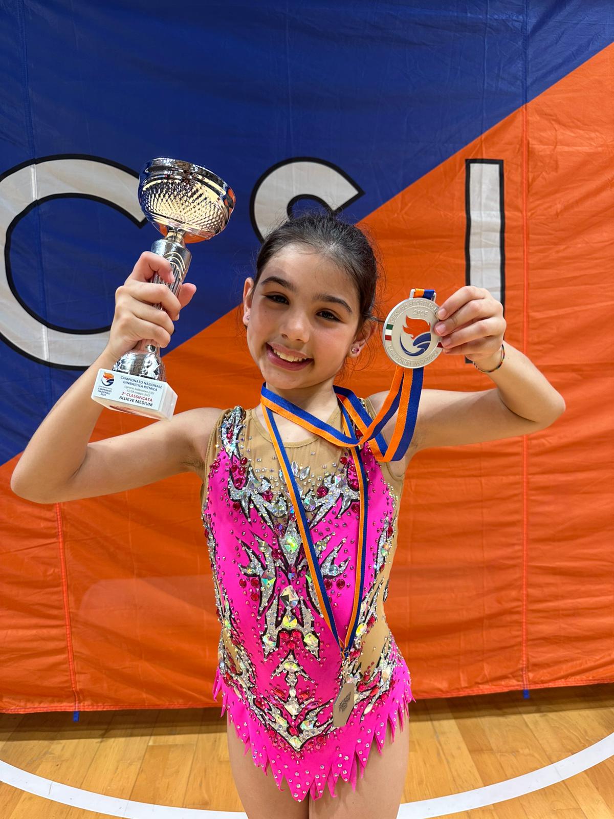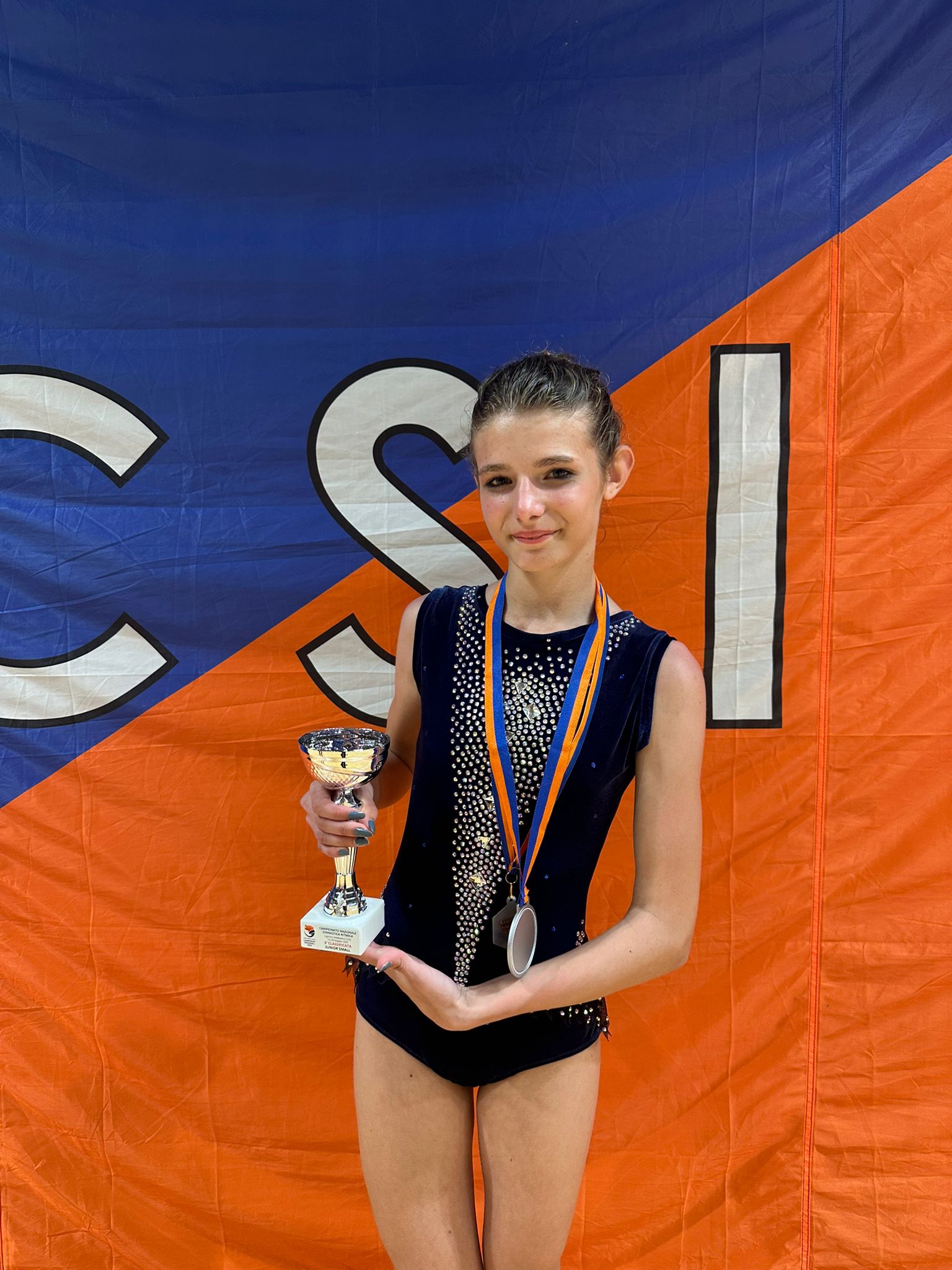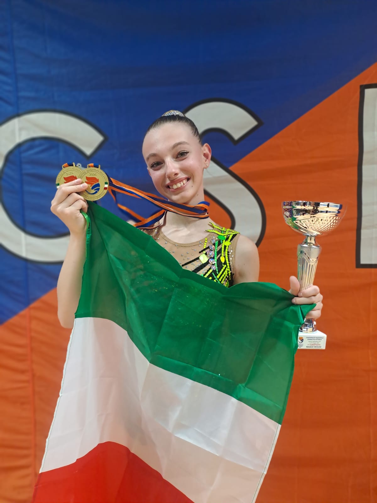 Giulia Banfi è vicecampionessa italiana nella specialità cerchio, bronzo assoluto e sfiora il terzo gradino del podio nella specialità nastro conquistando il quinto posto Italiano a pochissimi centesimi.