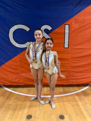 Per i livelli più alti Large e Advanced le prime a scendere in pedana con l’esercizio di coppia alle clavette, sono Rebecca Amendola e Sofia Perego che ottengono un punteggio altissimo che le fa volare sul gradino più alto del podio incoronandole campionesse nazionali.