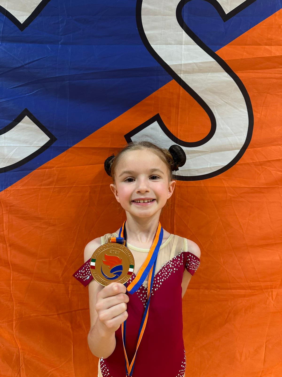 Per la categoria Tigrotte base, Zoe Manetti conquista l’ottavo posto assoluto e nella specialità corpo libero, nella specialità palla ottiene l’undicesimo piazzamento italiano.