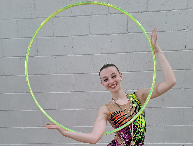 Camilla Ripamonti nella specialità cerchio conquista l’oro, specialità clavette ottiene il quinto posto a un soffio dal podio e chiude la gara in settimana posizione assoluta.
