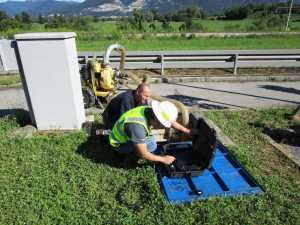 Entrambi i punti di estrazione, poi, sono stati realizzati ad hoc da Lario Reti Holding, con la costruzione di una cameretta per accesso alla tubazione e presa in carico per l’installazione di una saracinesca DN 150 perpendicolare alla tubazione. La sfera è stata recuperata tramite una pila di estrazione dotata di rete che viene installata dalla valvola a saracinesca. Per poter localizzare la sfera durante l’ispezione sono stati posizionati degli appositi ricevitori (SBR) lungo la tubazione su punti accessibili già esistenti o appositamente creati, indicativamente ogni 1000 metri.