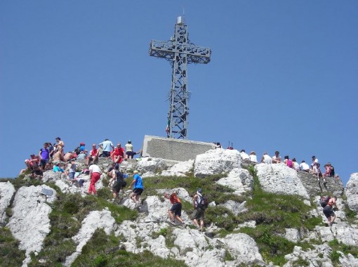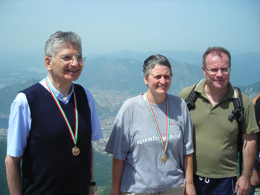 In vetta, al rifugio Azzoni, è arrivato anche il sindaco di Lecco Virginio Brivio e monsignor Franco Cecchin che al momento di riceve la tradizionale medaglia consegnata a tutti coloro che giungono in vetta (accompagnata da una fetta di torta Resegone) simpaticamente con le dita a “V” ha urlato: “Vittoria, viva l’Italia”. Quindi come da programma ha celebrato la messa ai piedi della croce posta a quota 1875m.