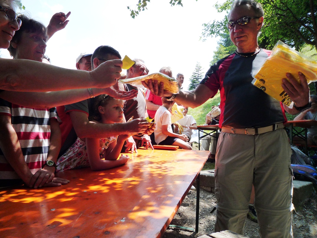 In seguito, trasferimento alla località La Fonte per il grande rancio alpino con polenta ed infine la distribuzione del gadget, la tradizionale maglietta con disegnata la via aperta da Pino Negri al Cerro Torre ed i loghi degli organizzatori: Soccorso Alpino, Cai Lecco Strada Storta e Ragni Lecco che in collaborazione con Comune di Lecco e LTM Lecchese Turismo Manifestazioni da anni organizzano questo bel momento di incontro, non riservato ad alpinisti ma aperto a tutte le famiglie, perché andare in montagna deve essere festa per tutti: ed oggi una festa è stata.