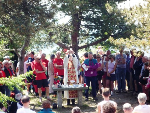La Santa Messa è stata officiata da un entusiasta Don Luciano Spreafico, sacerdote residente ad Acquate, che con la sua grinta ed il suo stile aperto ed amichevole ha catturato tutti i presenti, esortando al vero amore e ringraziando per la grande accoglienza offerta, rivelando poi che, proprio in questo mese, ha tagliato il traguardo dei 55 anni di sacerdozio e che la partecipazione a questa festa lo ha veramente commosso. A fine messa il canto “Signore delle Cime” dedicato a Pino Negri e, visti i recenti fatti di cronaca, anche a Carlo Pisati, Egidio Molteni (caduto in Grignetta proprio ieri) e Bolis Edoardo.