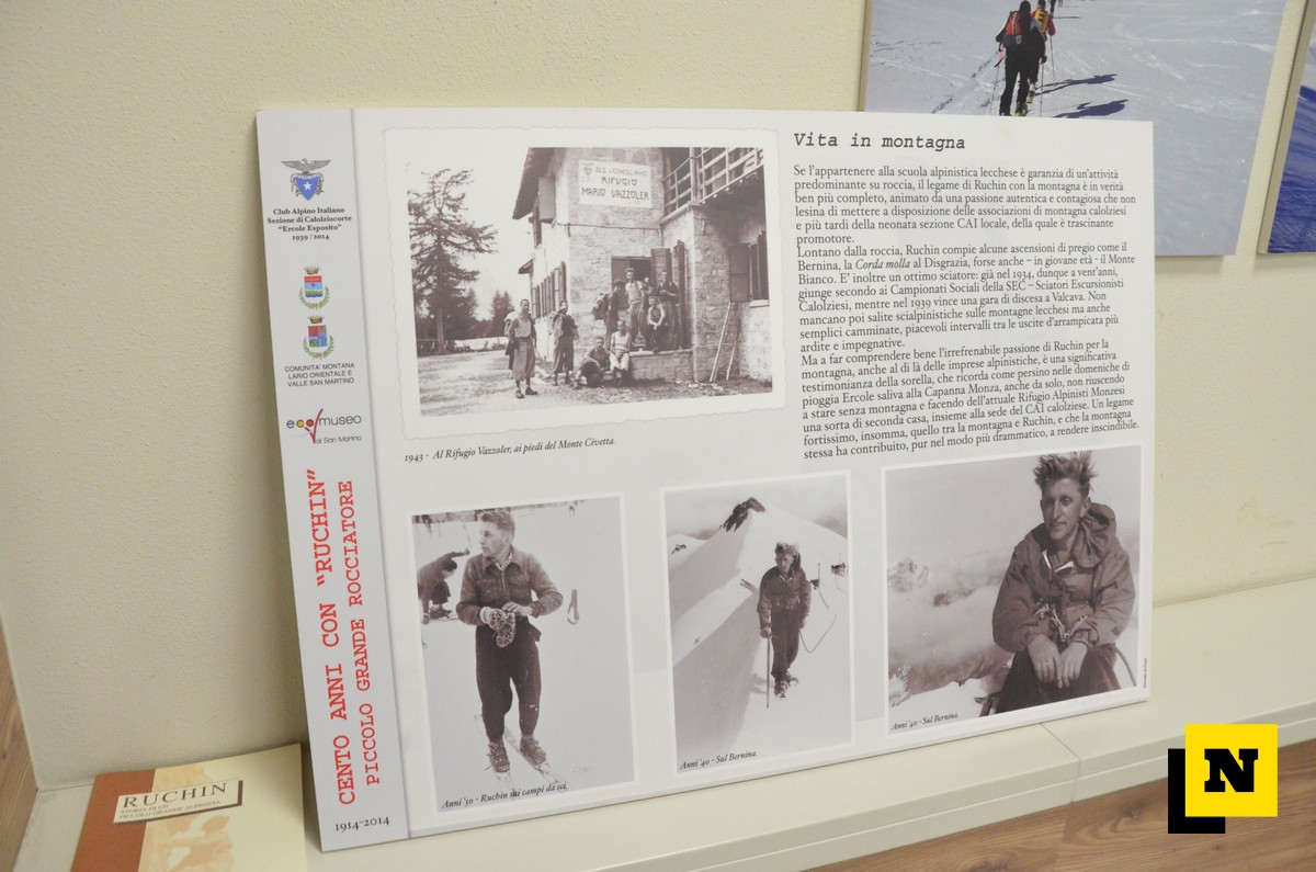 La serata ha riservato molte emozioni, dopo un excursus sull’evoluzione dei materiali, Giuseppe Rocchi ha ricordato, attraverso le foto storiche, la nascita del Cai Calolziocorte nel 1945 con una dedica speciale al fortissimo alpinista Ercole Esposito, detto “Ruchin”, a cui la sezione è intitolata e che trovò la morte in Dolomiti (Sasso Lungo) proprio nell’anno della nascita del club, il 23 settembre.