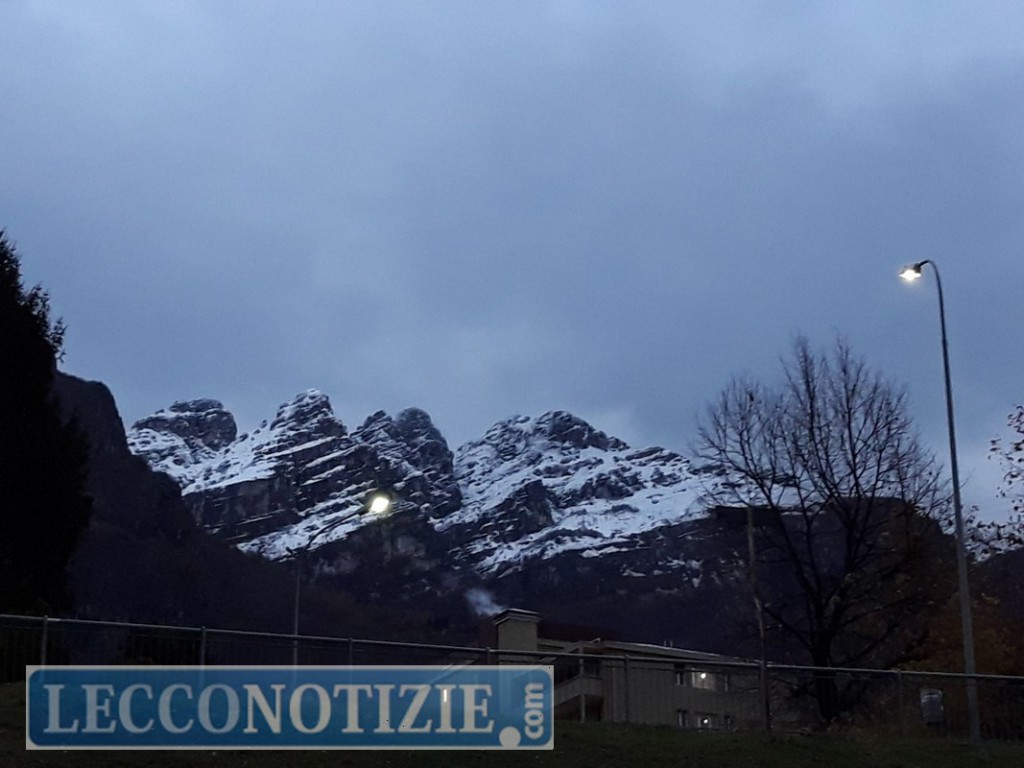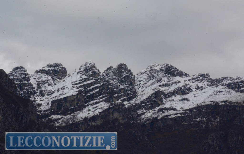 LECCO – L’avevano prevista, e puntuale ha fatto la sua comparsa: questa mattina, lunedì, Lecco si è svegliata circondata da montagne bianche. La pioggia caduta copiosa domenica in alta quota si è trasformata in neve, imbiancando le cime di Grignetta, Grignone, Resegone, Due Mani e altre cime.