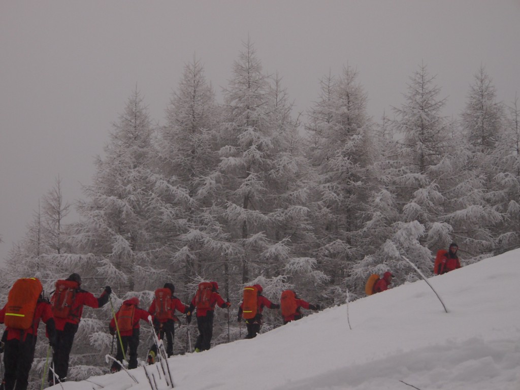 Sotto la guida di Tita Gianola sono state verificate le procedure di ricerca ARVA, sondaggi e movimentazione delle squadre con gli sci per poi passare ad una simulazione di ricerca in valanga con sepolti multipli.